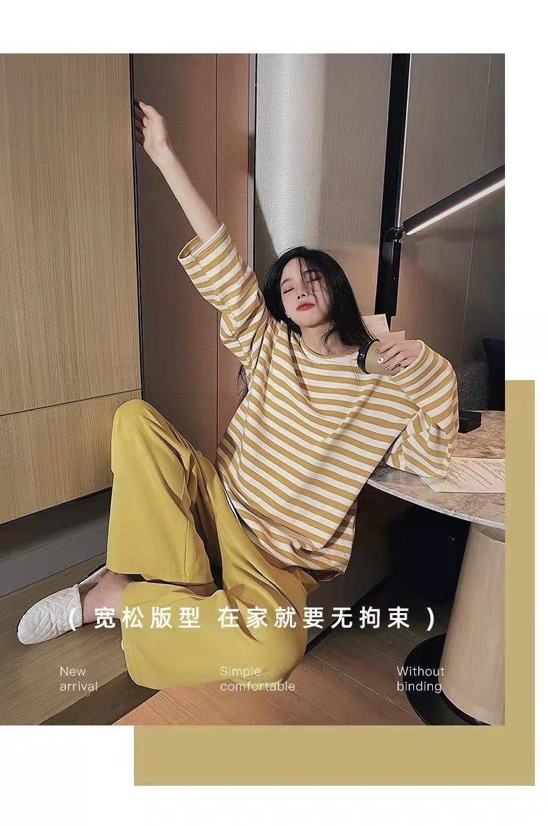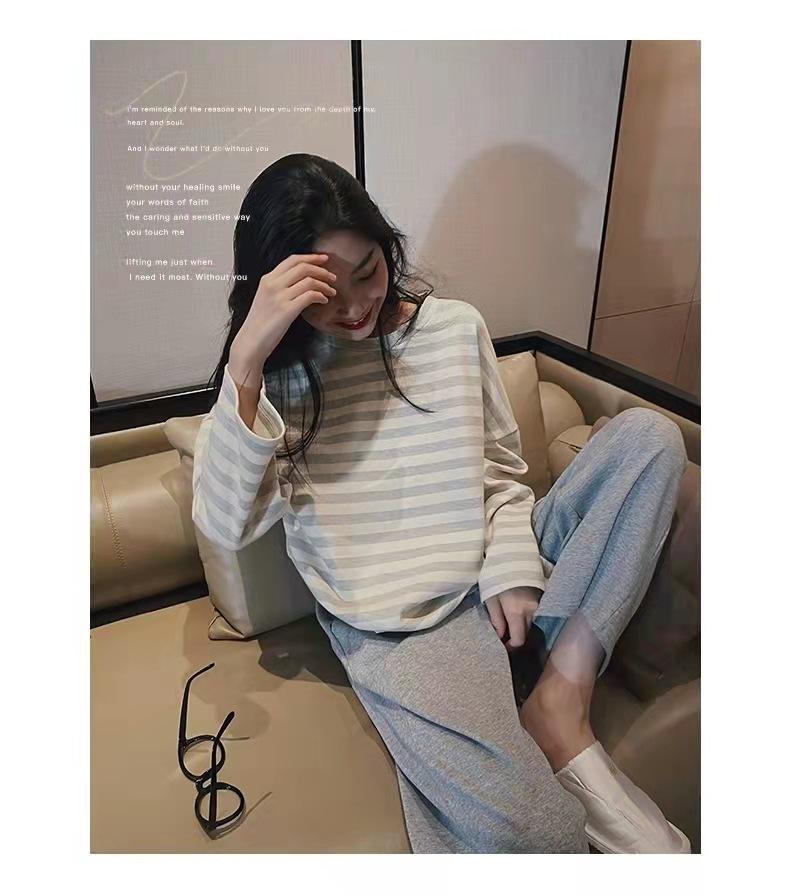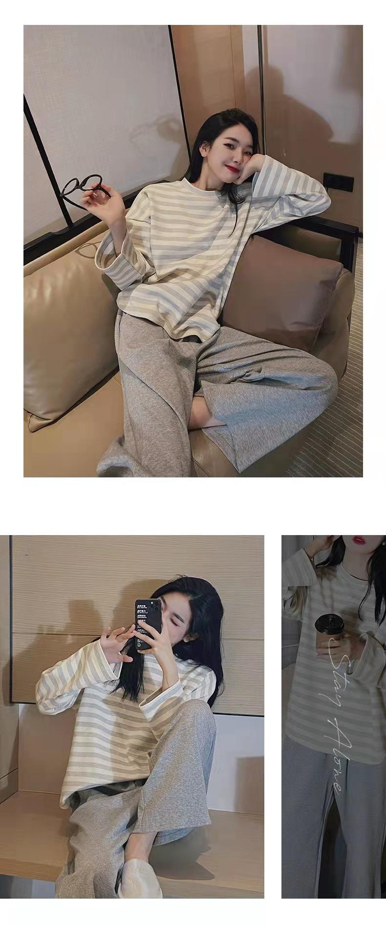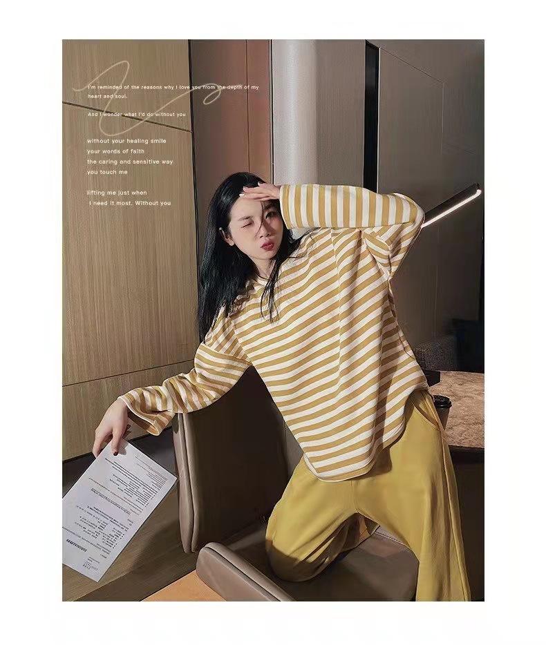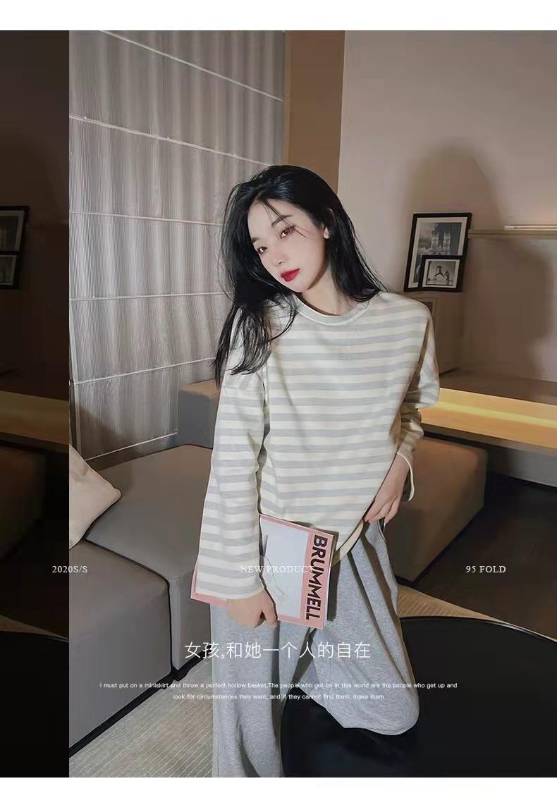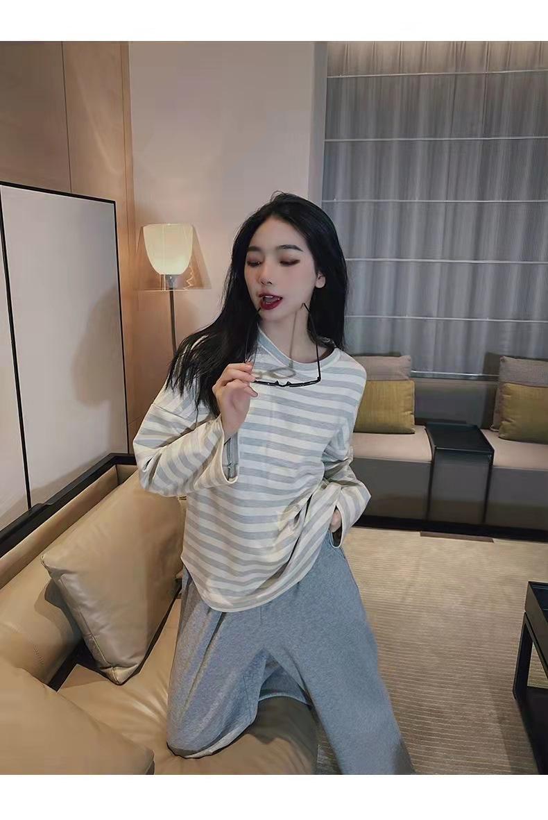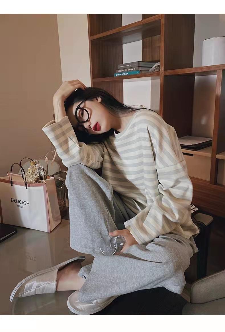 Pijama informal de manga larga con cuello redondo para mujer, estilo coreano, a rayas, holgado, primavera y otoño de 2022, ropa para el hogar, pijamas transfronterizos