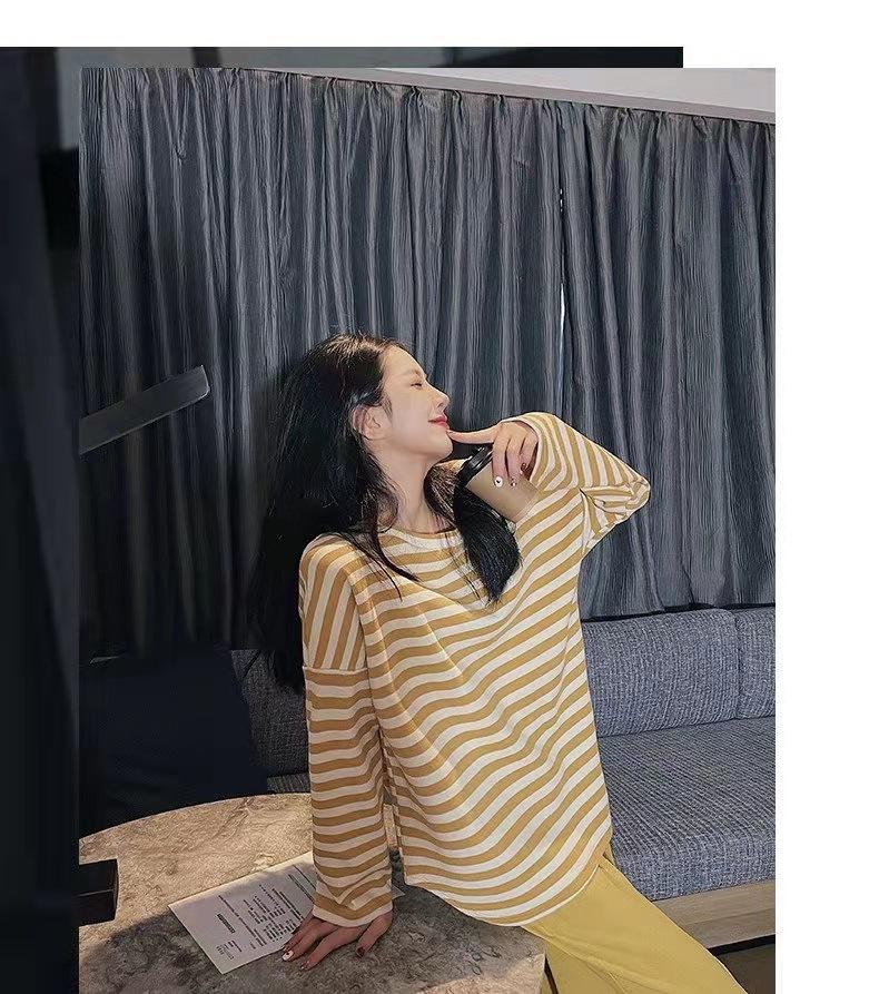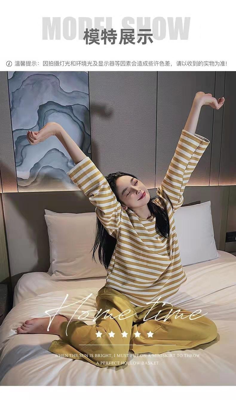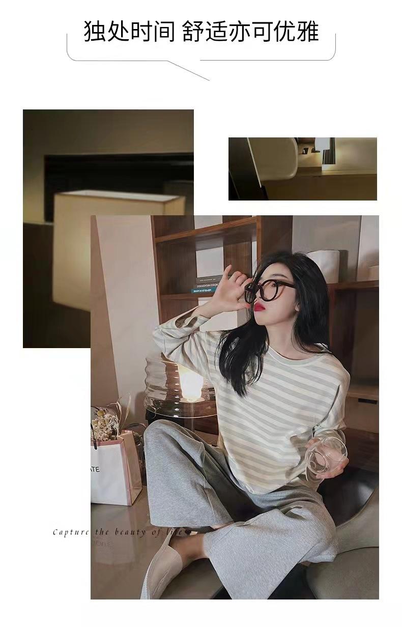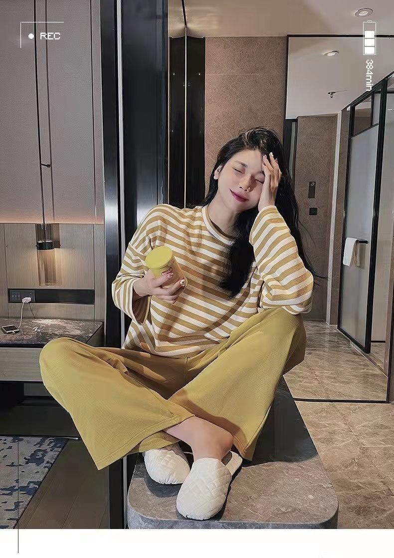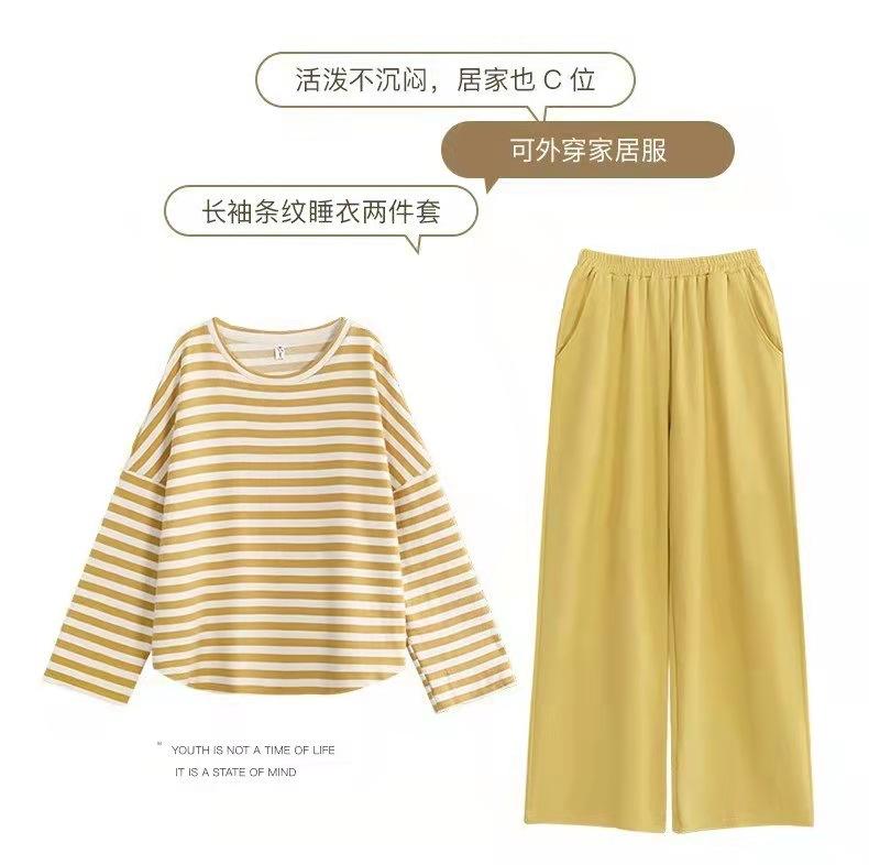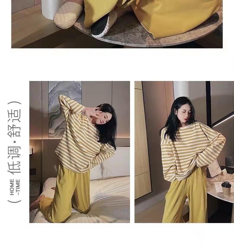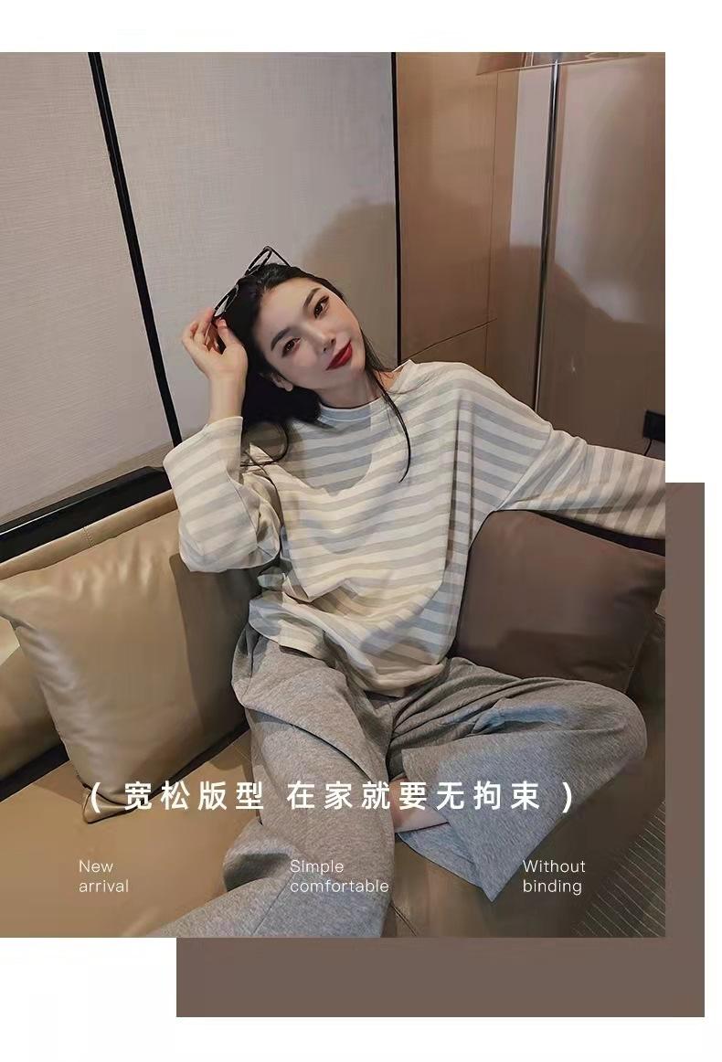 Pijama informal de manga larga con cuello redondo para mujer, estilo coreano, a rayas, holgado, primavera y otoño de 2022, ropa para el hogar, pijamas transfronterizos