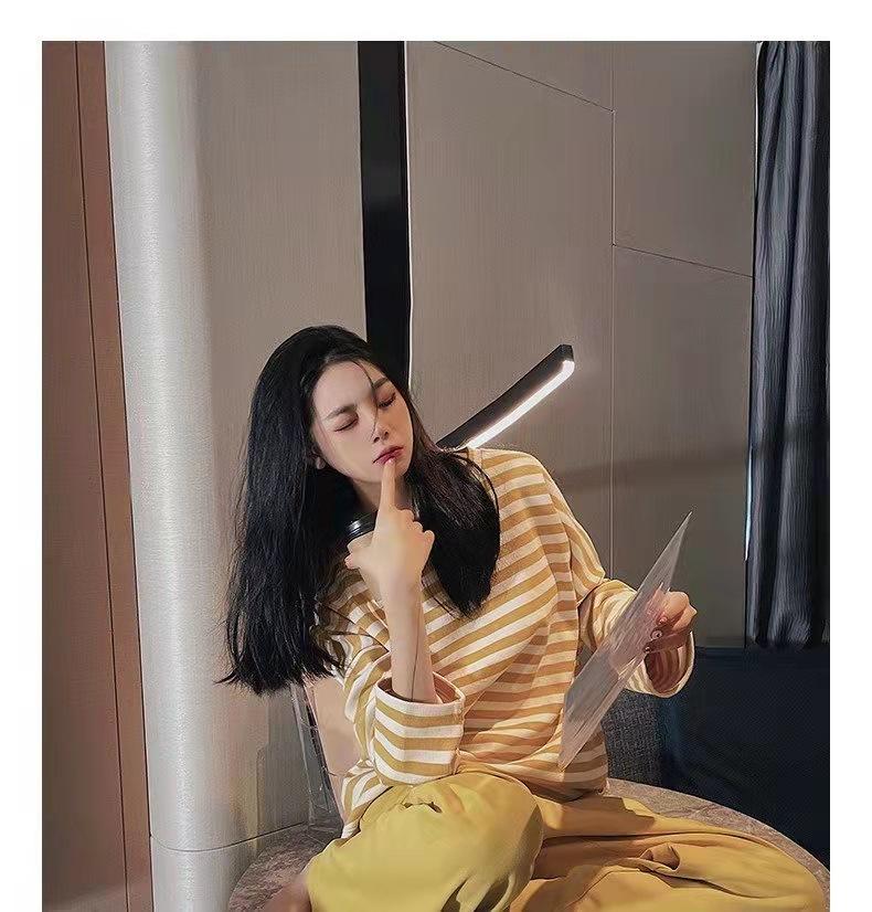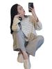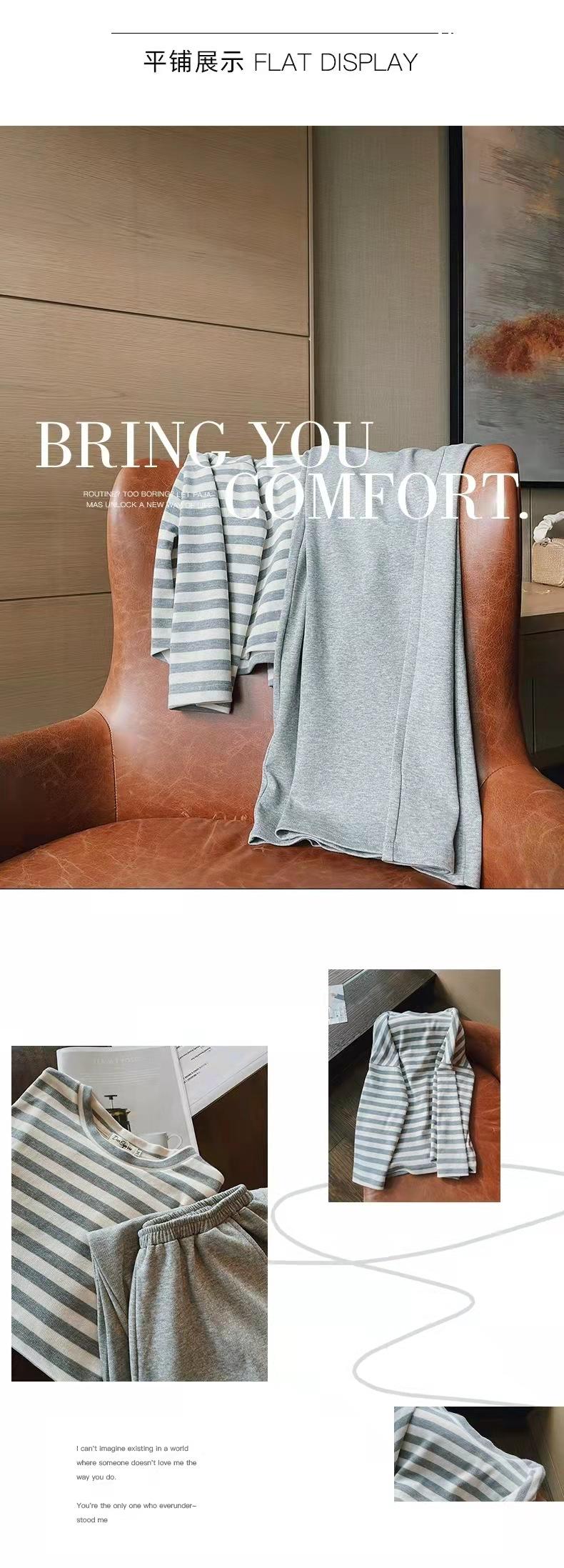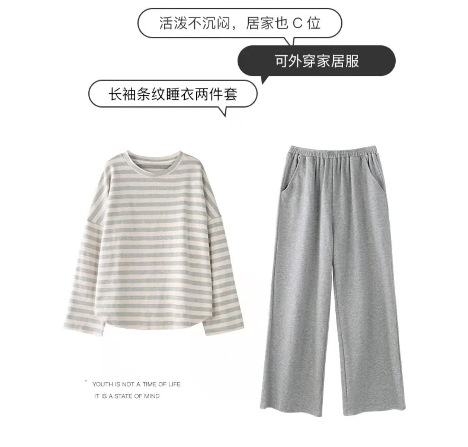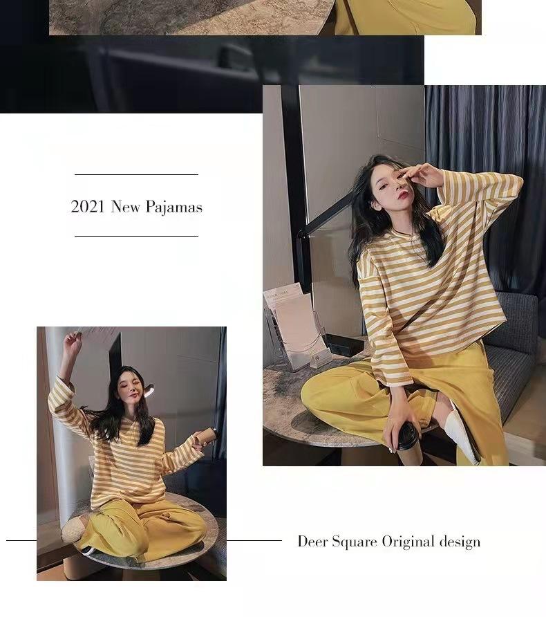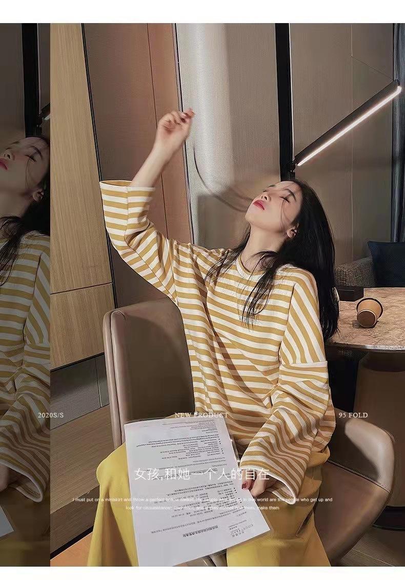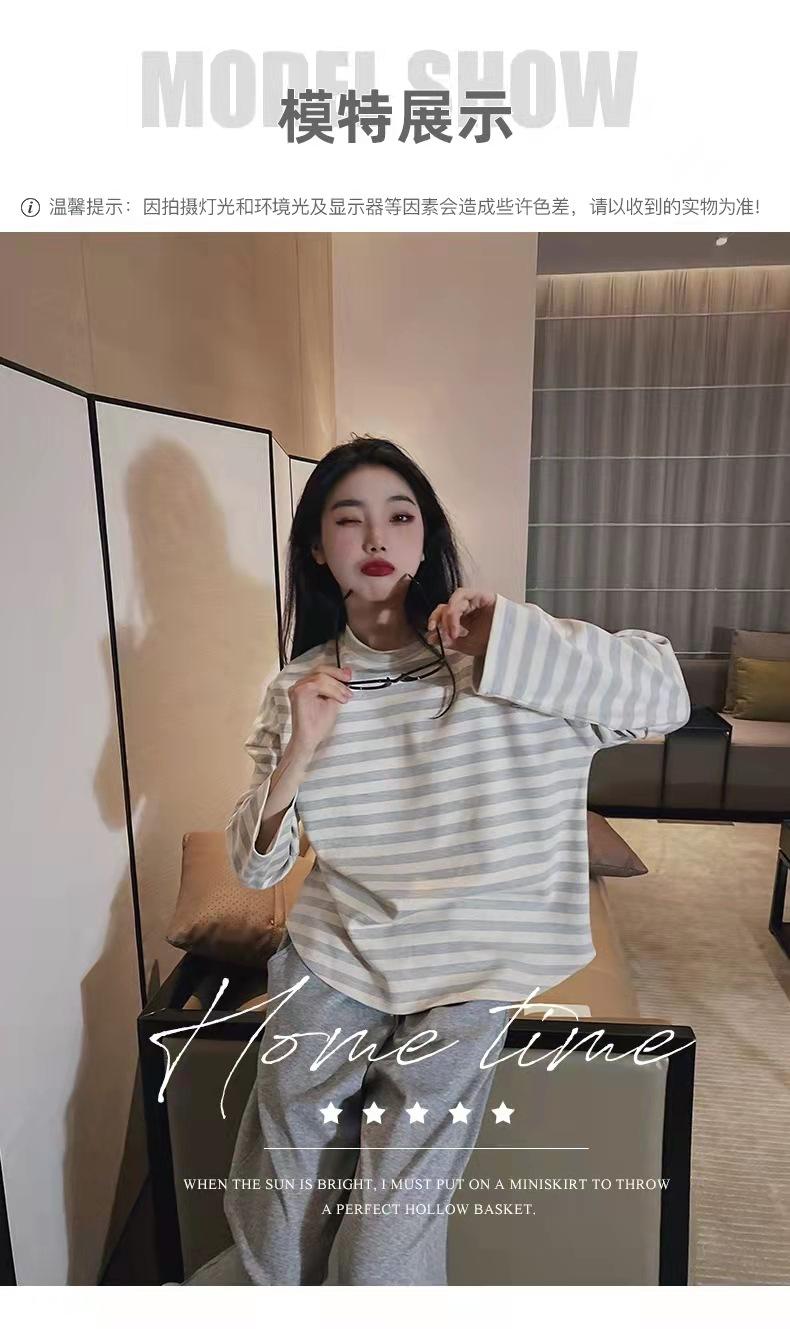 Pijama informal de manga larga con cuello redondo para mujer, estilo coreano, a rayas, holgado, primavera y otoño de 2022, ropa para el hogar, pijamas transfronterizos