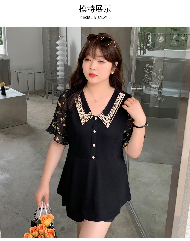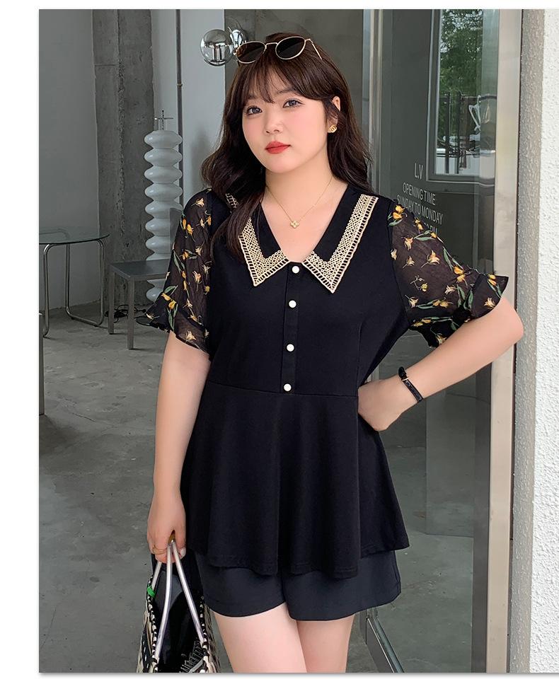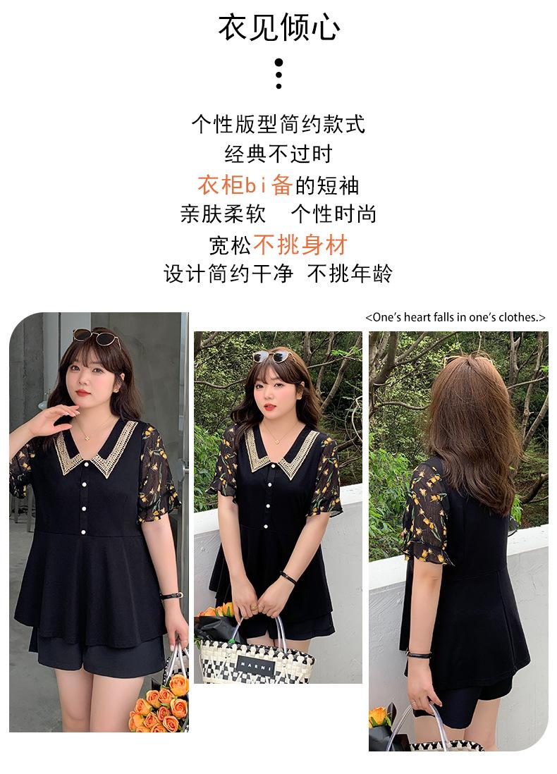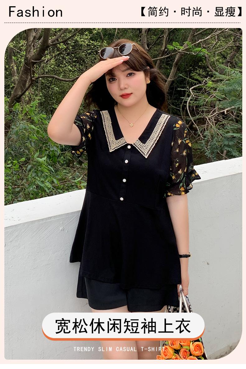 Talla Grande para Mujer Gordita mm Manga Hoja de Loto Elegante Camisa Pequeña 2025 Verano Nuevo Cuello V Cubriendo la Carne y Aspecto Adelgazante Top de Manga Corta para Mujer
