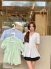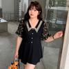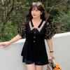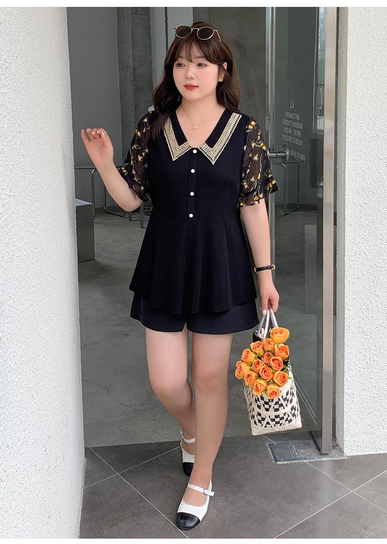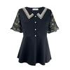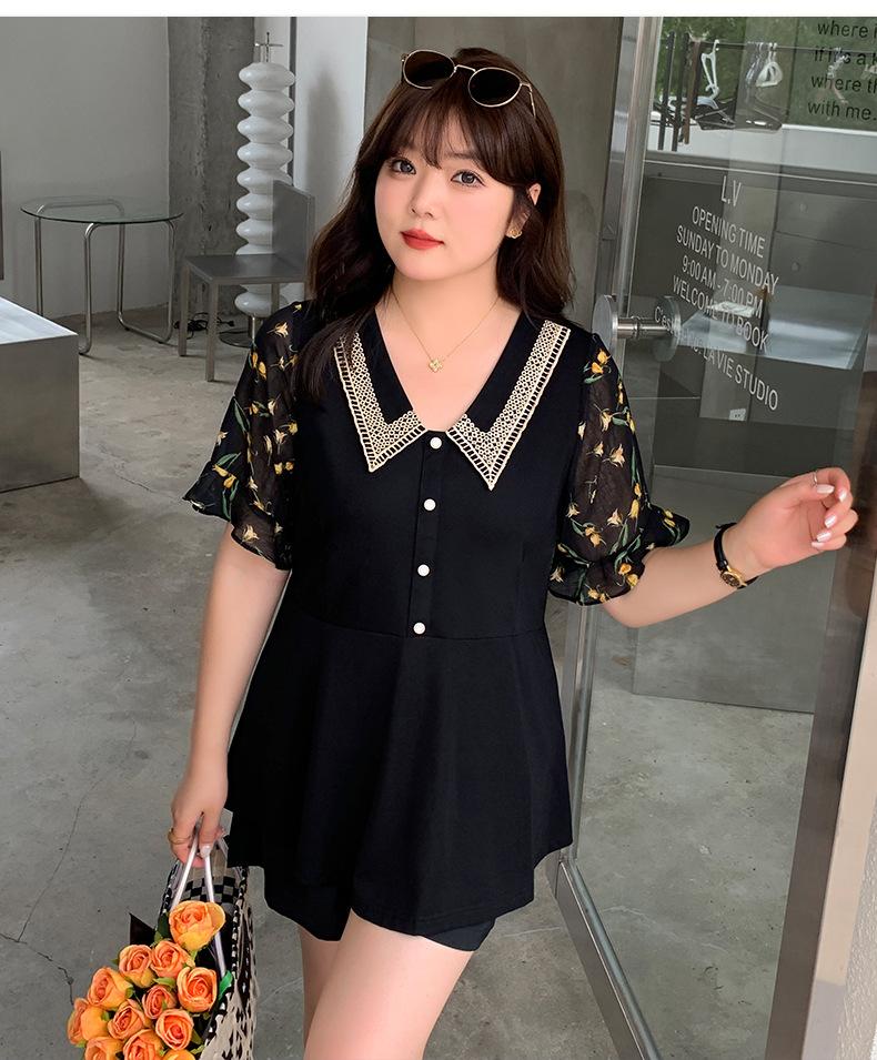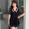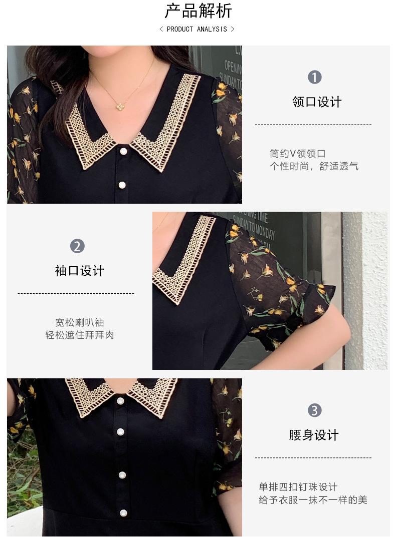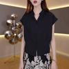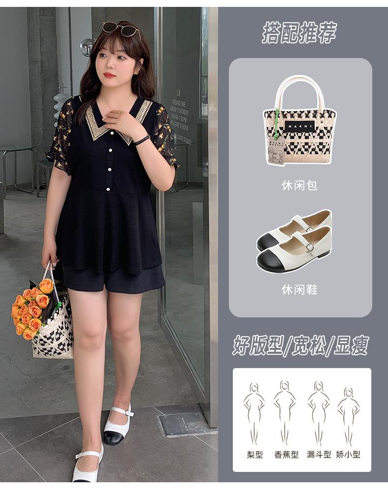 Talla Grande para Mujer Gordita mm Manga Hoja de Loto Elegante Camisa Pequeña 2025 Verano Nuevo Cuello V Cubriendo la Carne y Aspecto Adelgazante Top de Manga Corta para Mujer