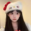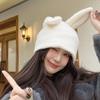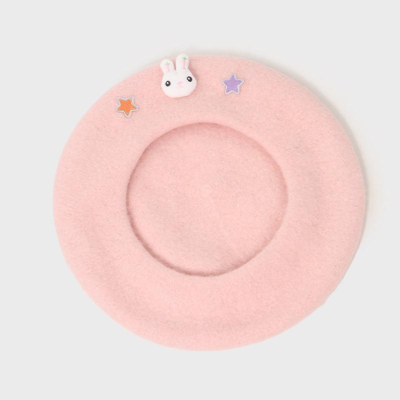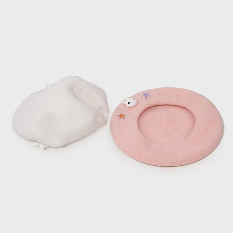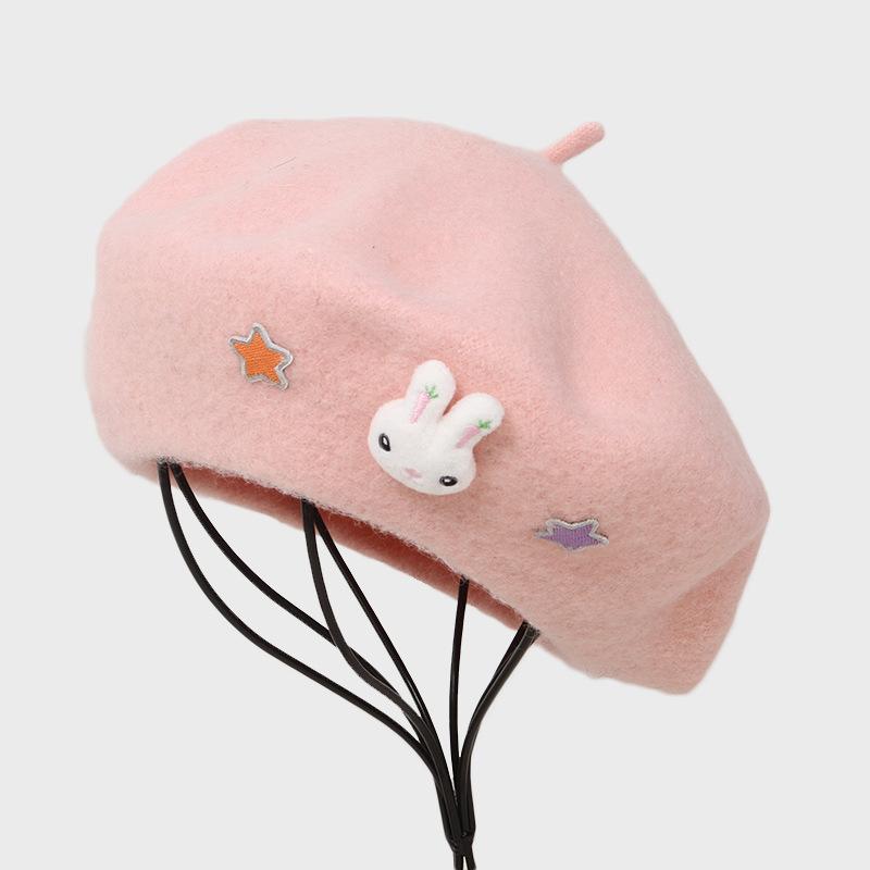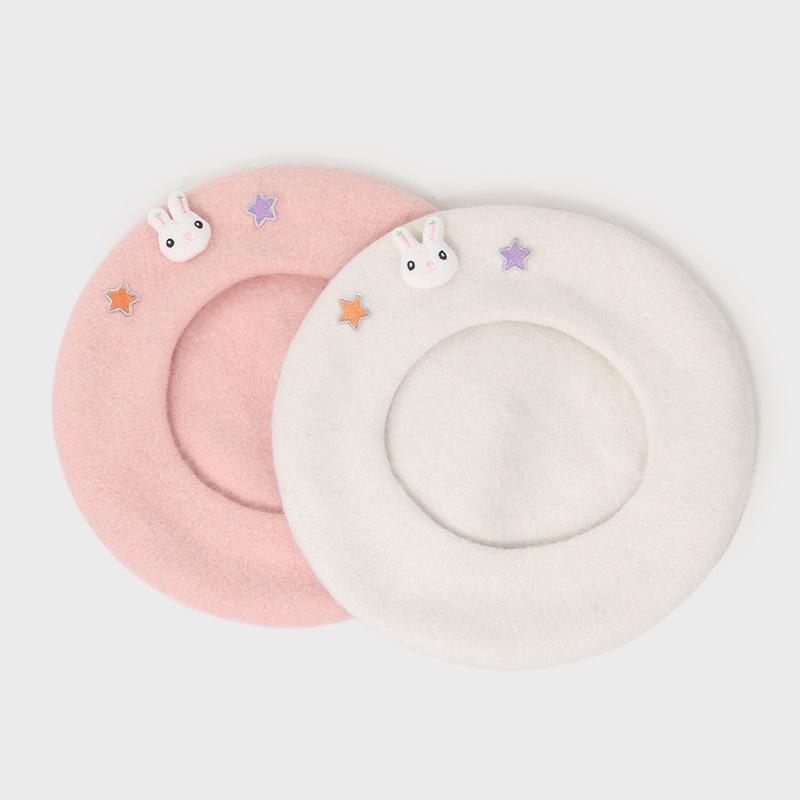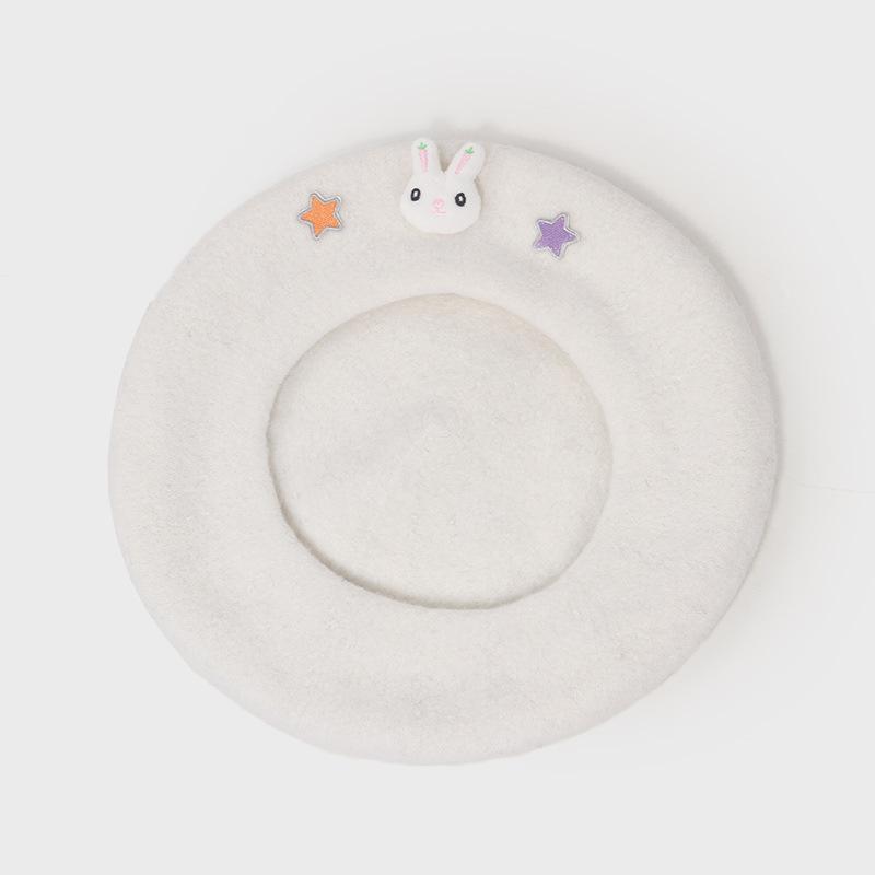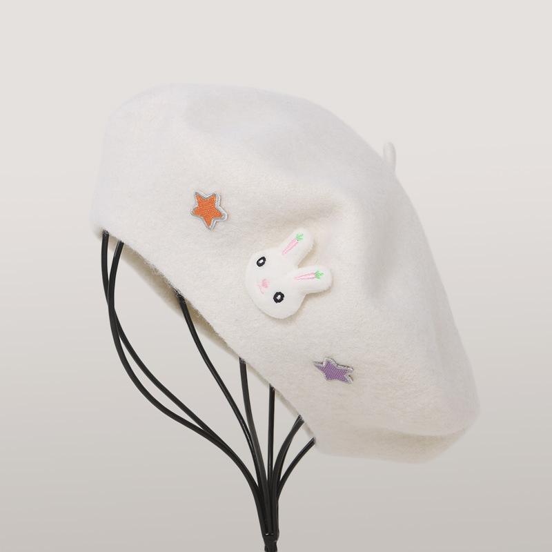 Bonita boina de conejo blanco con estrellas de color para mujer, otoño e invierno, suave y plana, de lana francesa.