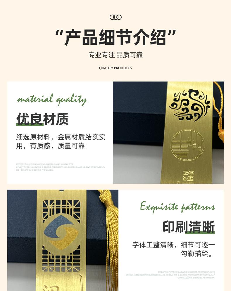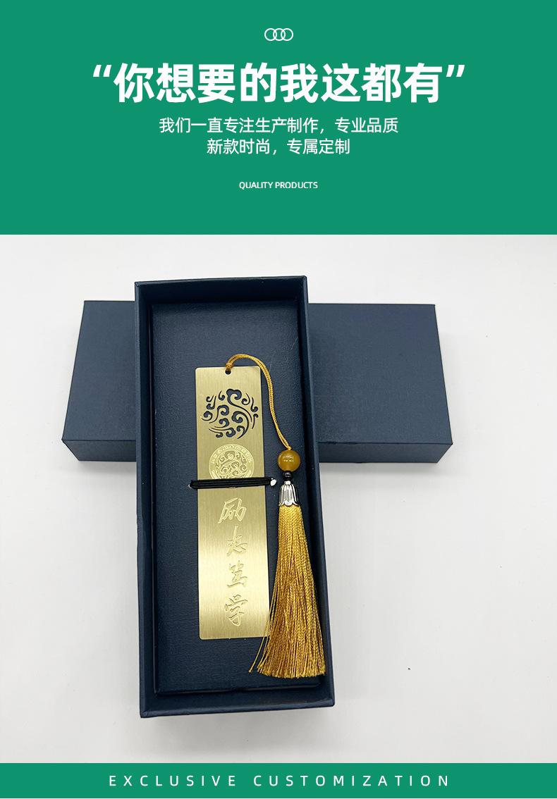 Marcapáginas de Metal Latón Estilo Chino Clásico Creativo Regalo Cultura Corporativa Escolar Personalizado Logotipo Láser Marcapáginas