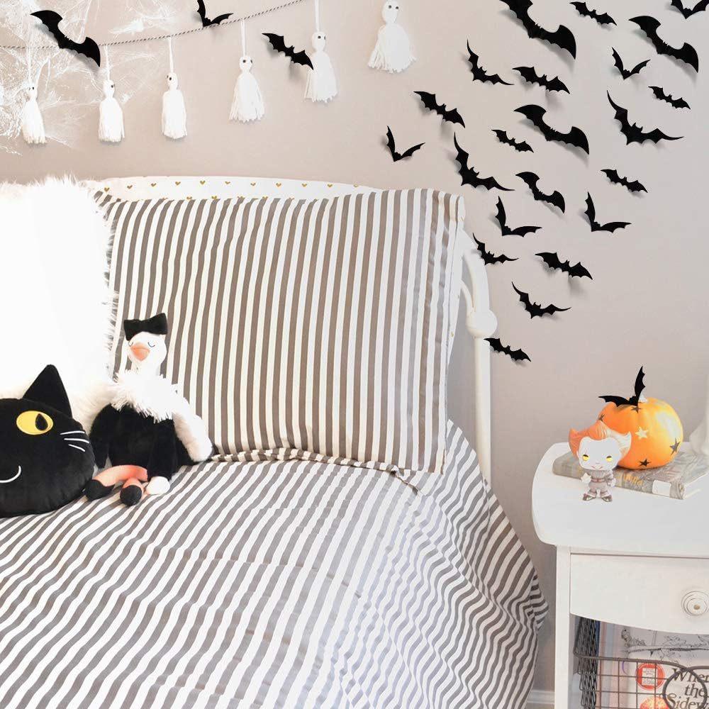 Murciélago, decoración de Halloween, araña 3D, 140 piezas, pegatinas de pared de murciélago, pegatinas de terror, decoración de fiesta de Halloween DIY