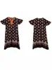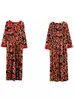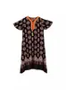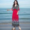 Vestido étnico de estilo francés tailandés con cuello en V y manga corta para mujer, falda estilo pastoral estampada de verano para vacaciones.