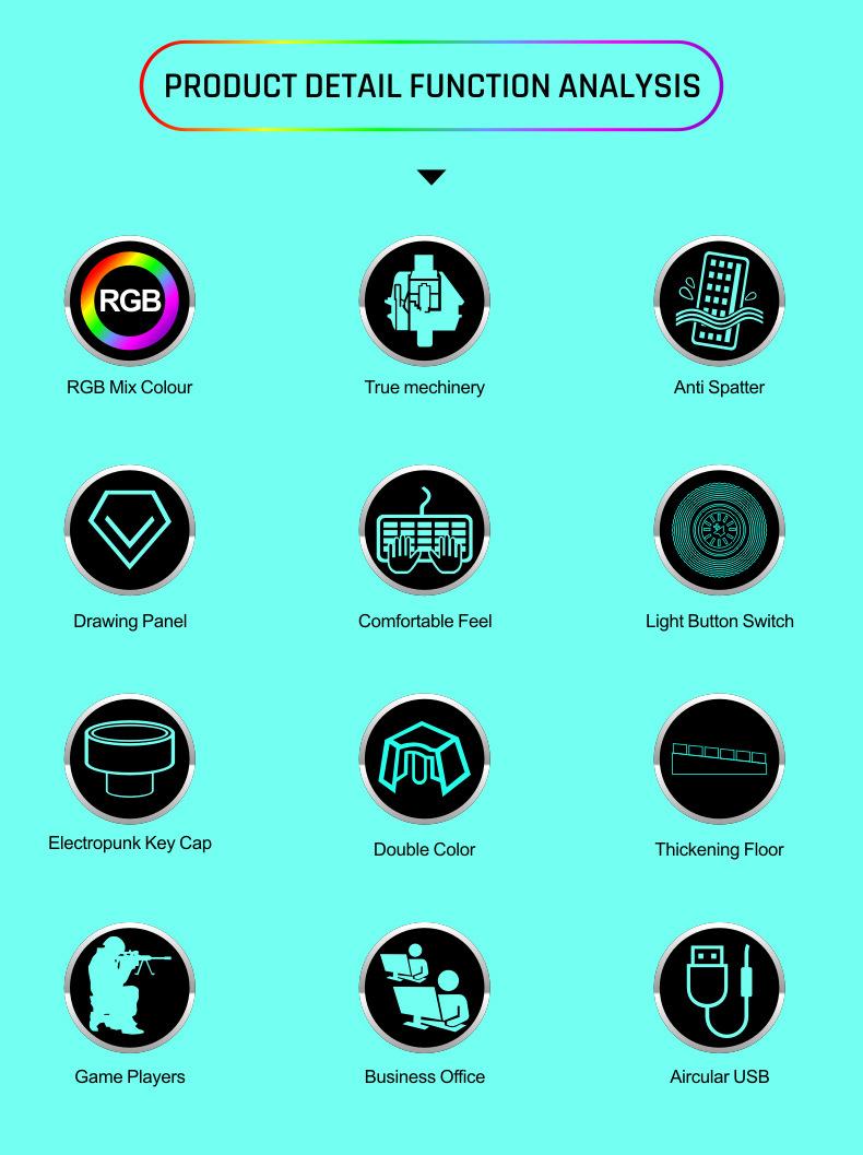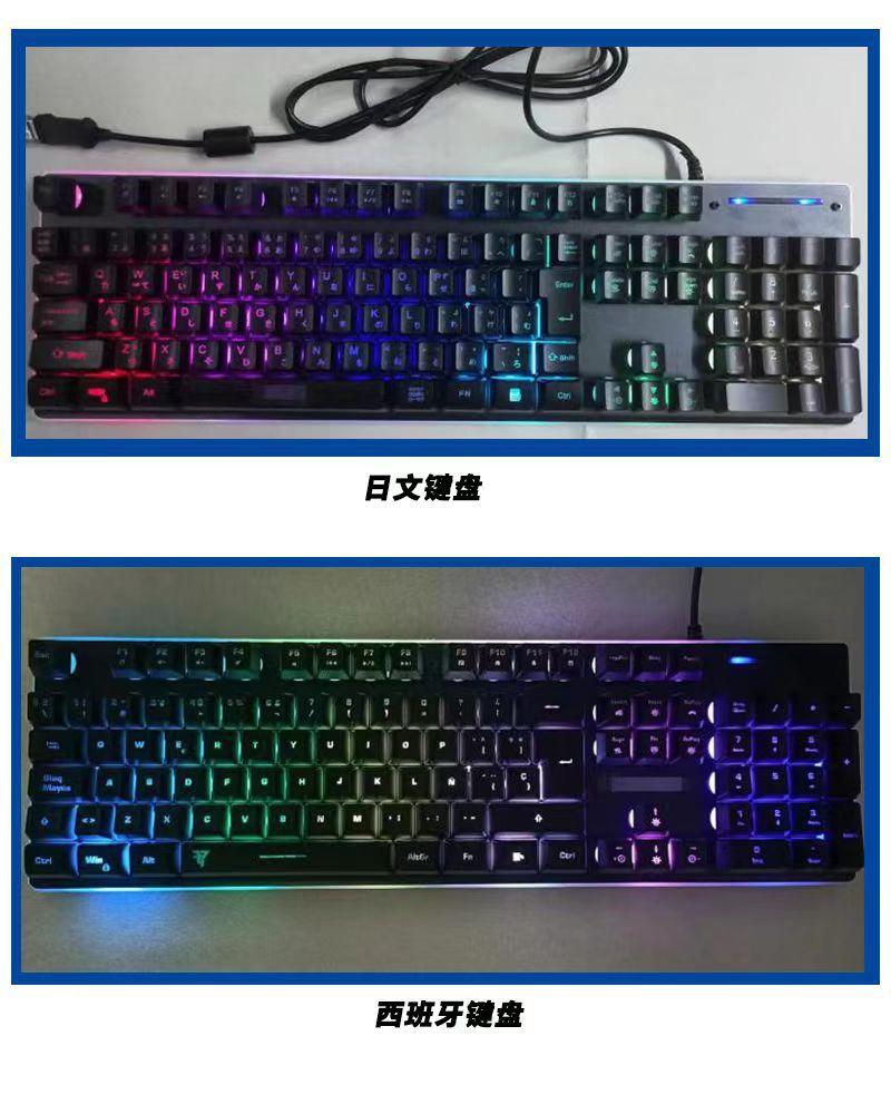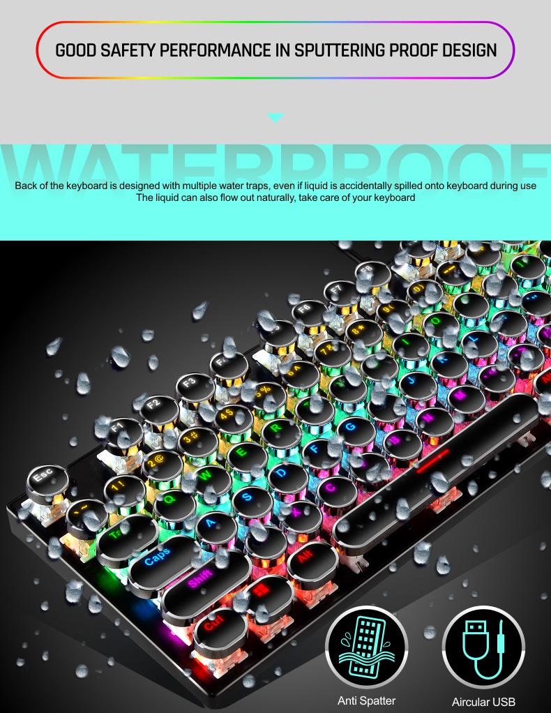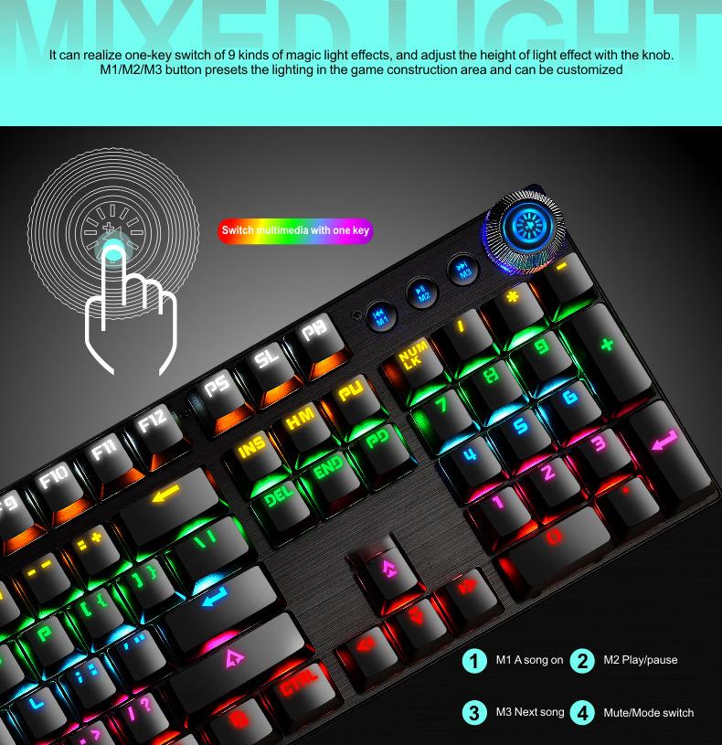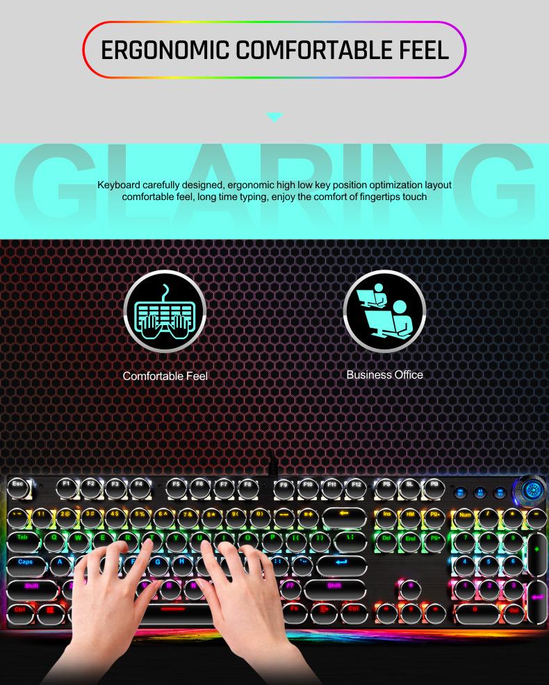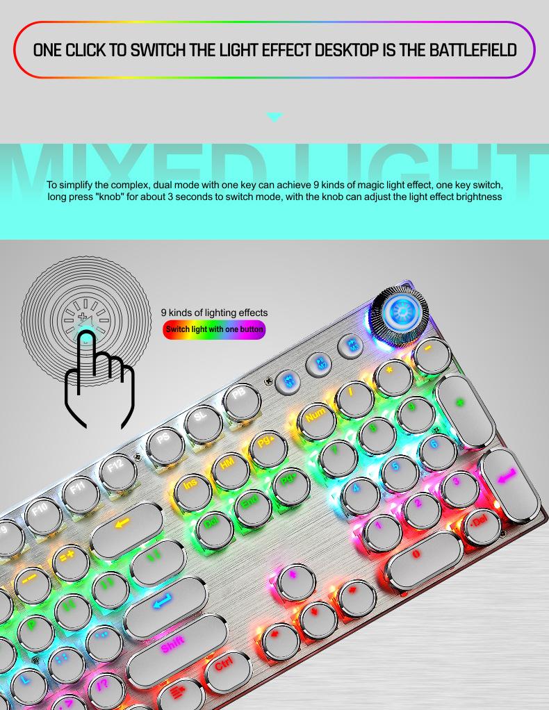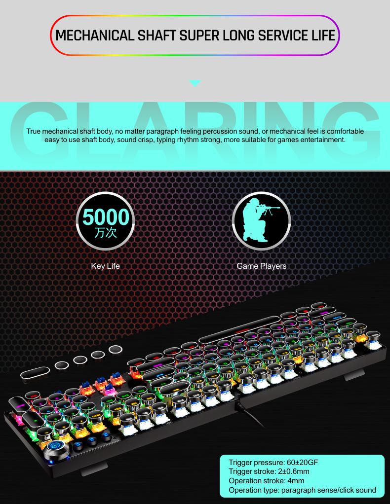 Teclado mecánico de 104 teclas con eje verde, personalizado al por mayor, para juegos de deportes electrónicos de oficina, con cable USB.