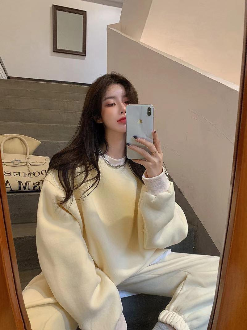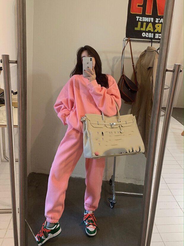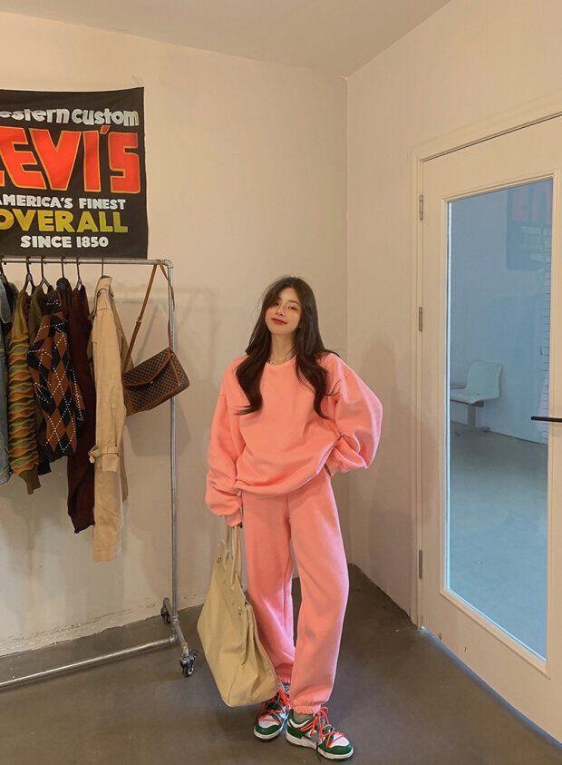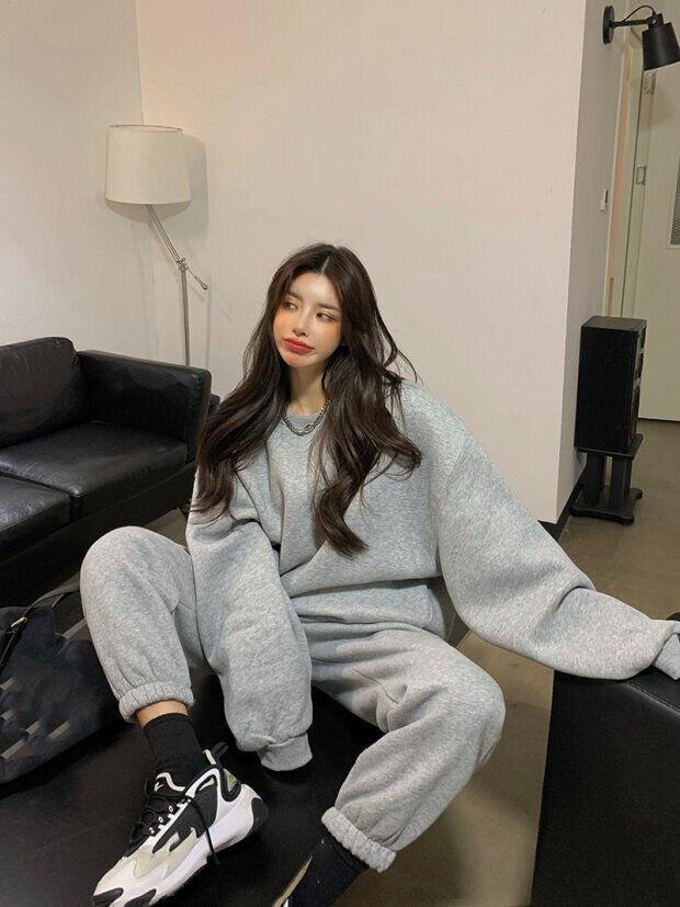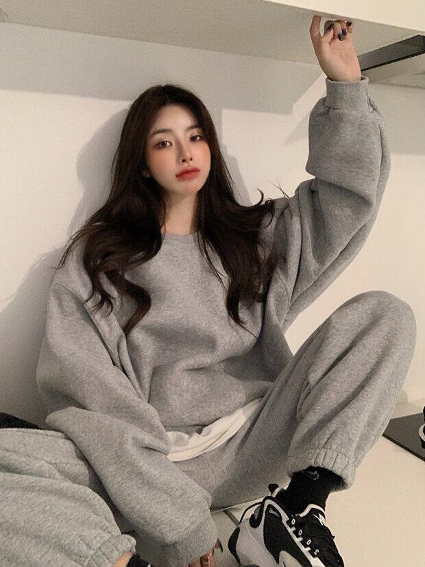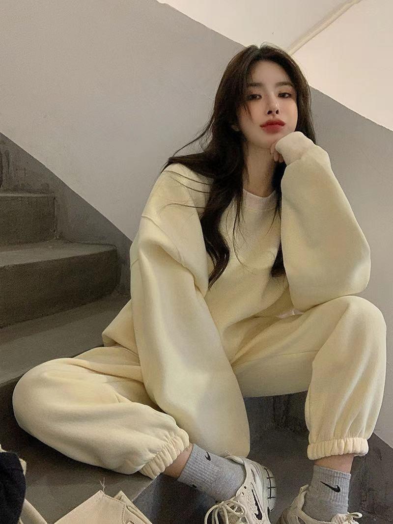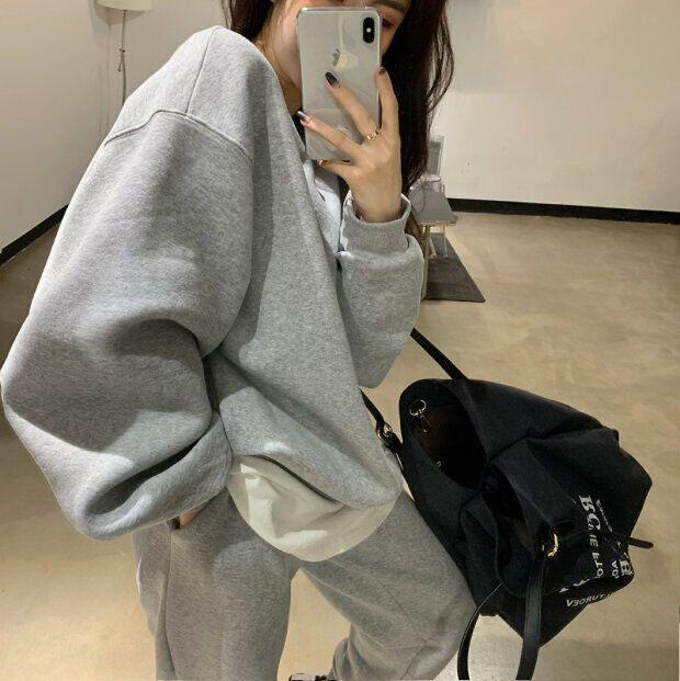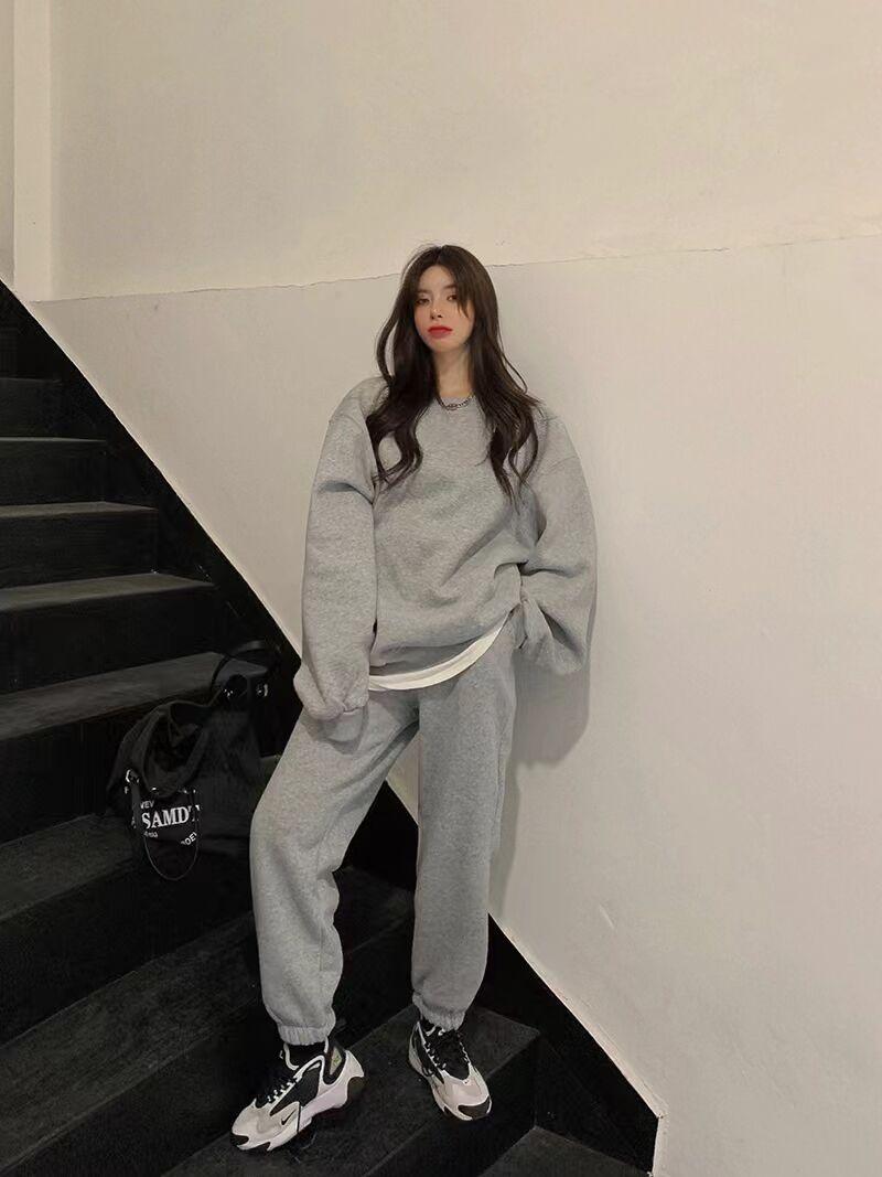 Traje Deportivo para Mujer Moda Casual 2024 Primavera y Otoño Nuevo Estilo Holgado de Manga Larga Sudadera y Pantalón Conjunto de Dos Piezas