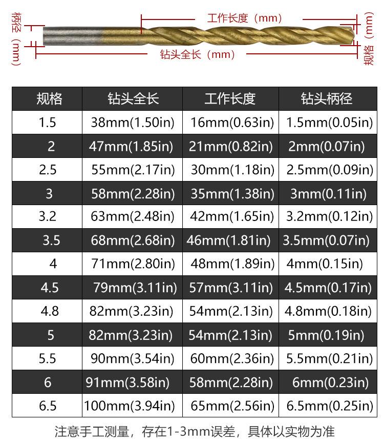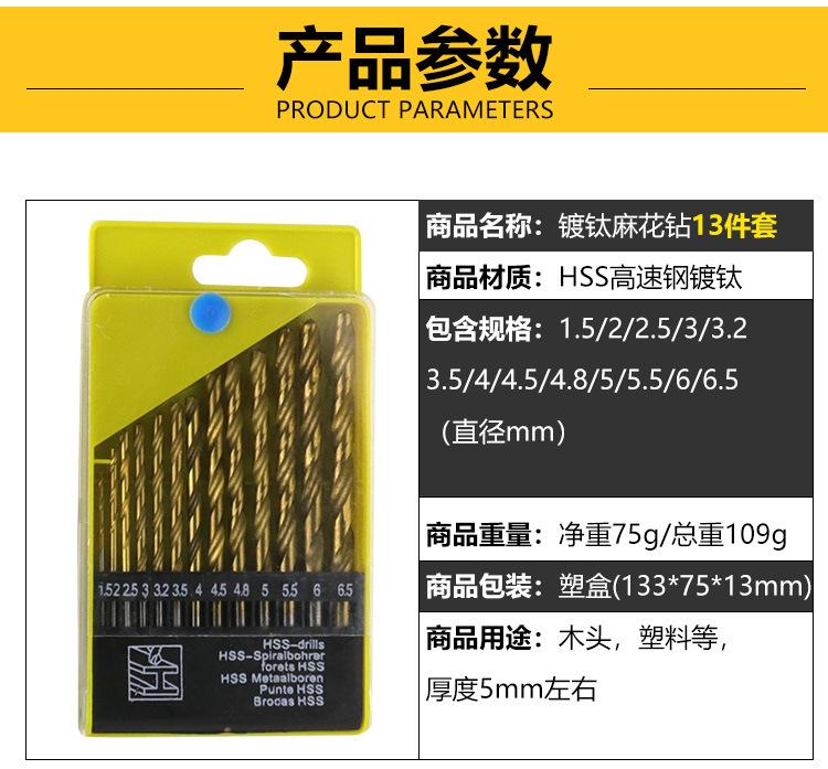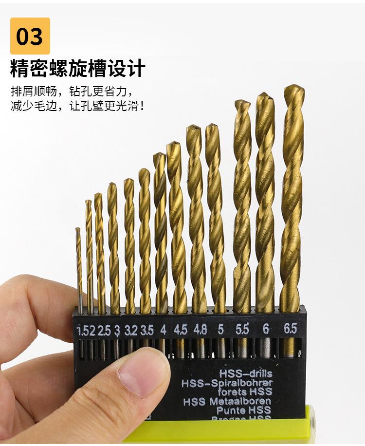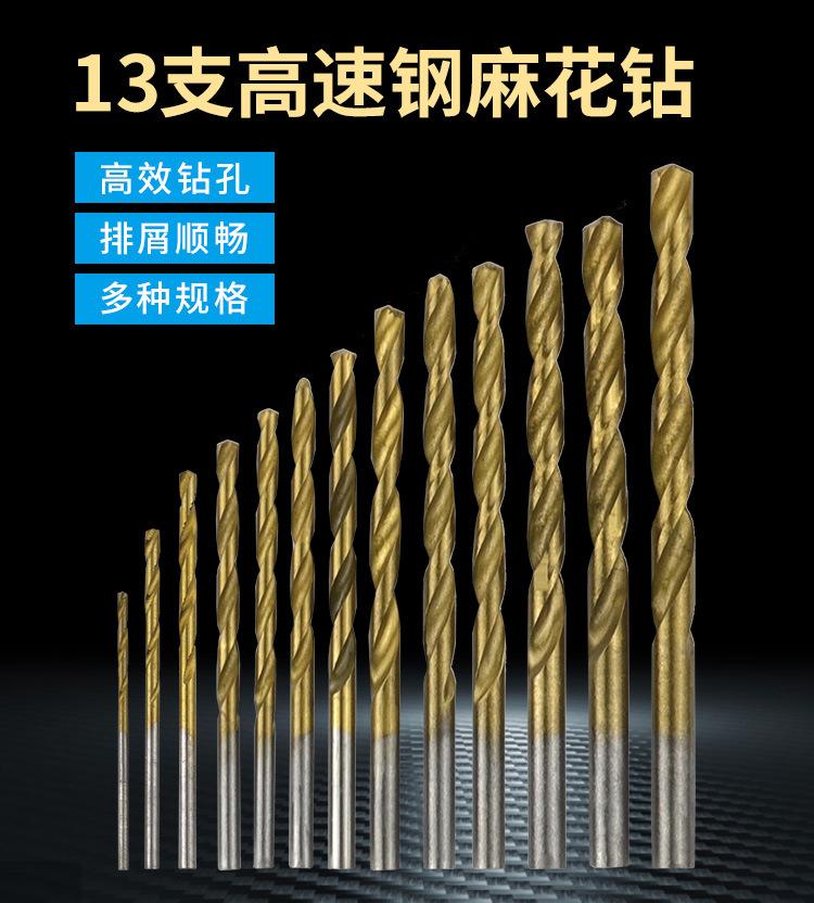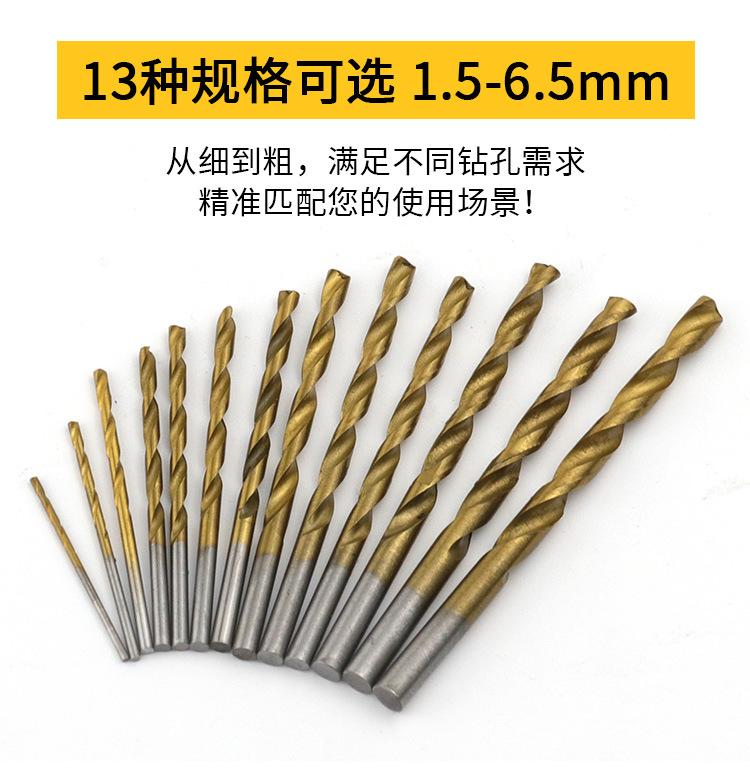 Broca helicoidal, 13 juegos de brocas helicoidales de vástago redondo de acero de alta velocidad con revestimiento de titanio, boquilla de broca helicoidal de 1,5 mm a 6,5 mm