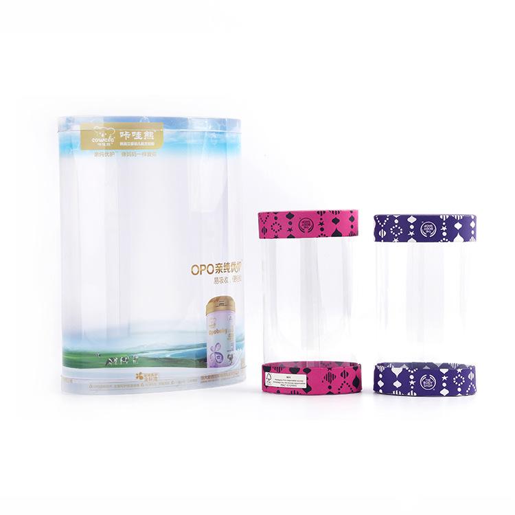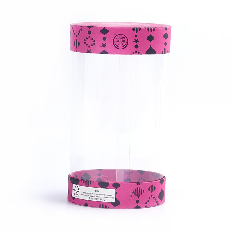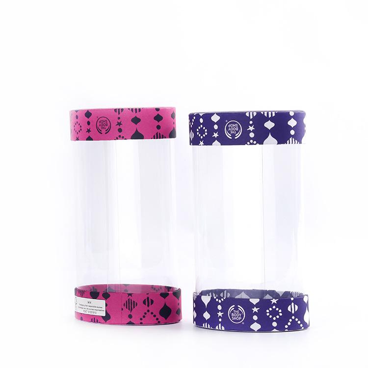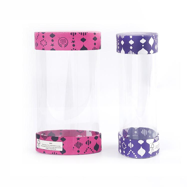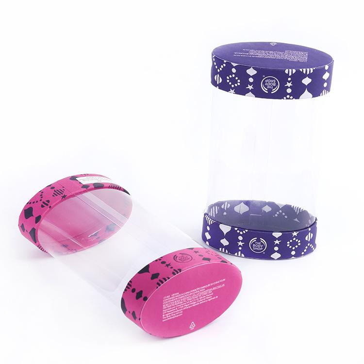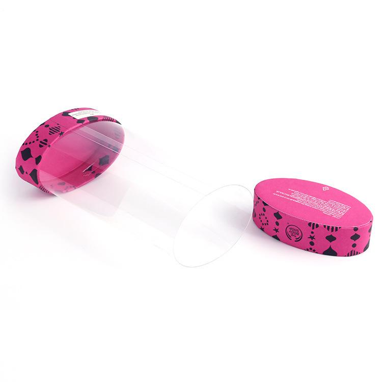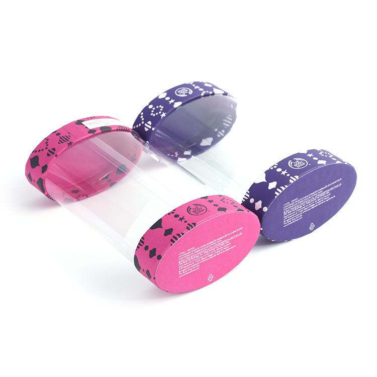 Caja de embalaje cilíndrica ovalada transparente con cubierta de papel personalizada, colorida, para manualidades y papelería, venta al por mayor.