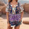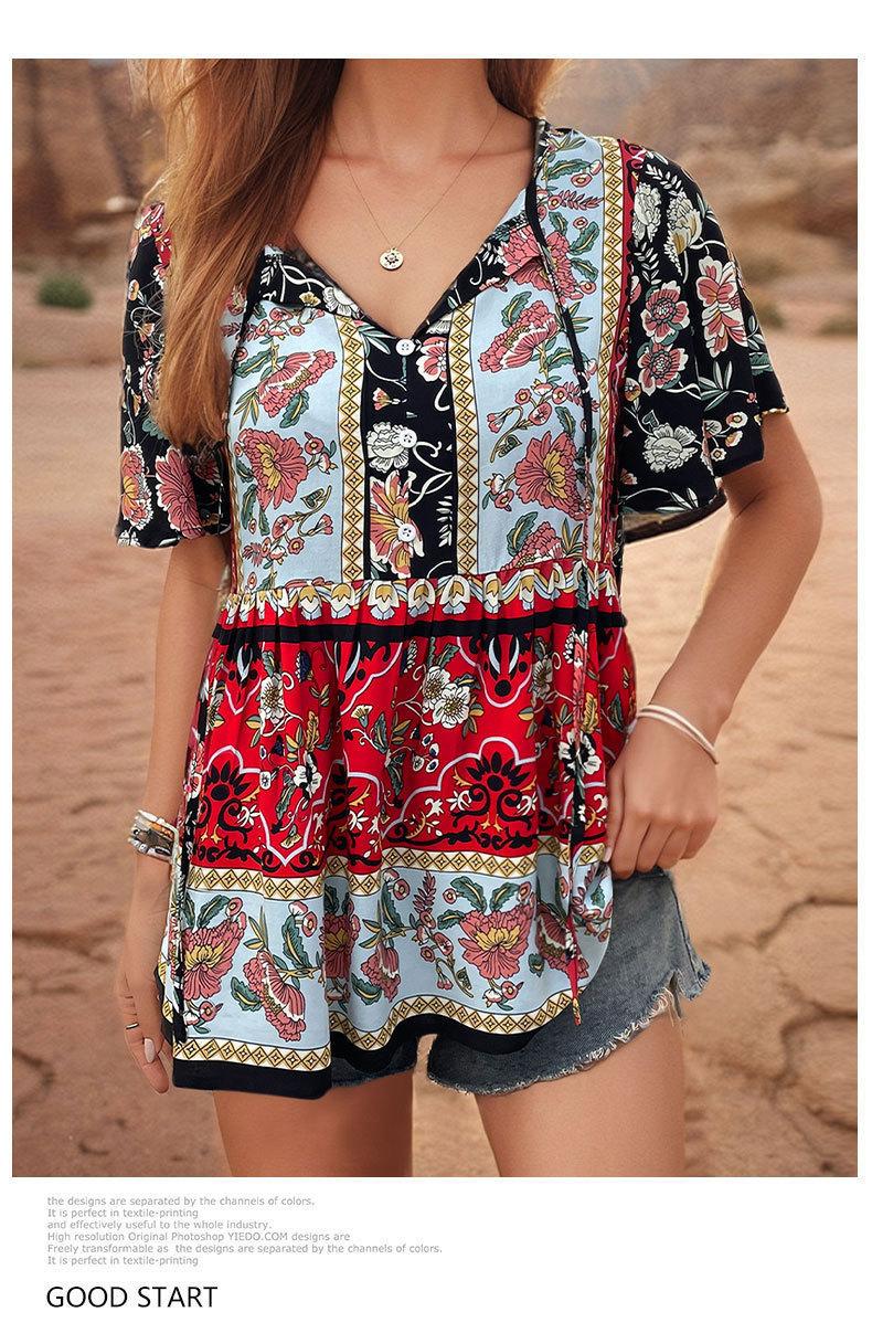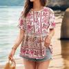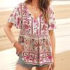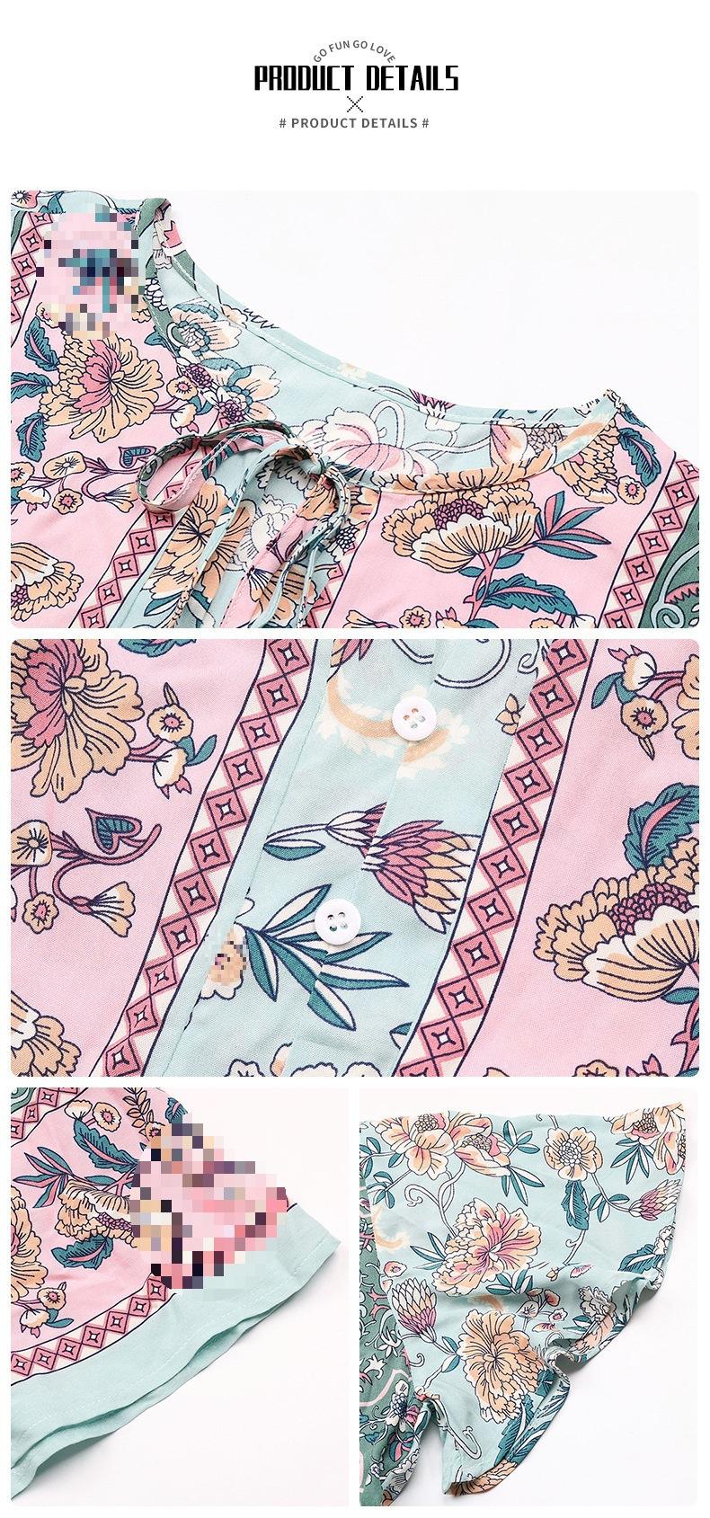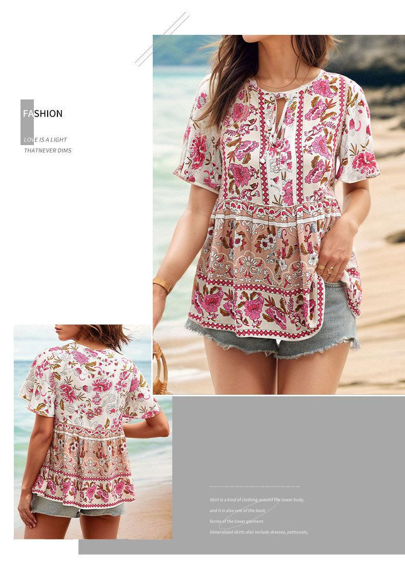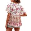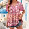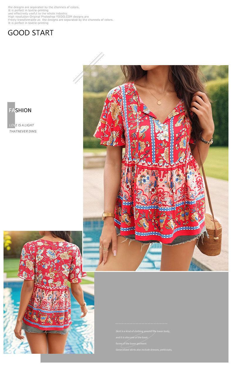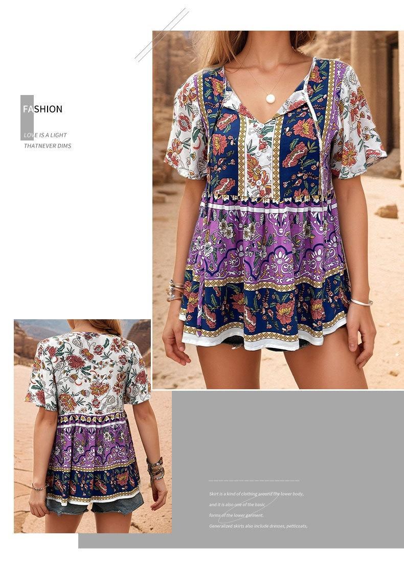 Talla grande transfronteriza 2024 Verano Nuevo Ropa de Mujer Europeo y Americano Casual Vacaciones Top Lazo Estampado Manga Hoja de Loto Camisa