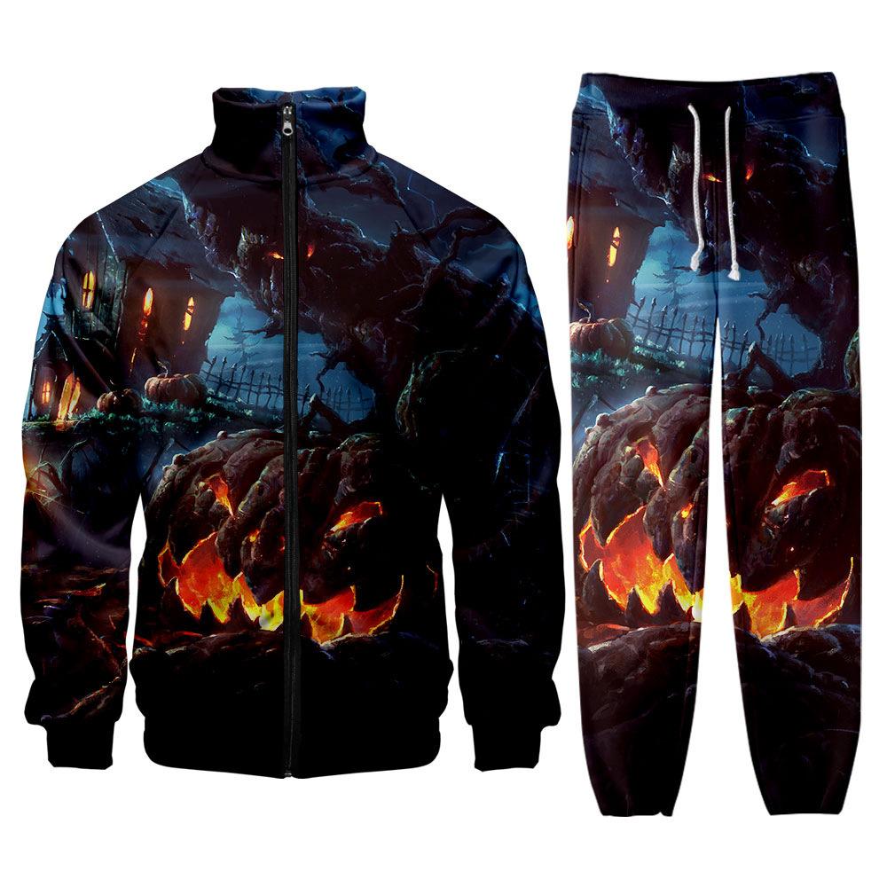 Una generación de primavera y otoño nuevo Halloween periférico impresión digital 3D chalecos con capucha traje de pantalones de punta roscada
