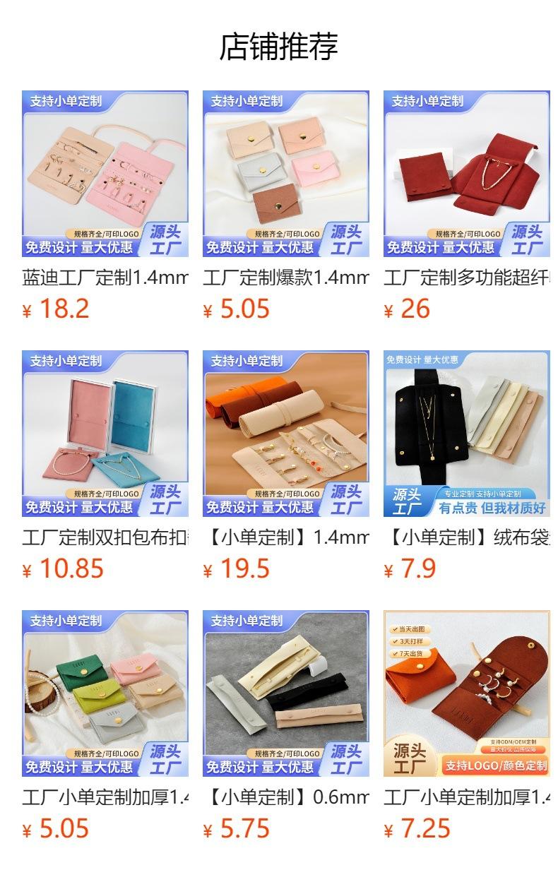 Bolsa de Joyería de Terciopelo de Microfibra Engrosada de Alta Calidad Personalizada para Pedidos Pequeños de Fábrica, Bolsa de Almacenamiento de Joyería Portátil Multifuncional de Gran Capacidad