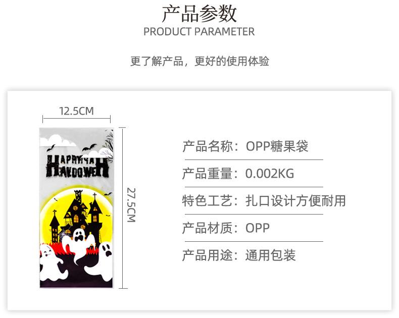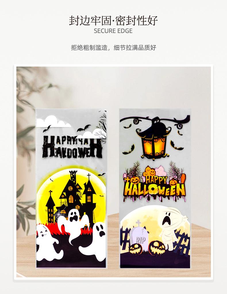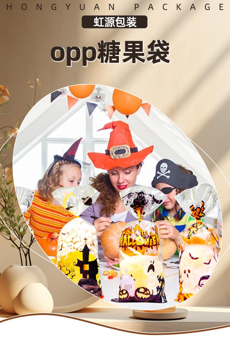Nueva bolsa OPP transfronteriza para dulces de Halloween, bocadillos, frutas, boca plana, tamaño pequeño, bolsa para empaquetar joyas, disponible en stock.