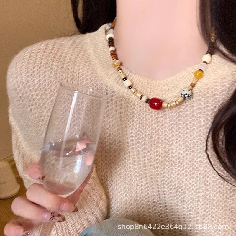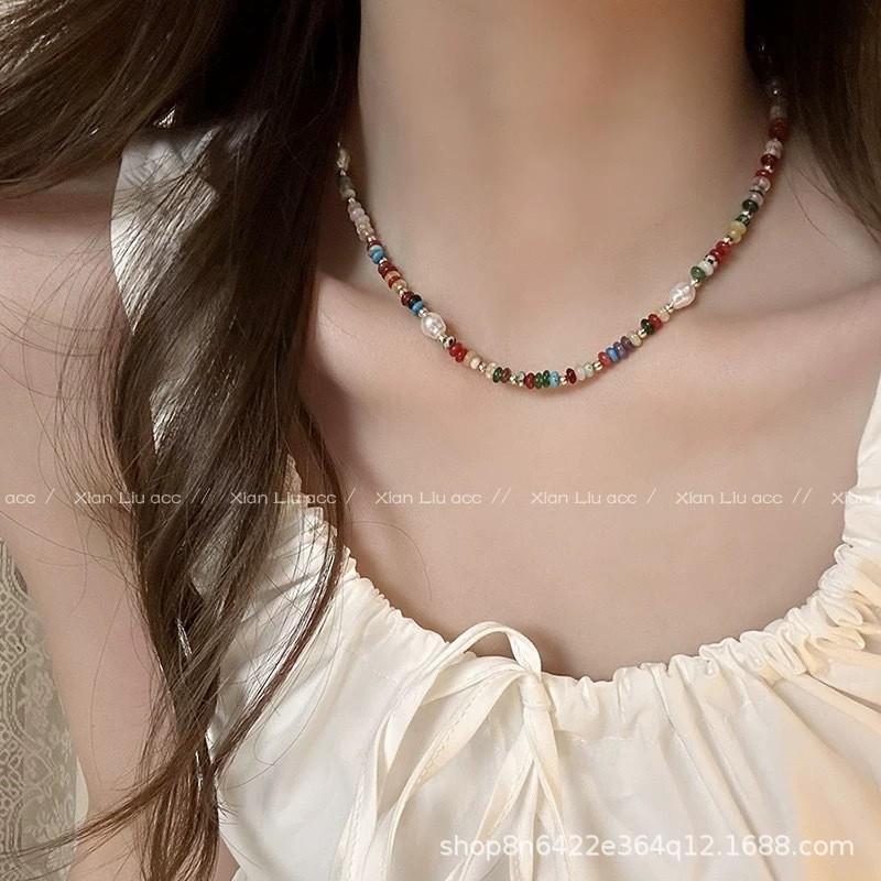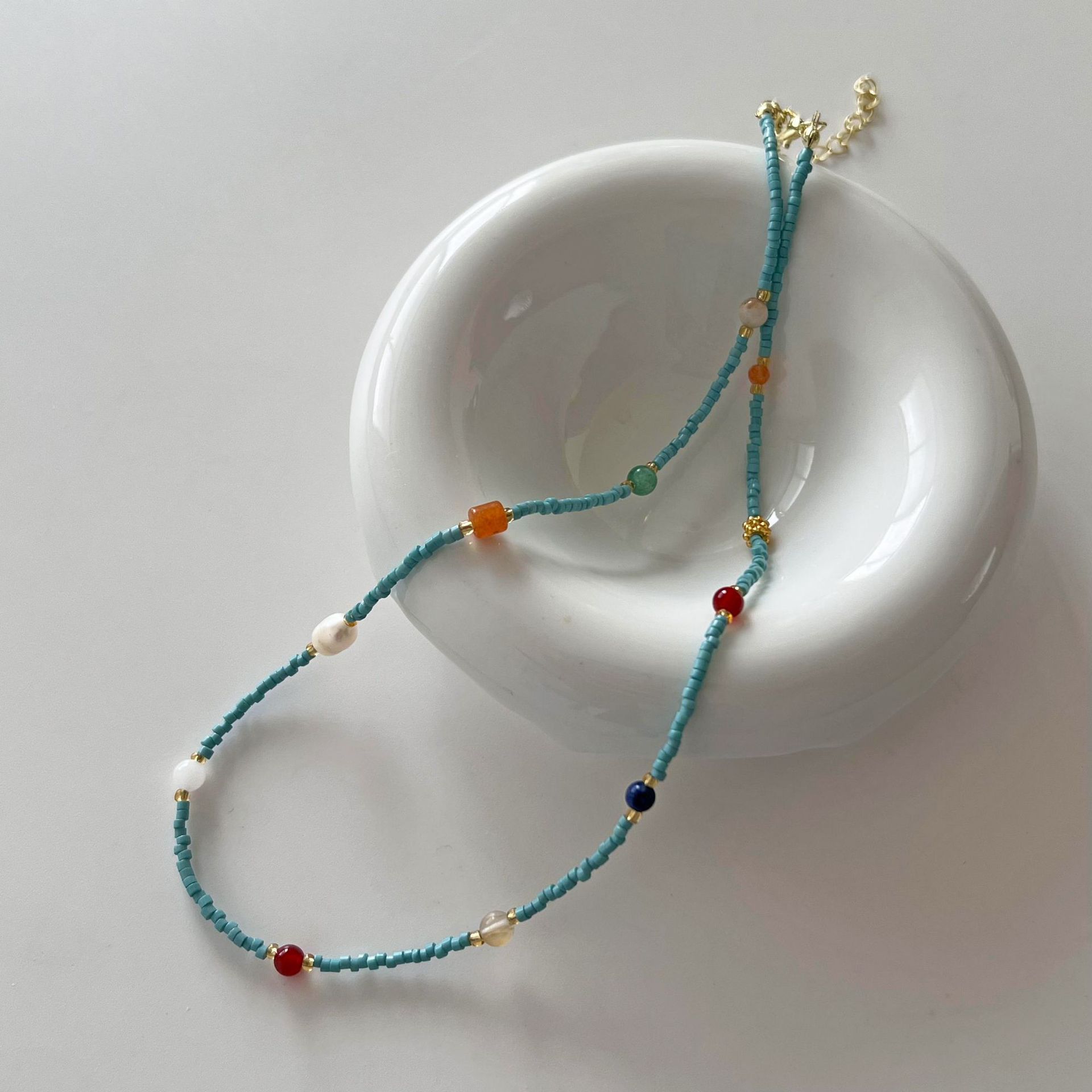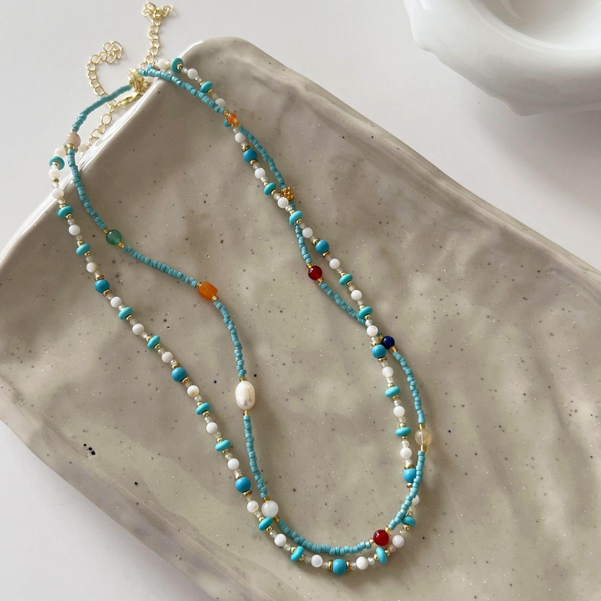 Nuevo Collar de Perlas Turquesas de Estilo Chino para Mujer Verano Color Fresco Pequeño Moda Lujo Ligero Dopamina Cadena Clavícula con Cuentas