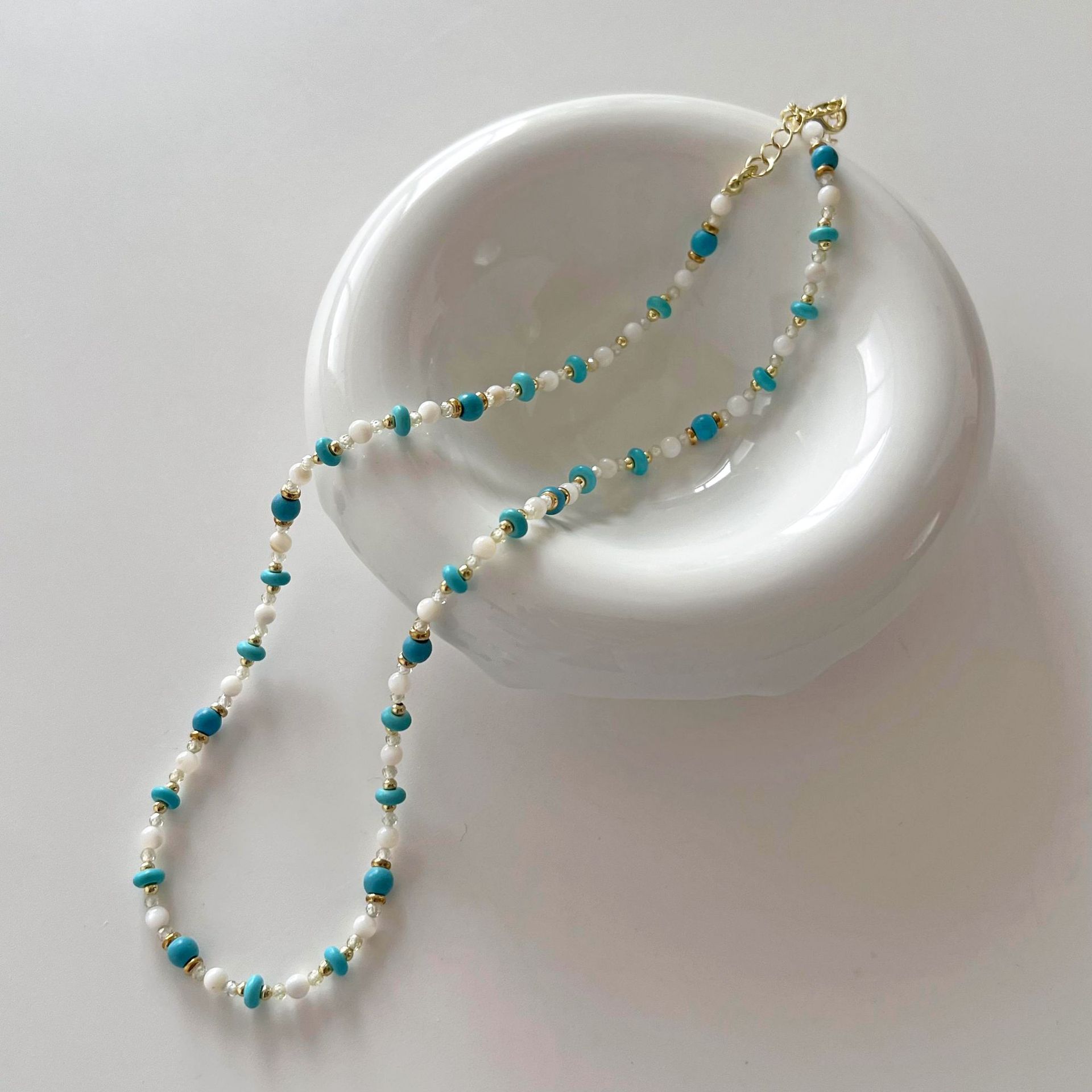 Blue and white beads, Natural turquoise clavicle chain, Main picture two-piece set, Natural pearl necklace, Se...