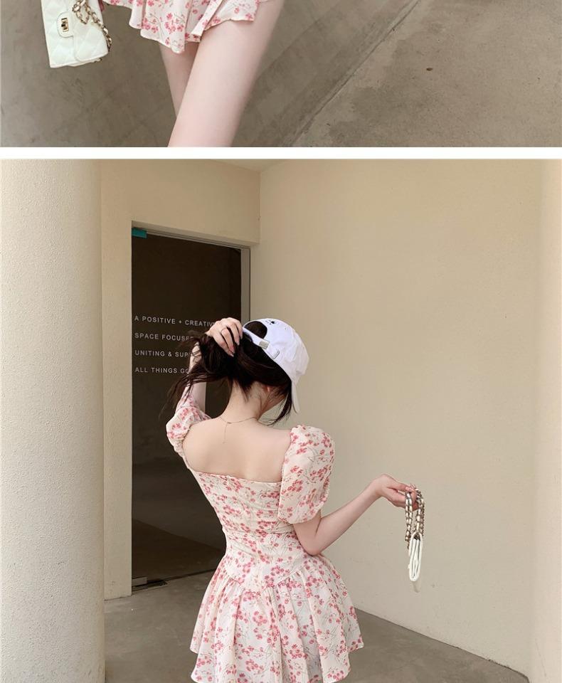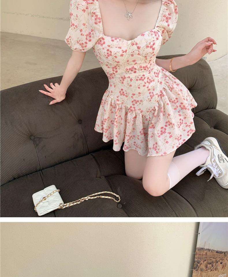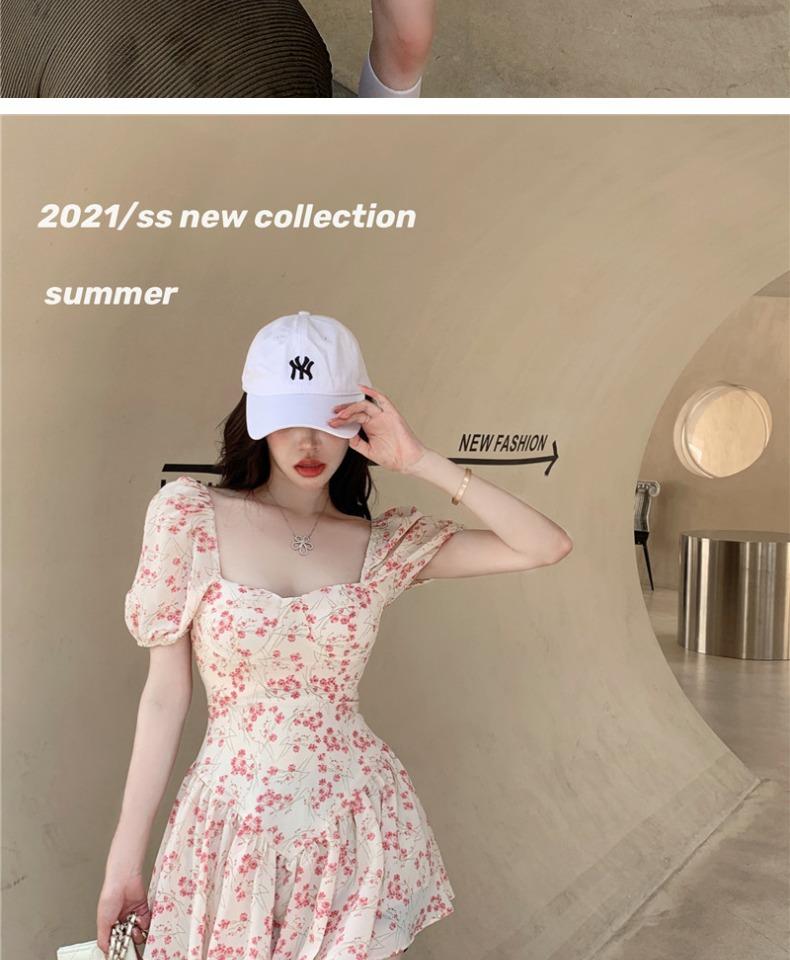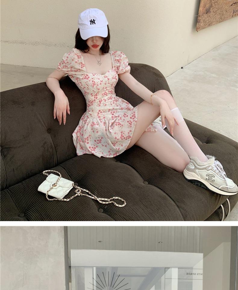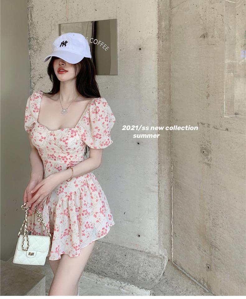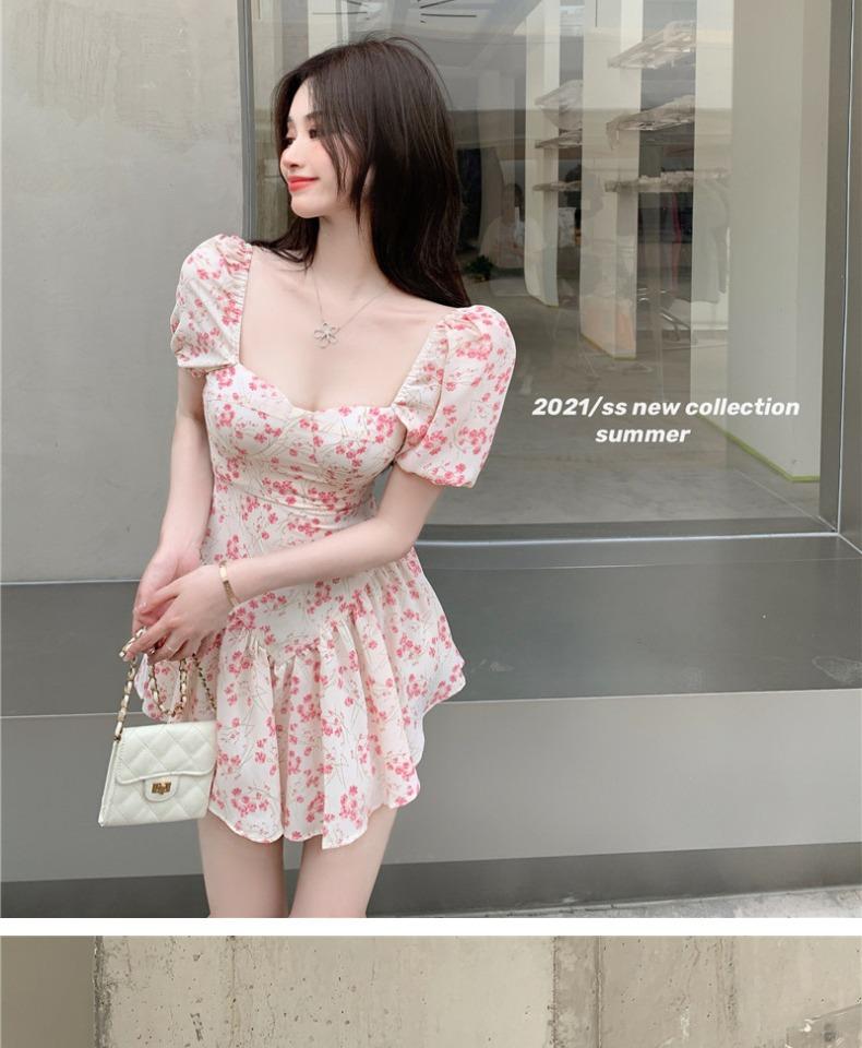 Vestido floral sexy, dulce y picante, estilo Pure Desire, novedad de verano 2023, con mangas abullonadas francesas, cintura adelgazante, falda con cuello cuadrado