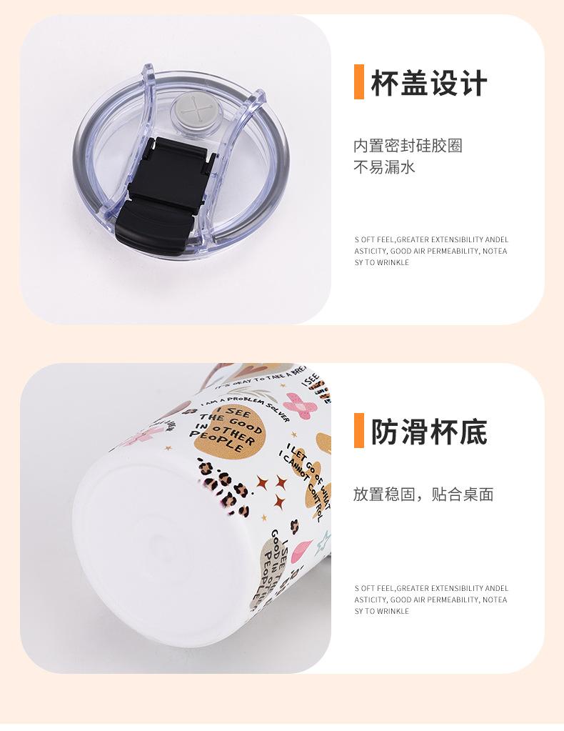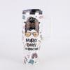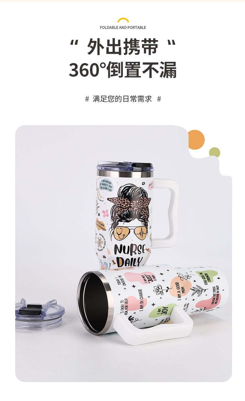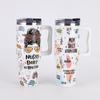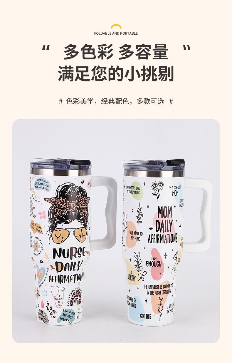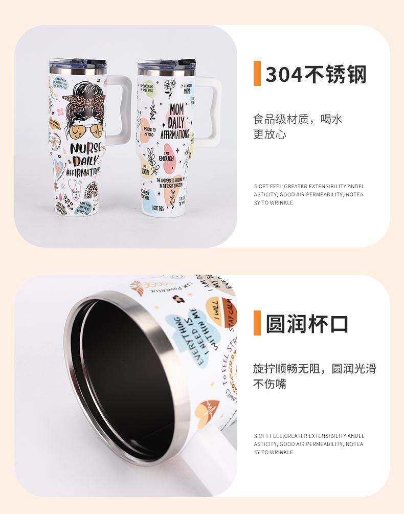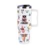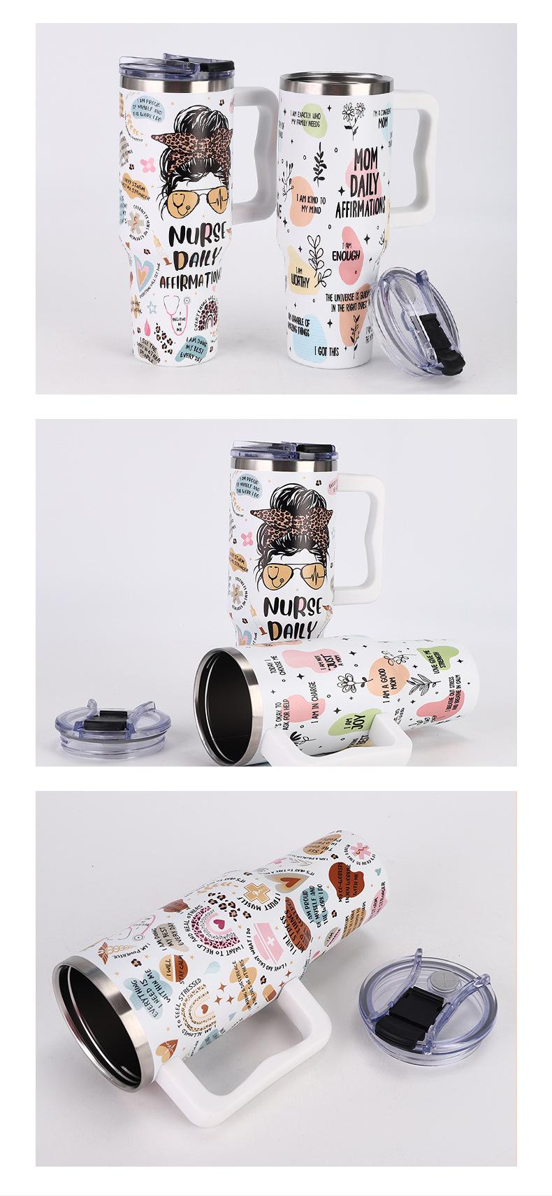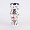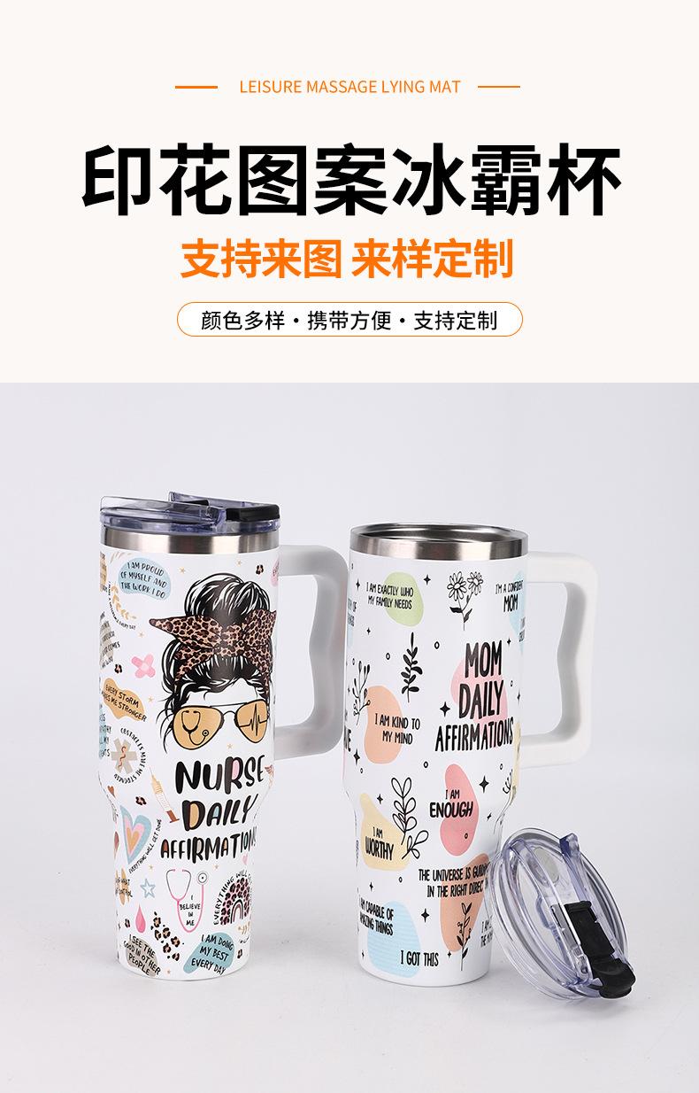 Vaso de hielo con patrón impreso transfronterizo, termo de acero inoxidable 304 para exteriores con asa de letra, vaso para coche de 40 oz