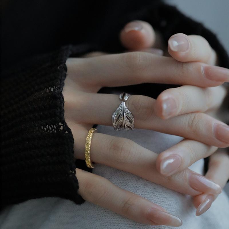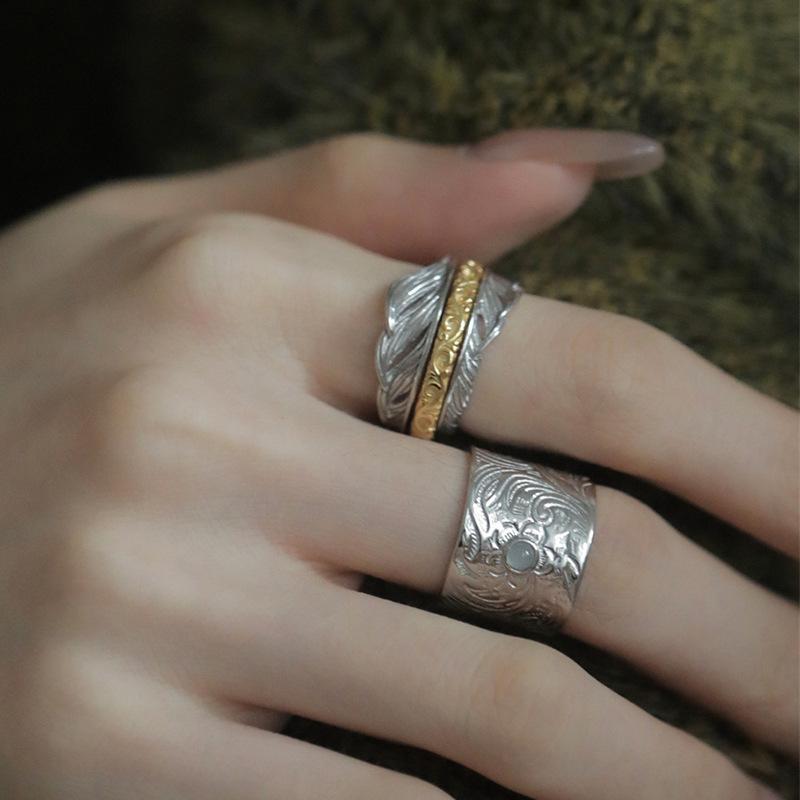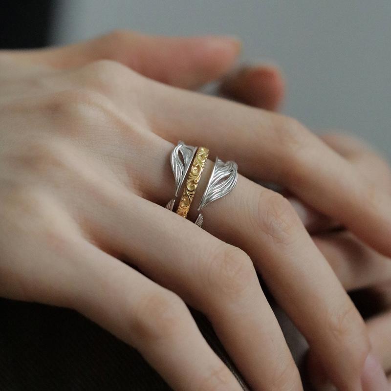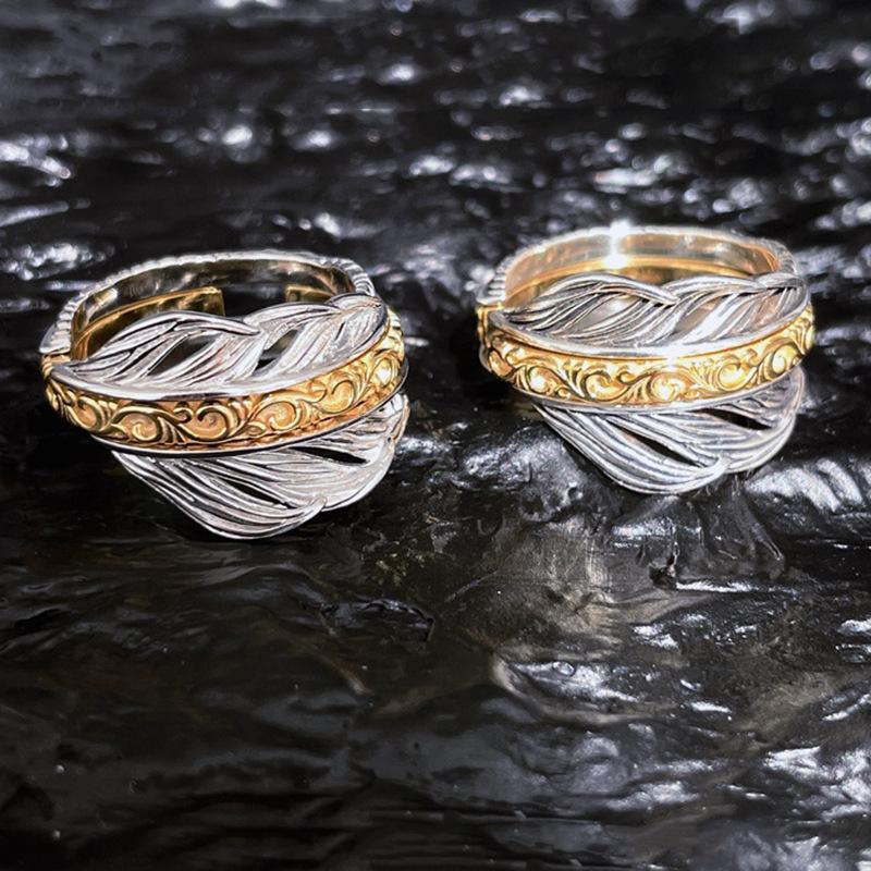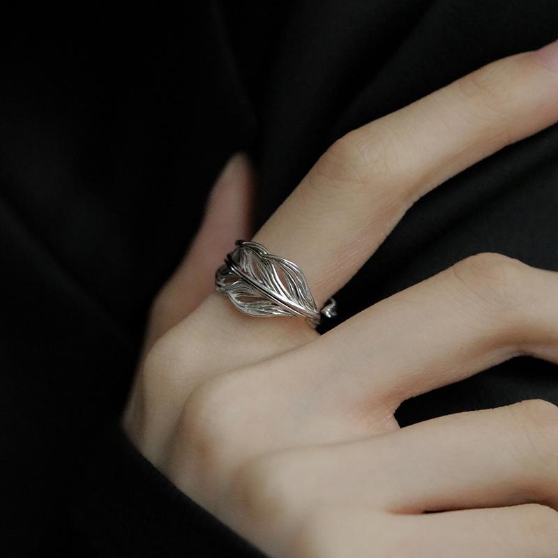 Anillo de plumas a juego de colores Temperamento de moda retro para mujer Alto sentido Plata S925 anillo dividido anillo de dedo creativo exagerado