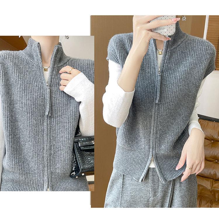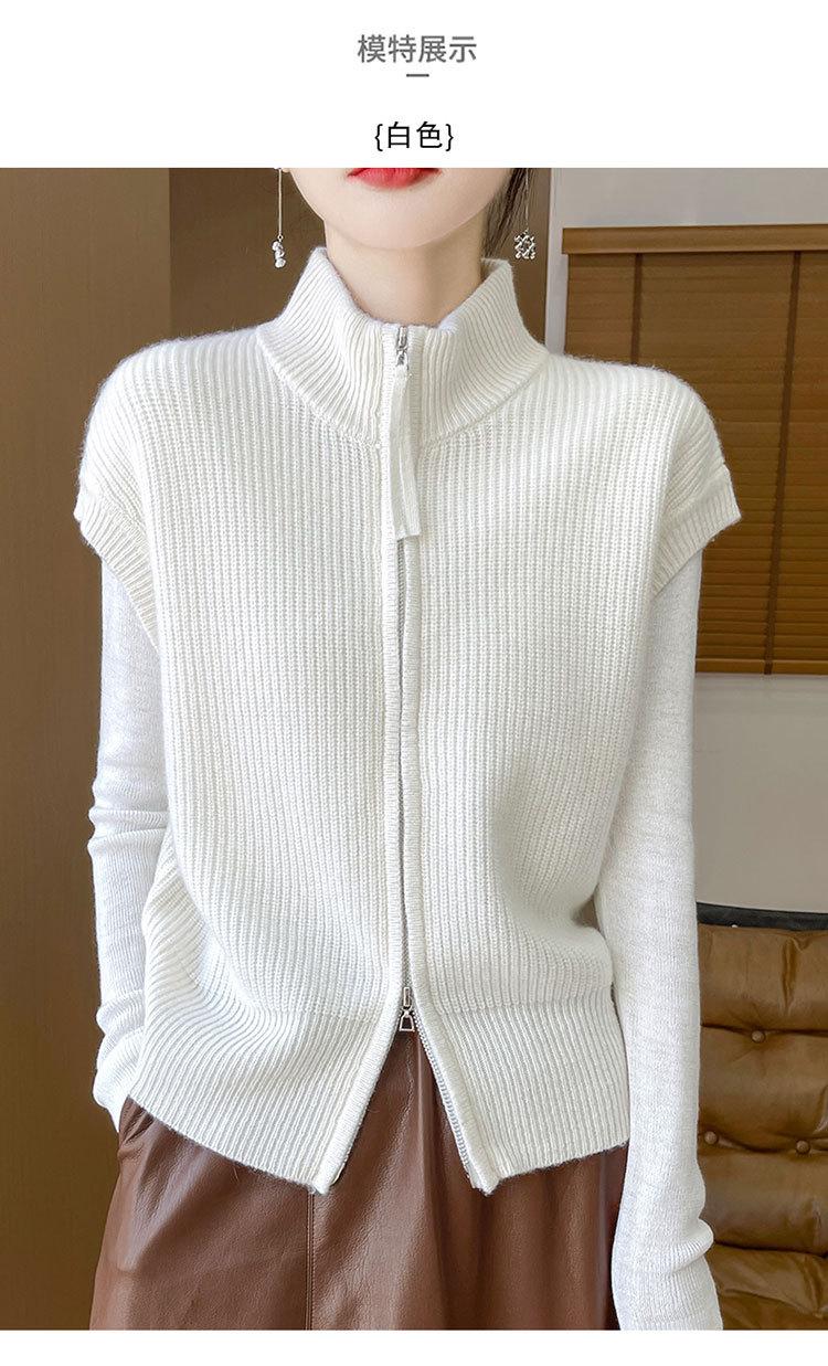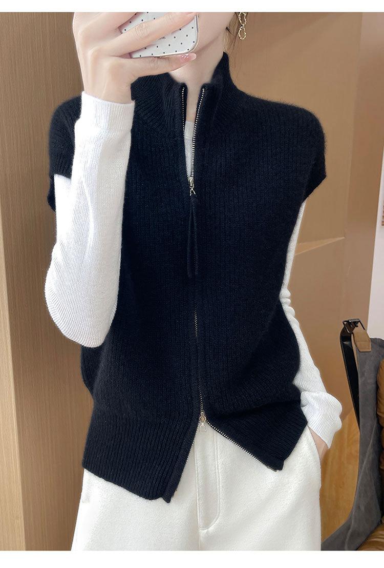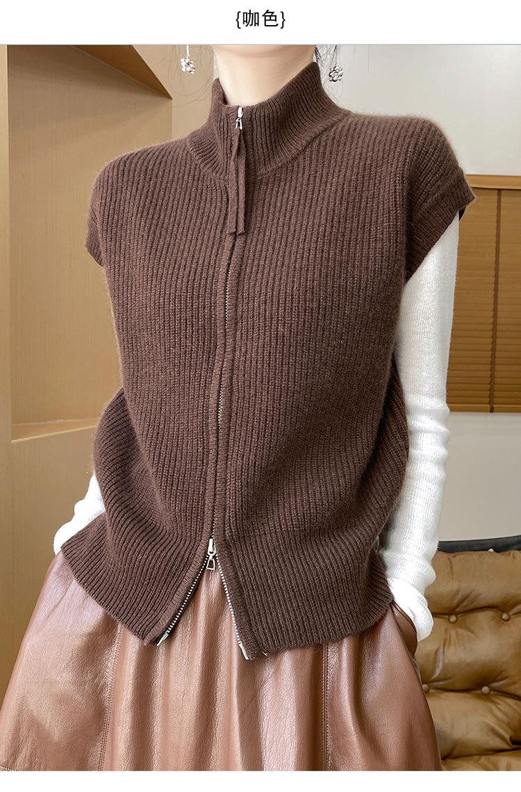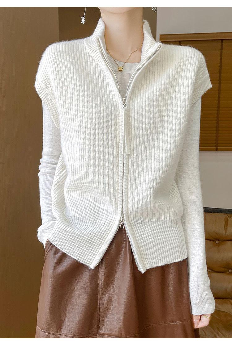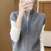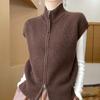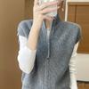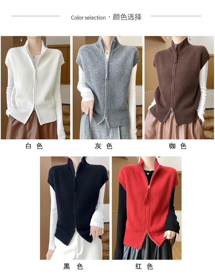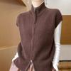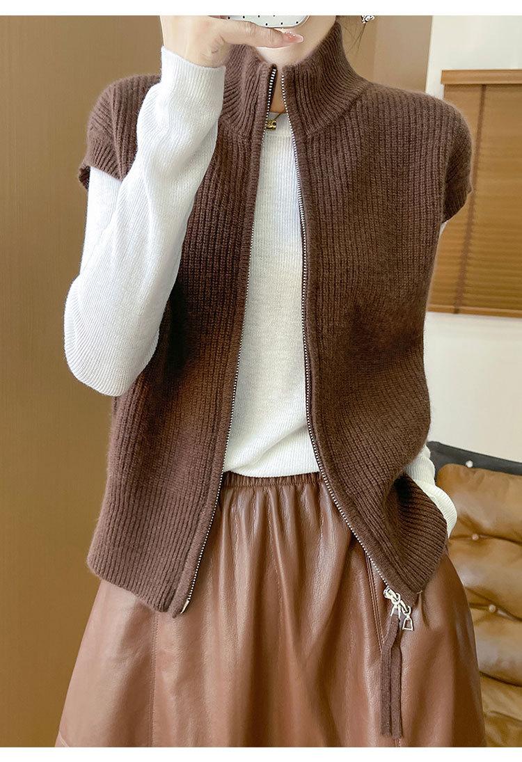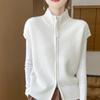 Cárdigan de cachemira 100% pura para mujer, chaleco de cuello alto, abrigo de manga corta con cremallera, suéter de punto de lana, novedad de otoño e invierno.