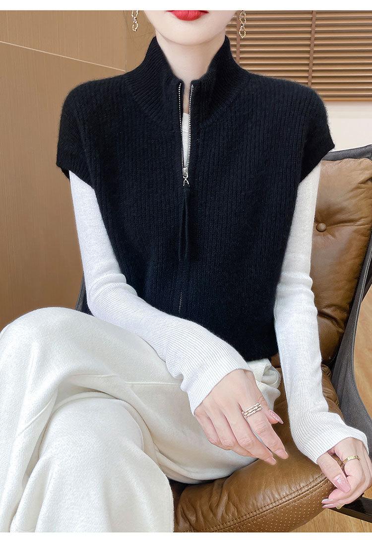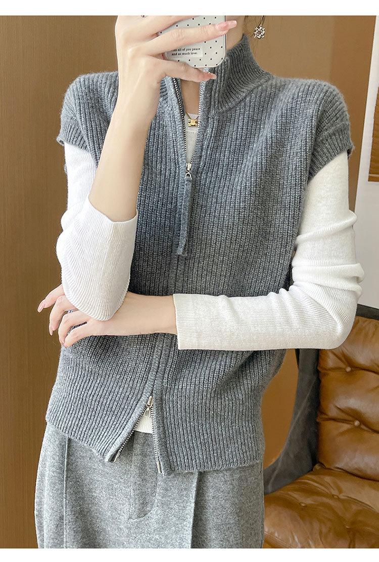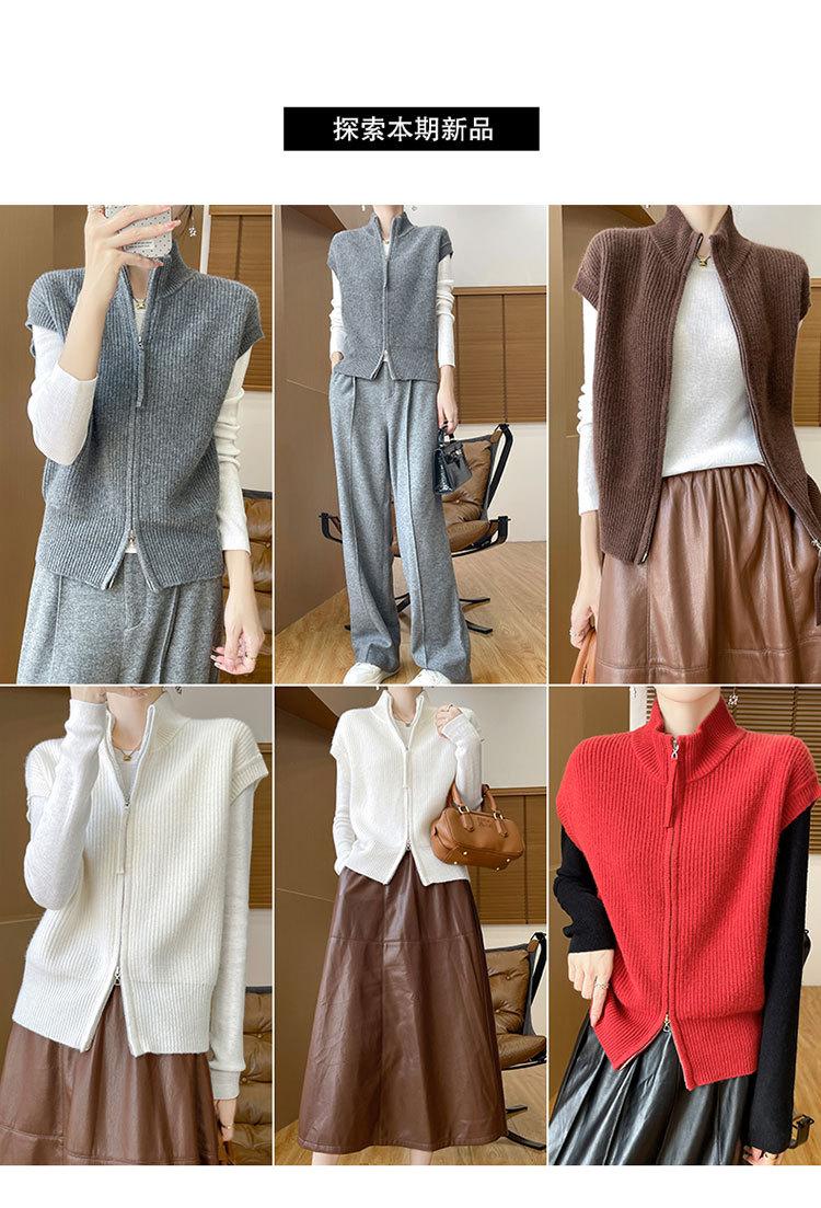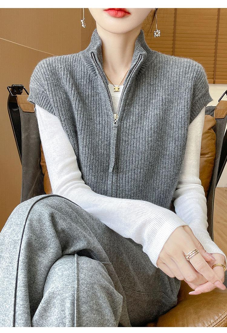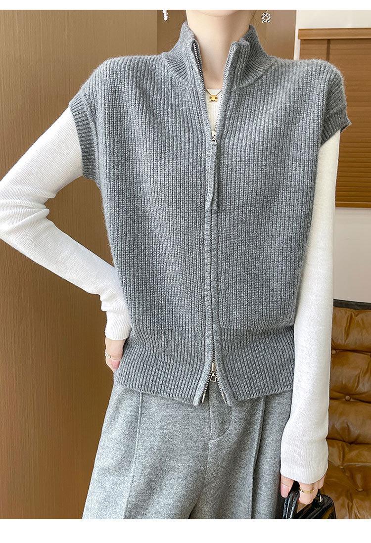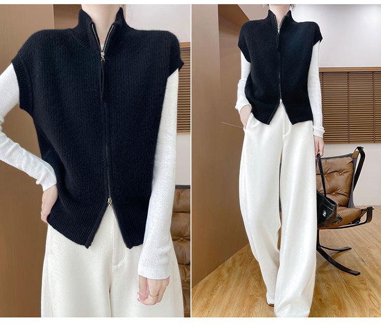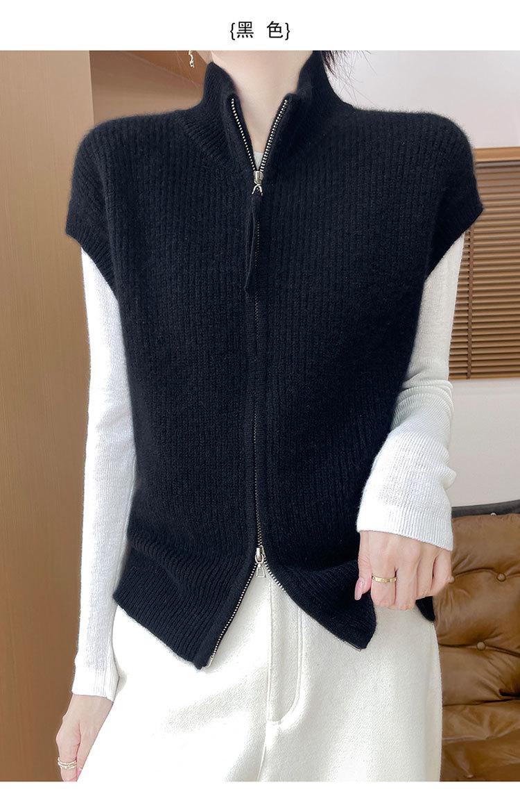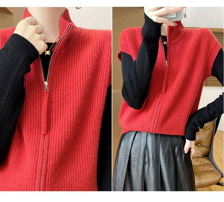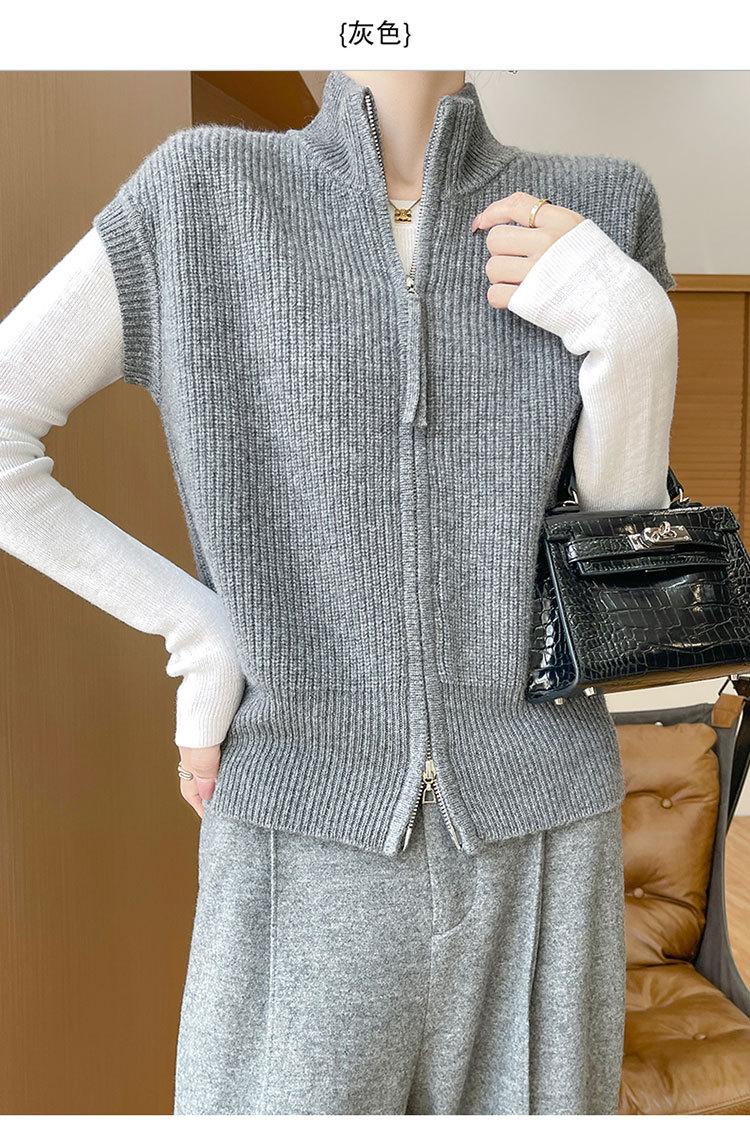 Cárdigan de cachemira 100% pura para mujer, chaleco de cuello alto, abrigo de manga corta con cremallera, suéter de punto de lana, novedad de otoño e invierno.