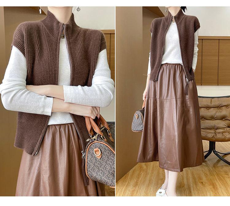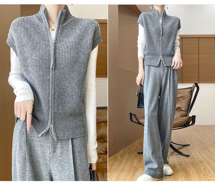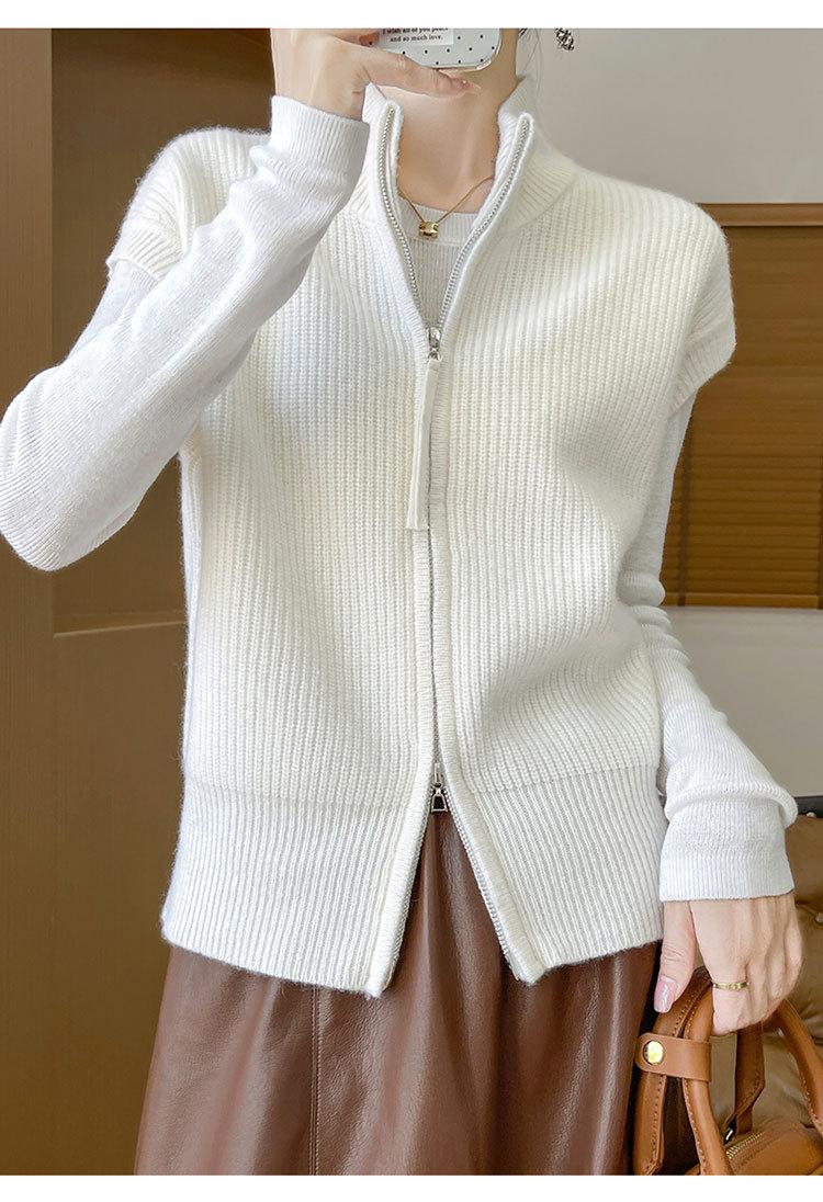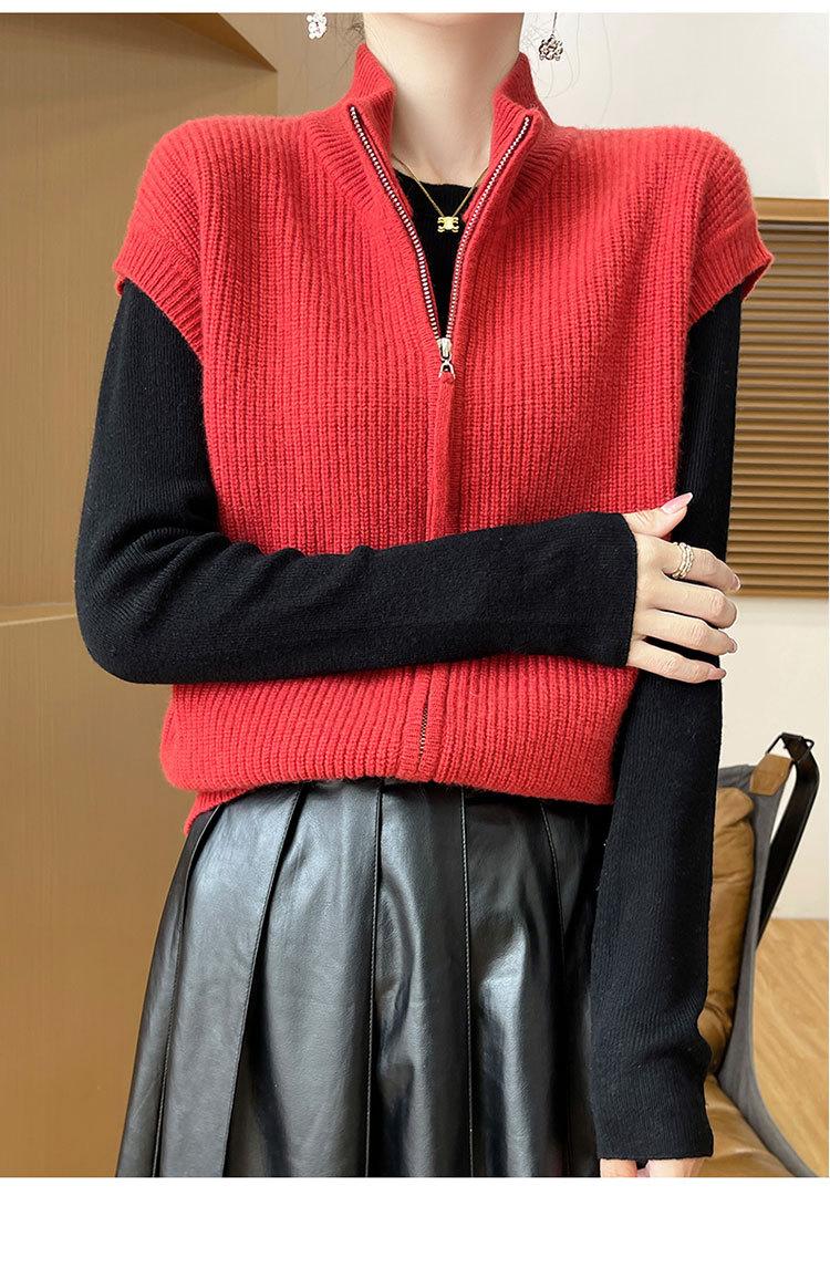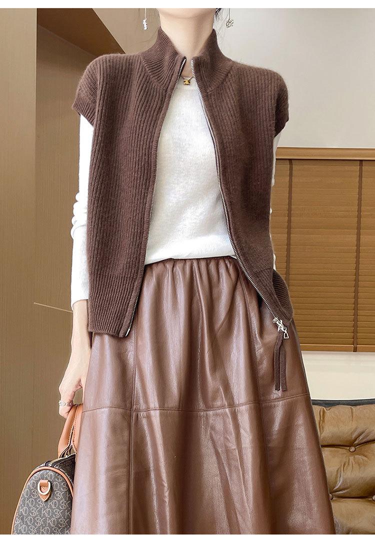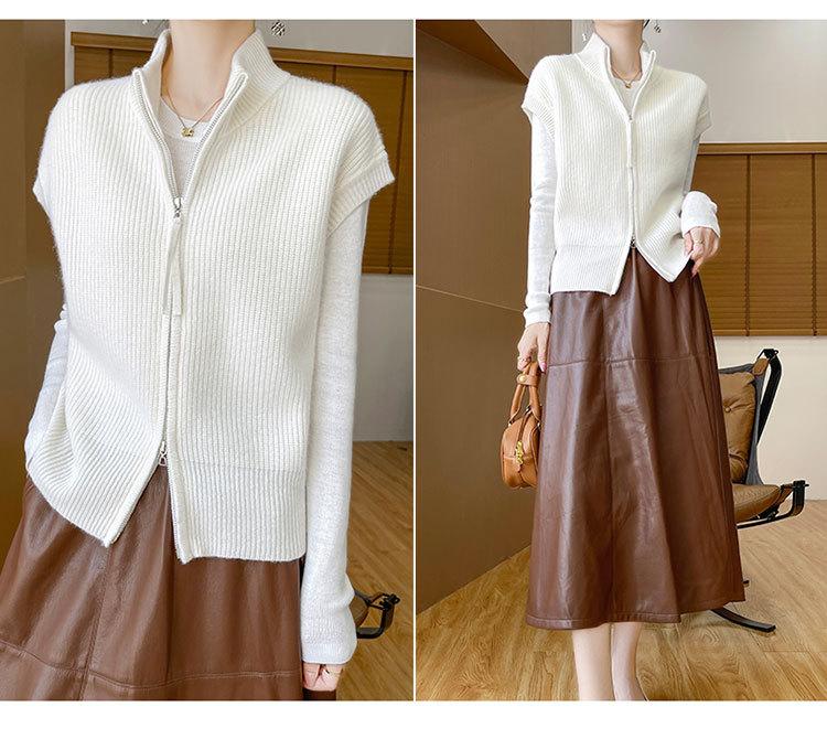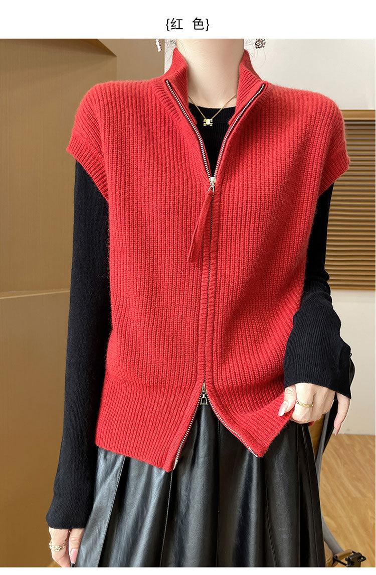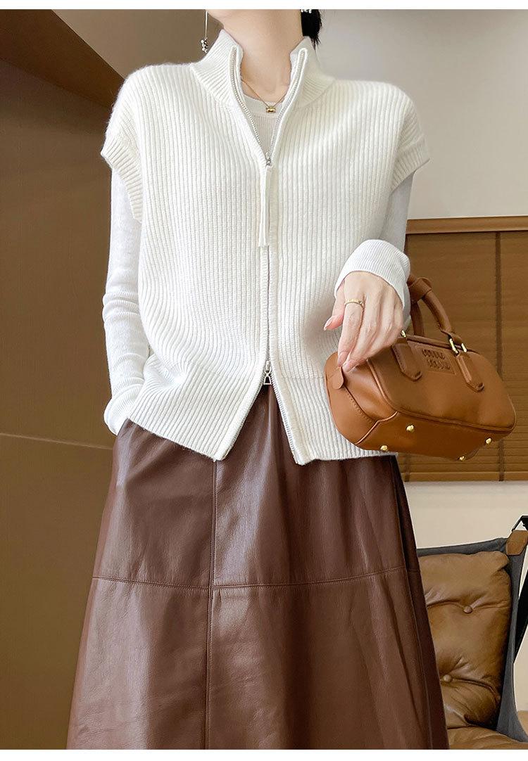 Cárdigan de cachemira 100% pura para mujer, chaleco de cuello alto, abrigo de manga corta con cremallera, suéter de punto de lana, novedad de otoño e invierno.