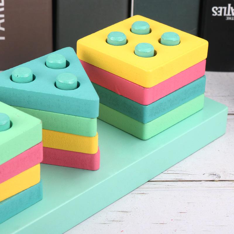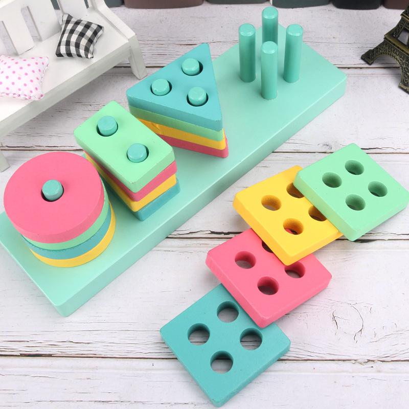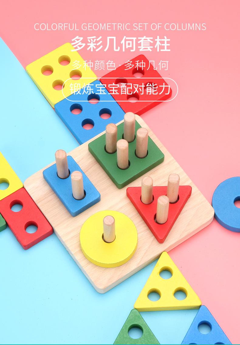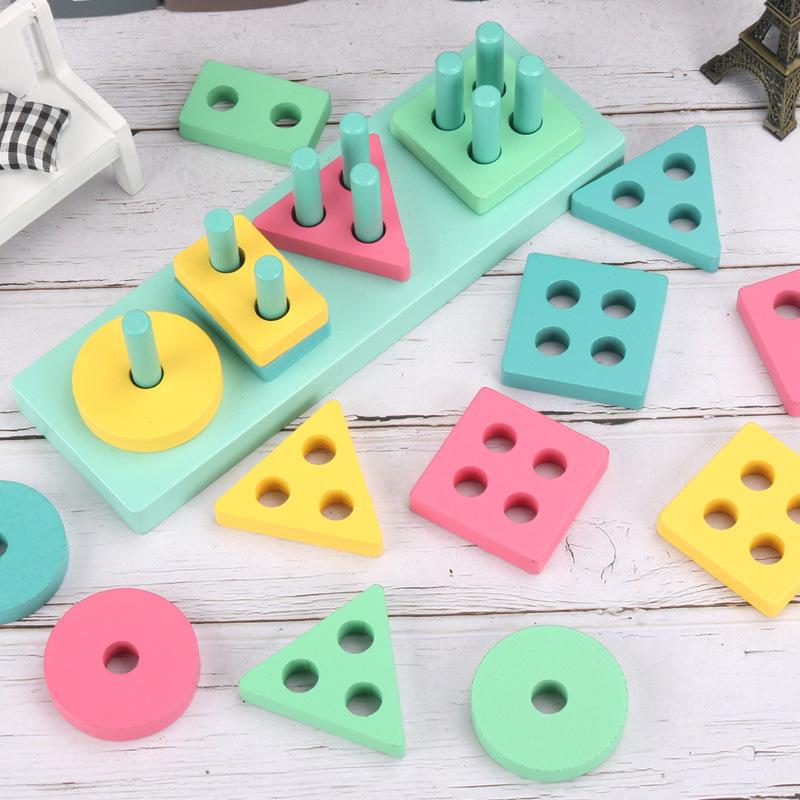 Conjunto de cuatro columnas geométricas de madera Montessori para educación infantil, bloques de construcción, material didáctico para niños de 1 a 3 años, juguetes educativos para bebés