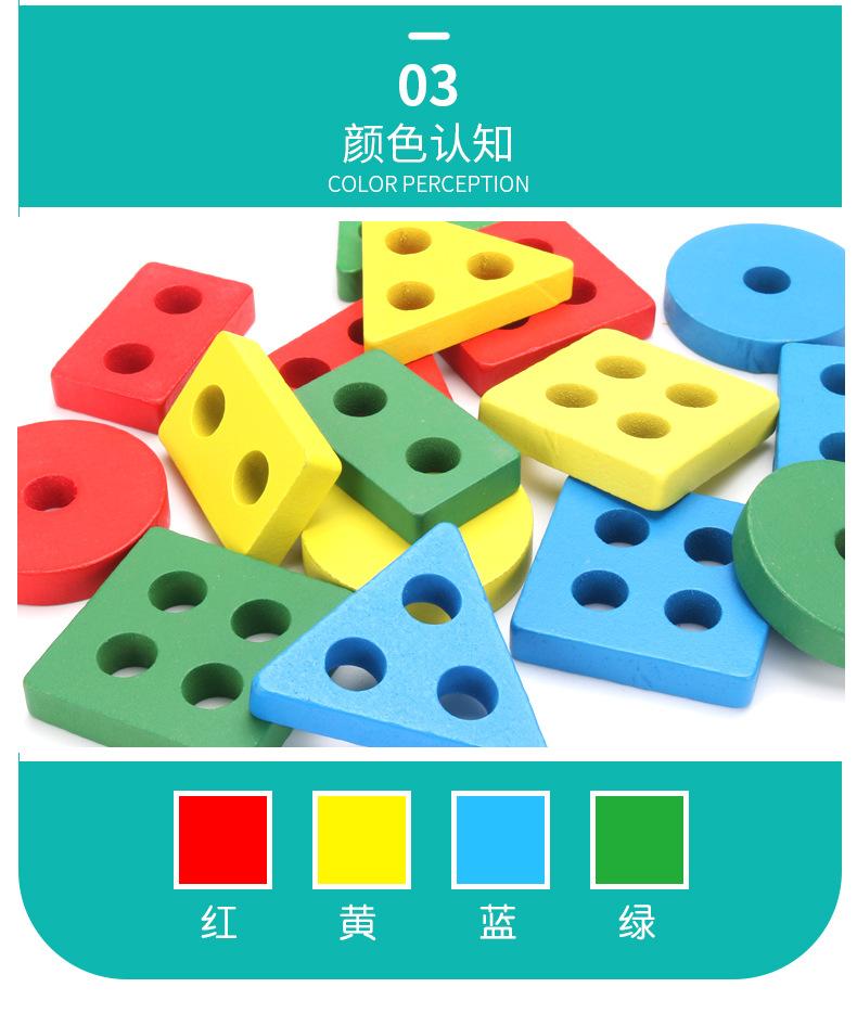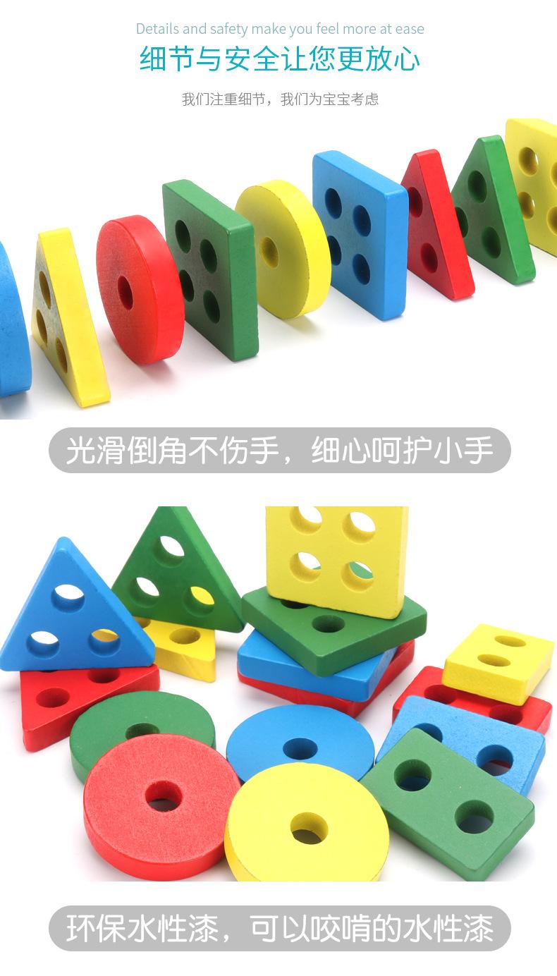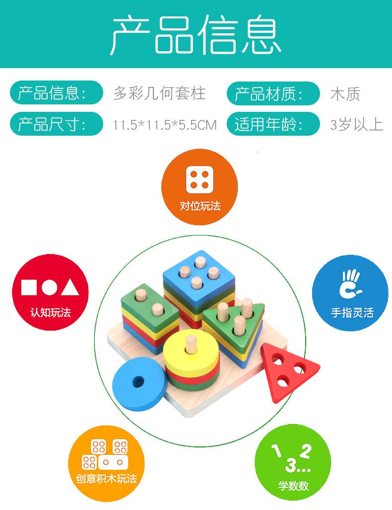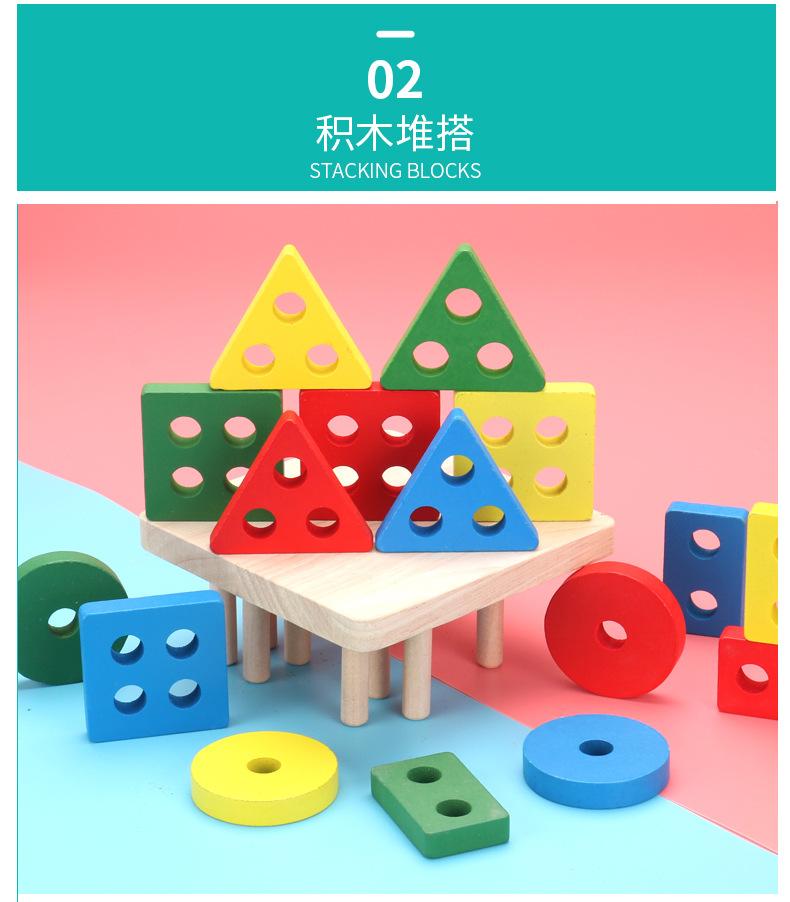 Conjunto de cuatro columnas geométricas de madera Montessori para educación infantil, bloques de construcción, material didáctico para niños de 1 a 3 años, juguetes educativos para bebés