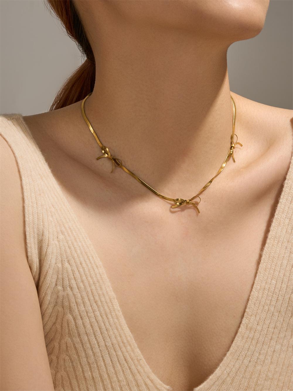 Moda Transfronteriza Europea y Americana Lujo Ligero Simple Personalidad Collar de Lazo para Mujer Elegante de Alta Gama Acero Titanio Color Inalterable Collar