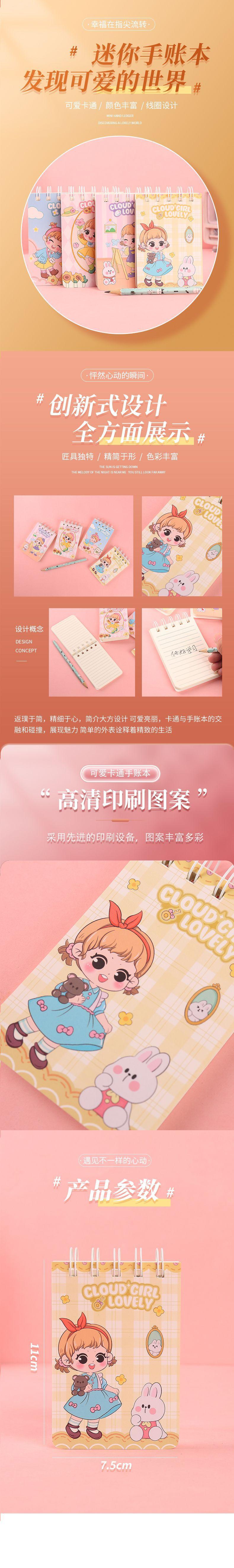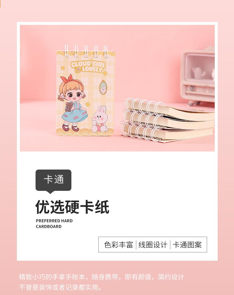 Cuaderno de dibujos animados de alto valor con espiral doblada, libro de útiles escolares, bolsillo de mano, mini cuaderno A7