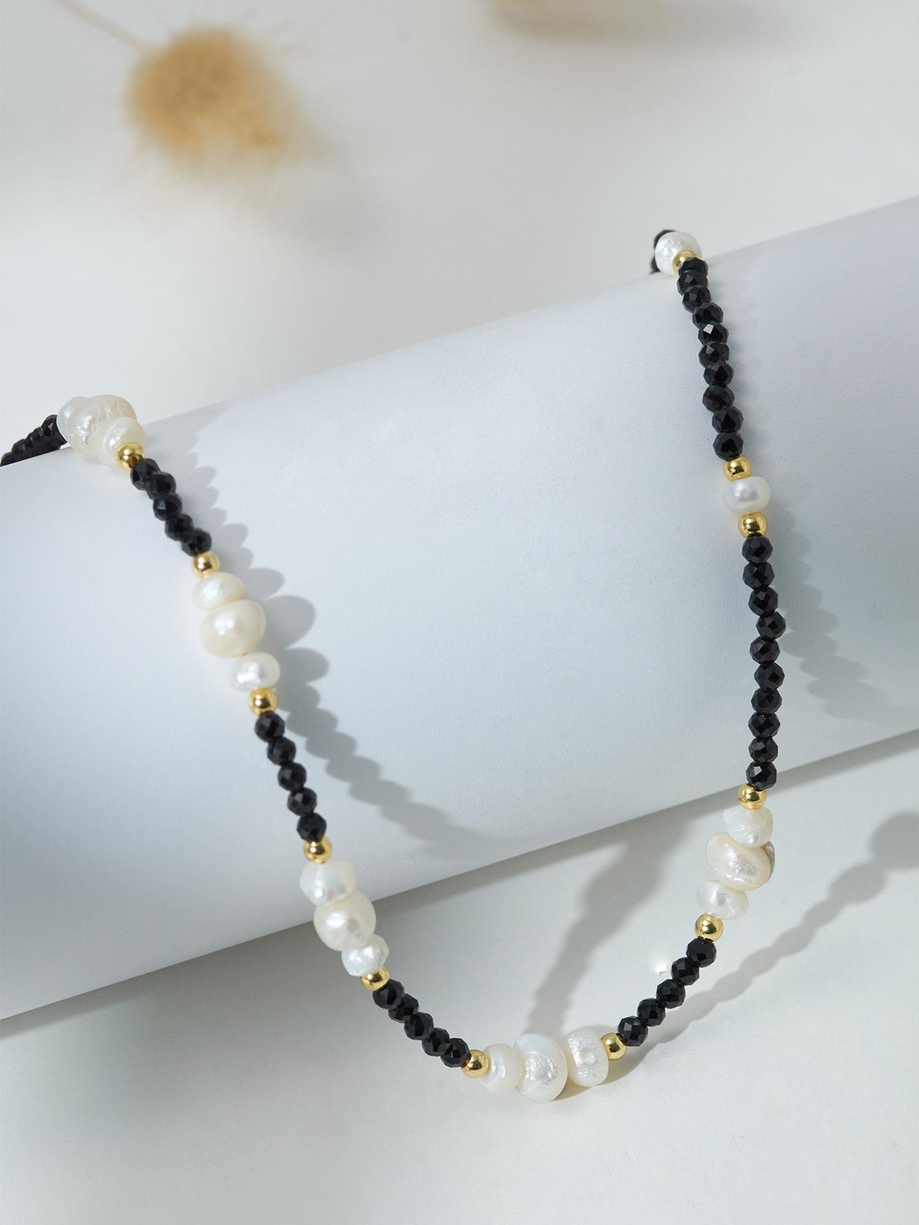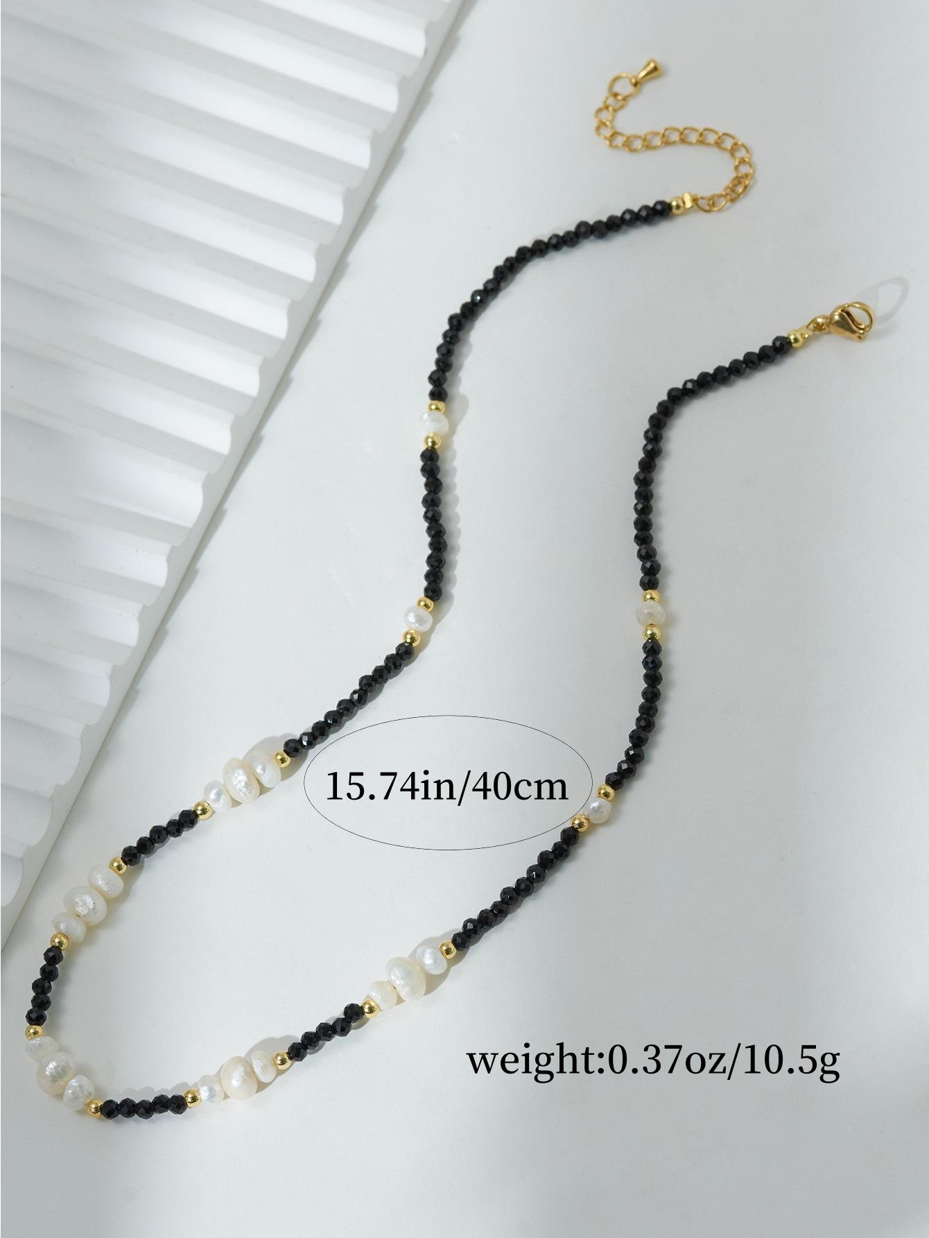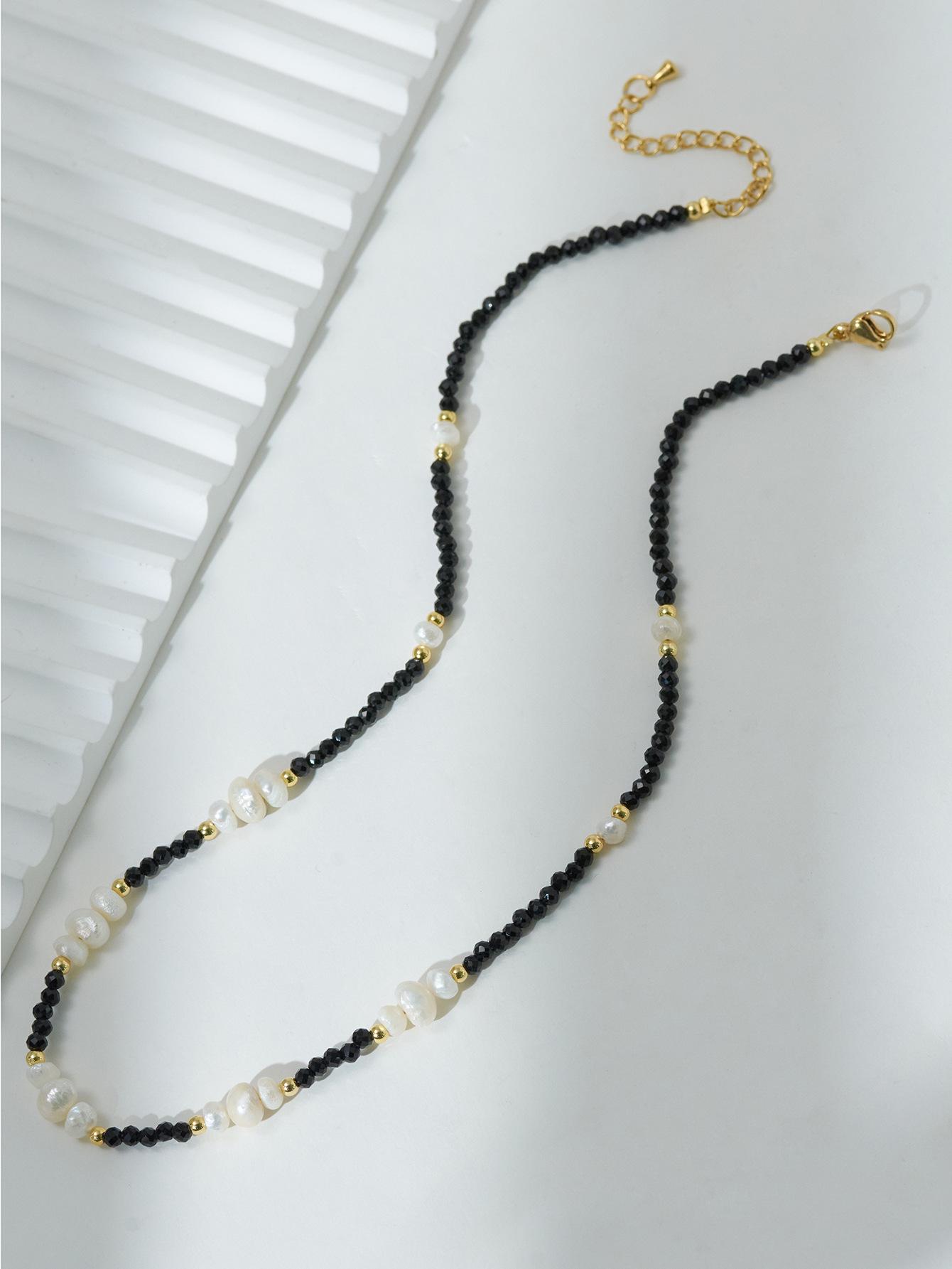 Collar de perlas de agua dulce irregulares de cristal negro geométrico de lujo ligero, collar Joker simple y avanzado, nuevo estilo 2024
