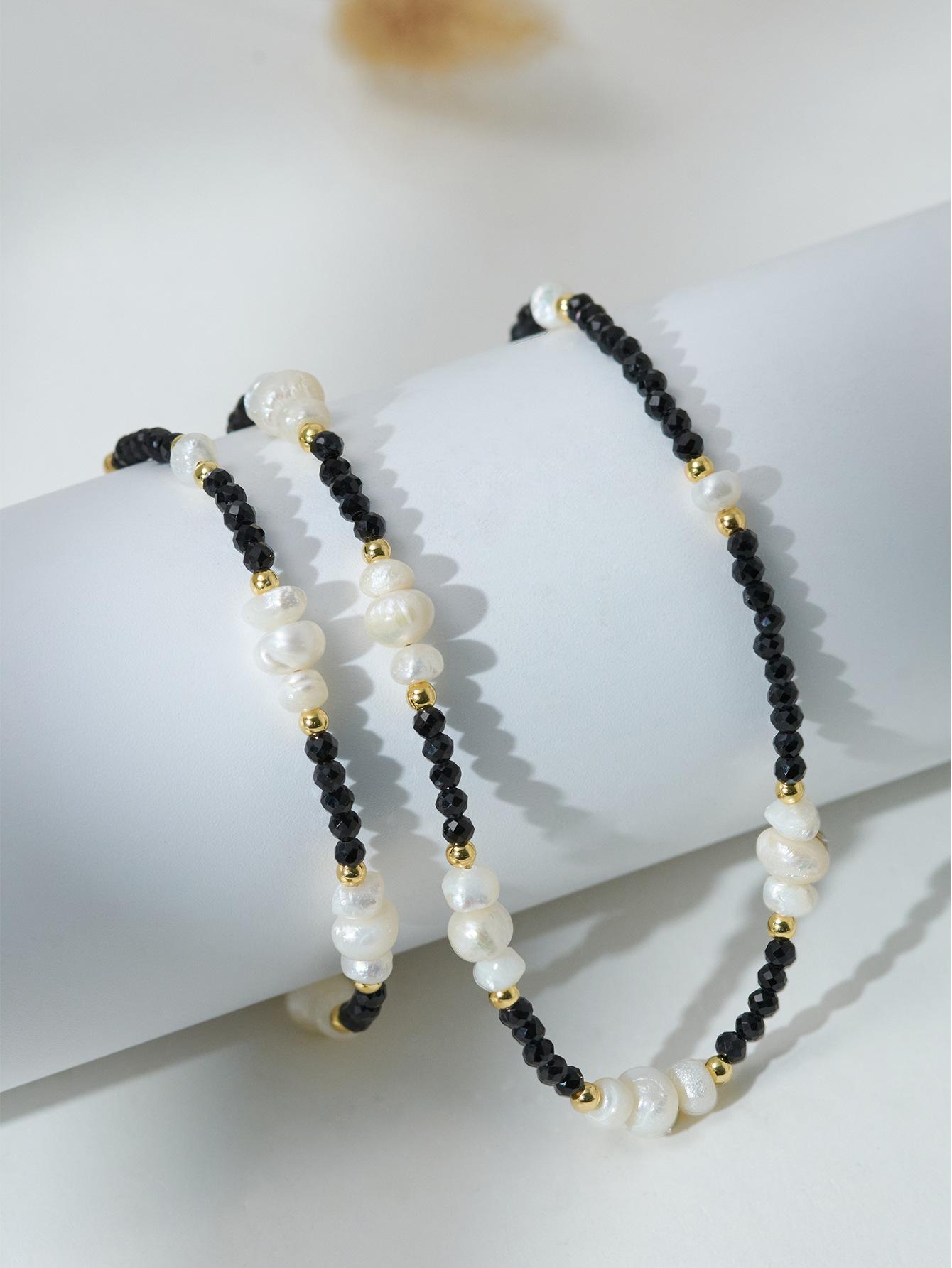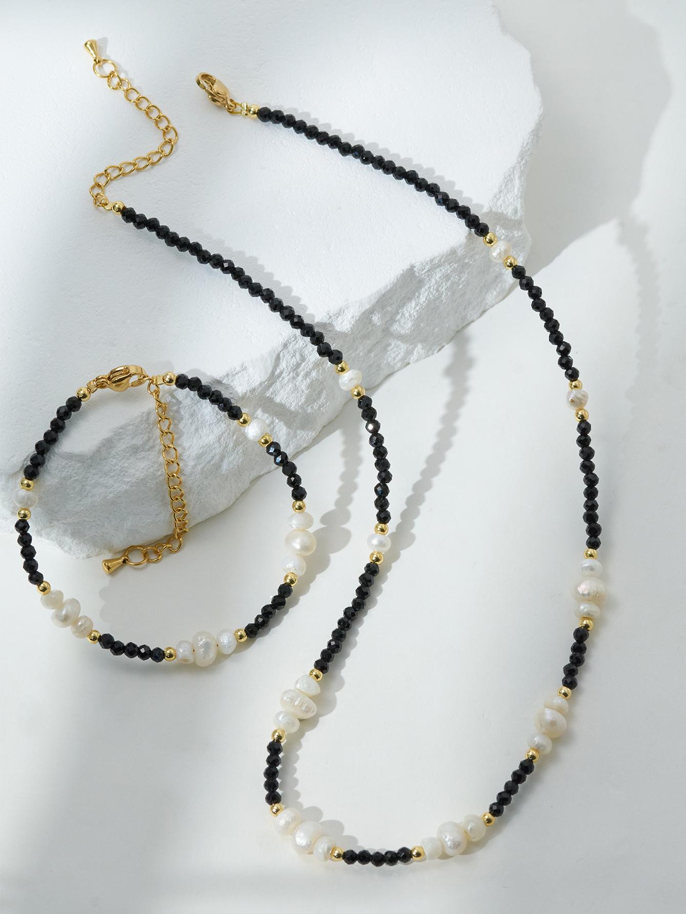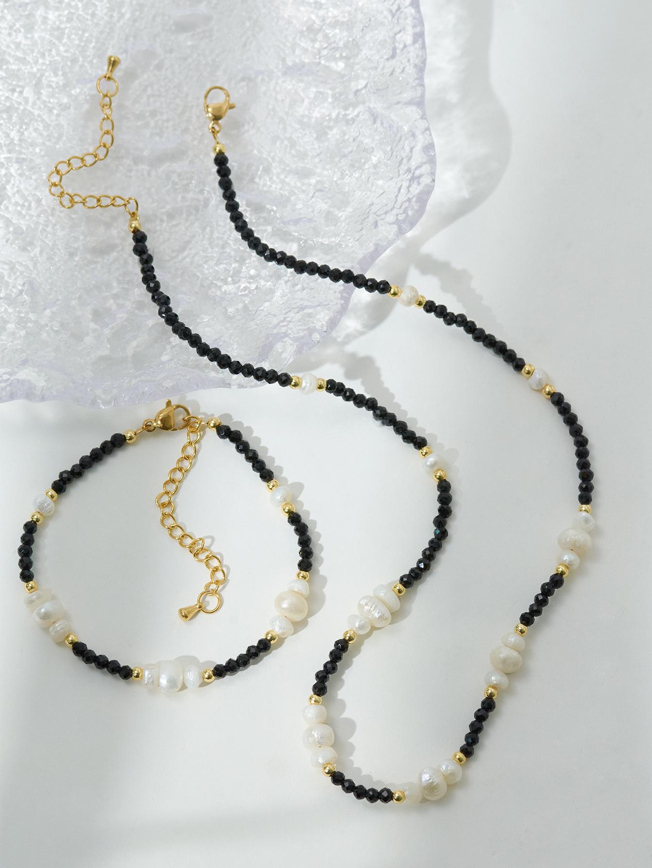 Collar de perlas de agua dulce irregulares de cristal negro geométrico de lujo ligero, collar Joker simple y avanzado, nuevo estilo 2024