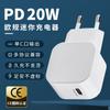 Cargador estándar europeo PD20W con certificación CE europea, cabezal de carga para teléfono móvil, adaptador de cabezal de carga rápida TIPO C de alta calidad.