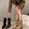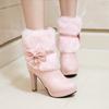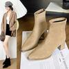 Zapatos gruesos de invierno adhesivos punto alto diario punta redonda sólido tacón alto botas femeninas