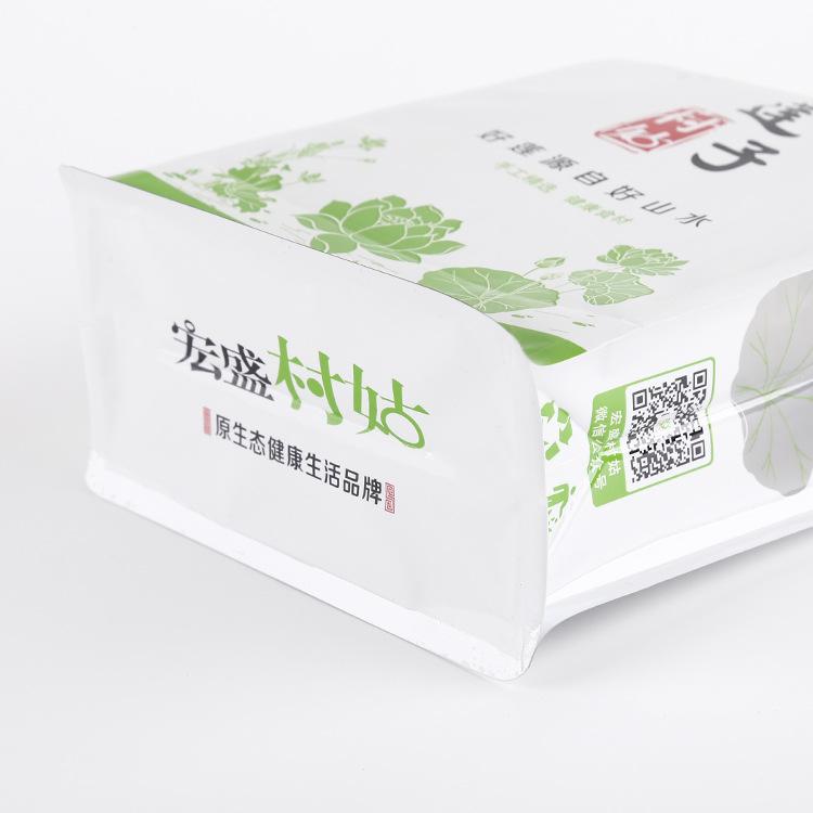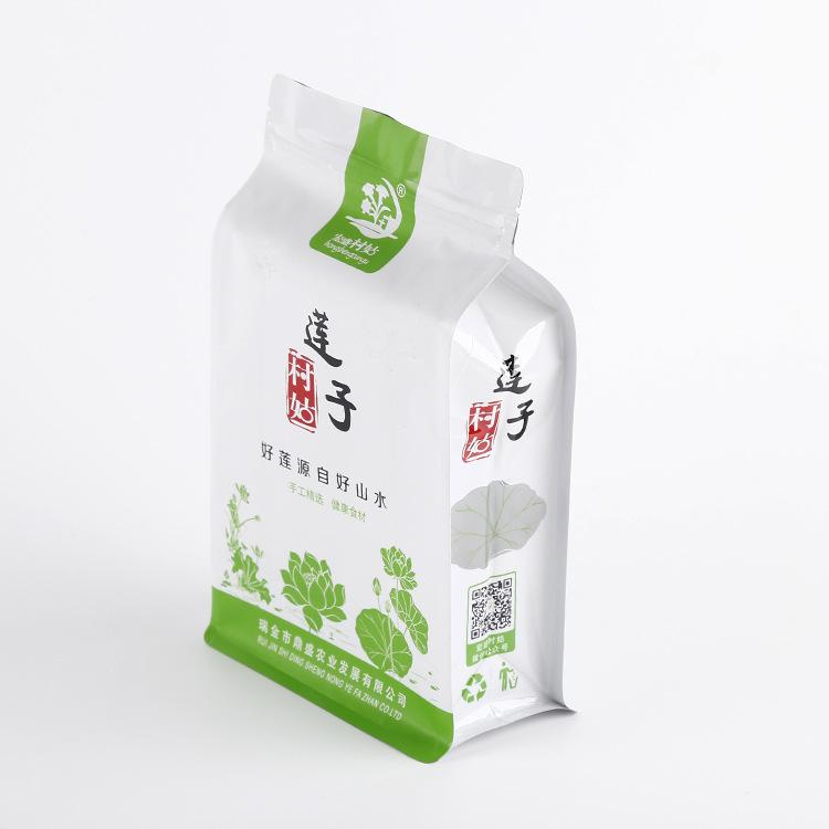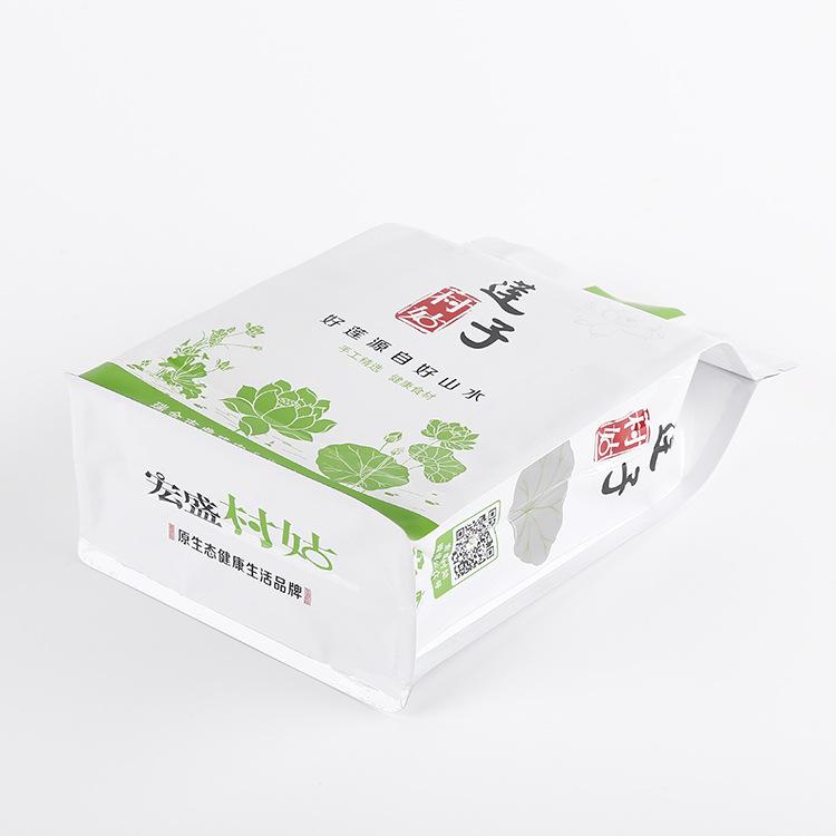 Las bolsas selladas de ocho lados, como su nombre indica, tienen ocho bordes sellados: cuatro en la base y dos a cada lado. Este tipo de bolsa es una novedad que ha surgido en los últimos dos años. Actualmente, muchas marcas reconocidas de comercio electrónico la utilizan. La bolsa sellada de ocho lados tiene un buen efecto tridimensional y un aspecto más sofisticado y acogedor, lo que la hace muy popular entre los consumidores. Con el continuo desarrollo de los tiempos, los conceptos de consumo de las personas cambian constantemente, al igual que la búsqueda de una mejor calidad de vida. Tomemos como ejemplo la alimentación. La calidad de las bolsas de envasado de alimentos está directamente relacionada con nuestro deseo de compra. Ámbito de aplicación: Este producto es adecuado para envasar diversas especialidades: dátiles rojos, polvos, frutos secos, té, cereales, productos químicos, snacks, productos de salud, cápsulas de belleza, artículos de decoración, ropa interior, alimento para mascotas, componentes electrónicos, etc. Cuenta con un borde rasgable y una tira autosellante, y se puede volver a sellar. Ofrece un buen sellado, excelente calidad y una apariencia exquisita, lo que lo convierte en una opción ideal para comerciantes. Este producto es un producto personalizado, el precio es solo de referencia, ¡contáctenos para obtener un precio específico! |