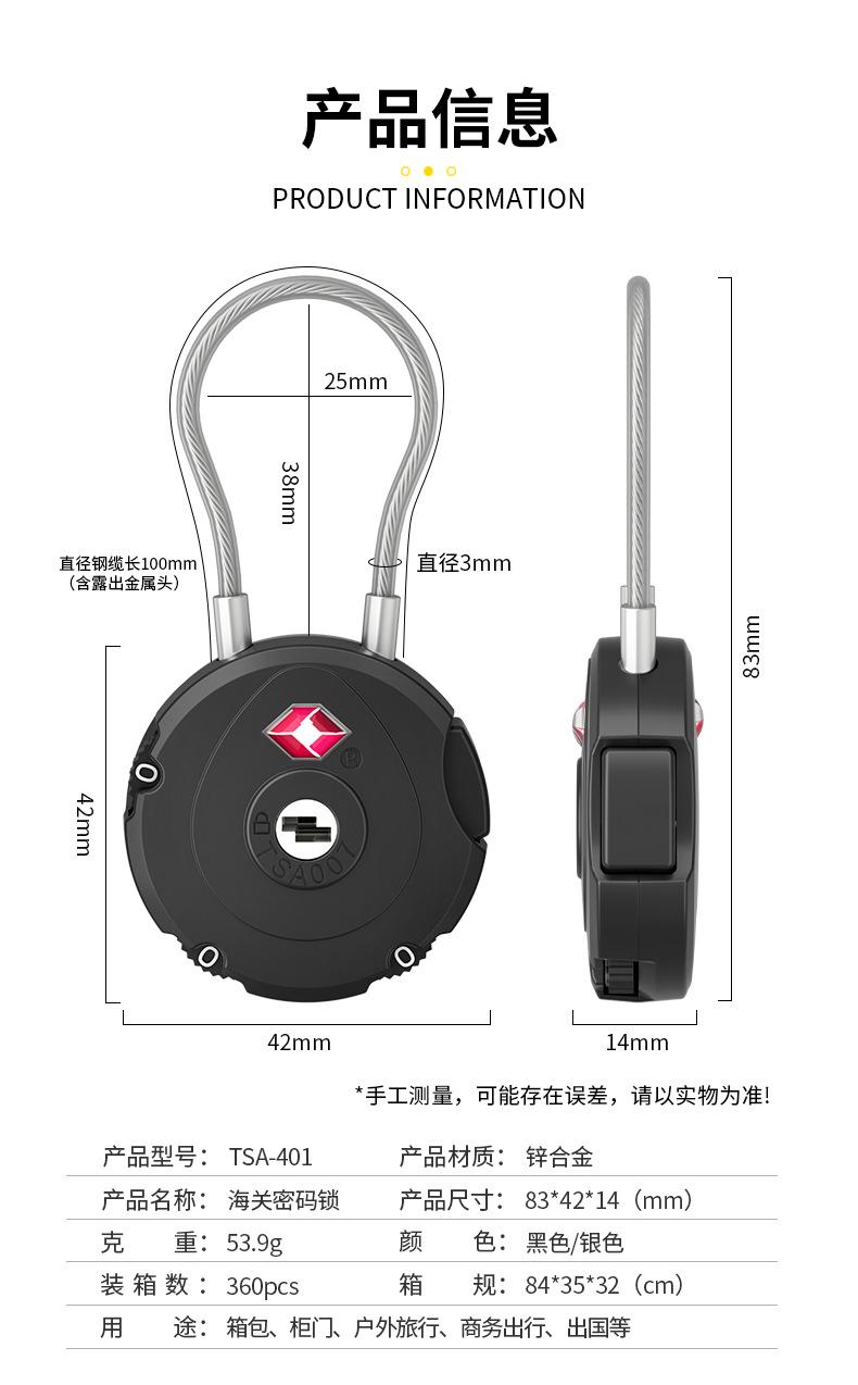 Tsa-401 Nuevo Candado Tsa Americano Candado de Llave para Equipaje Trolley Aduanas Tsa Cremallera Contraseña