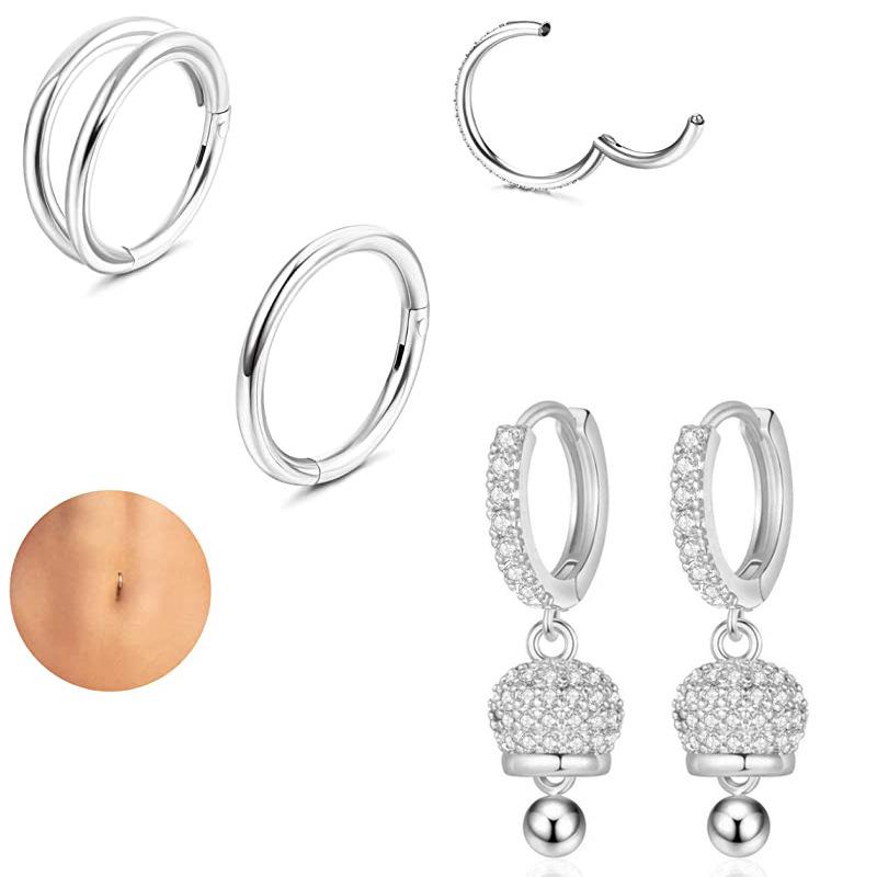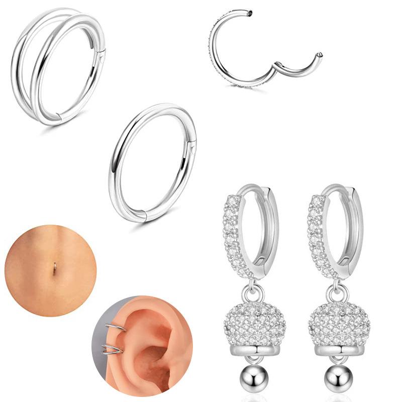 Aretes de Perforación, Hebillas para la Oreja, Anillo Inconsútil con Incrustaciones de Diamantes, Juego de Colgantes, Hebillas para la Oreja, Anillos para la Nariz de Acero Inoxidable Multiusos Europeos y Americanos
