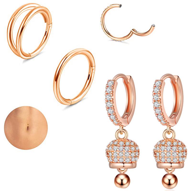 Steel color suit, Rose gold suit, Double ring steel color, Double Circle gold, Pair of ear buckle pendants in ...