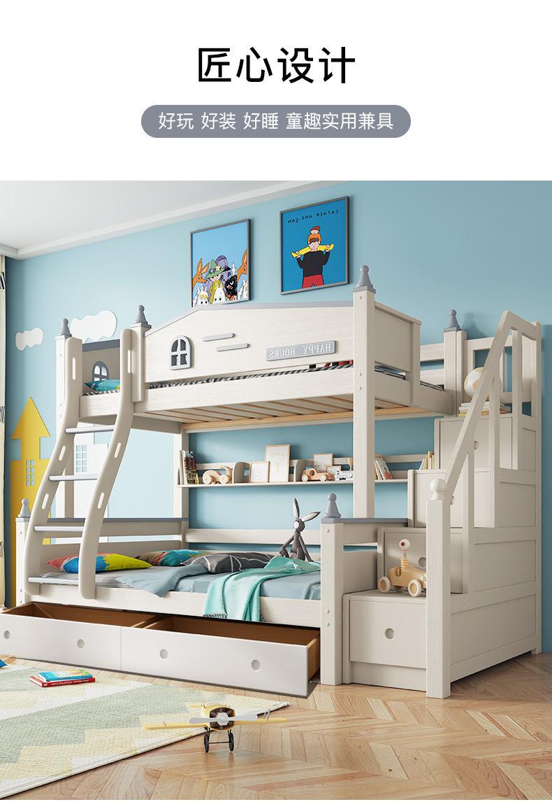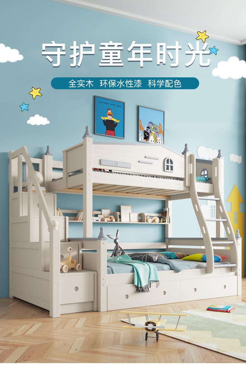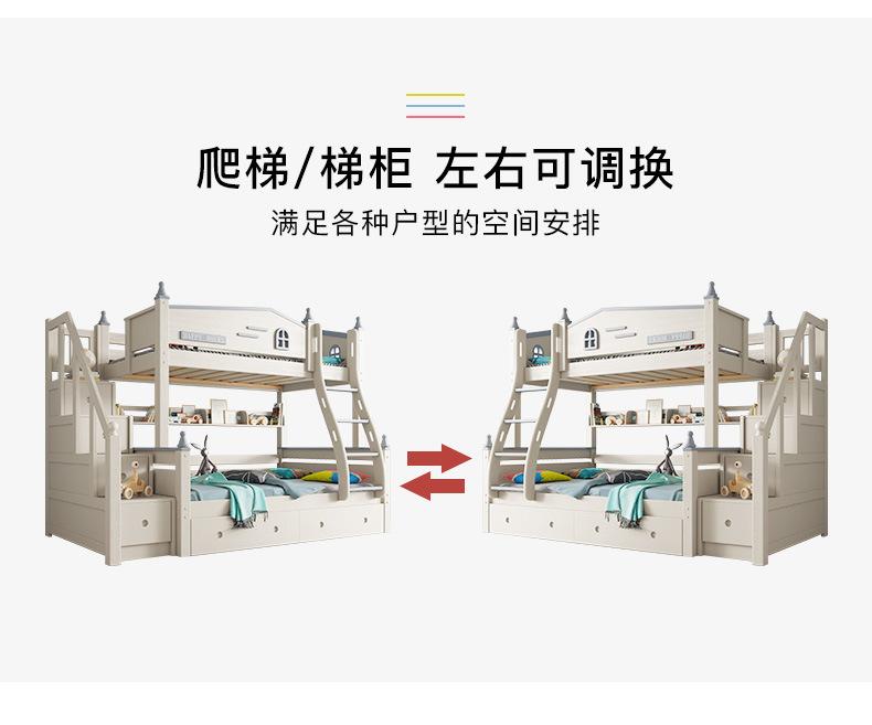 Litera superior e inferior, cama infantil de madera de caucho, cama superior e inferior, cama combinada multifuncional, apartamento pequeño, cama alta y baja, cama para madre e hijo