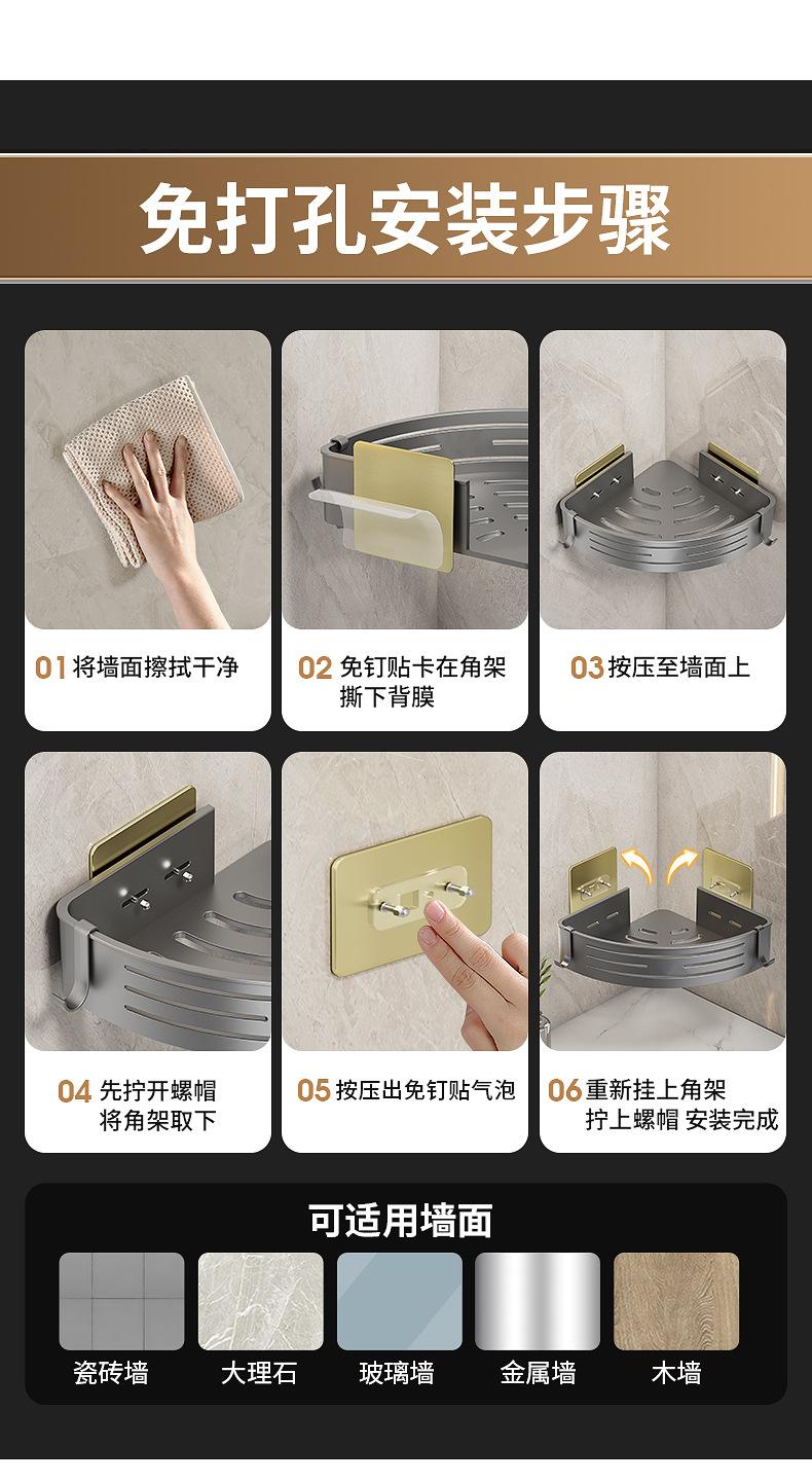 Compra Trípode de baño sin perforaciones, mueble de baño, estante de almacenamiento de pared, inodoro, cocina, estante de esquina al por mayor en Joom.pro