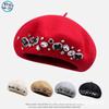 Boina decorativa de flores lana boina cálida para mujer temperamento elegante multicolor opcional sombrero