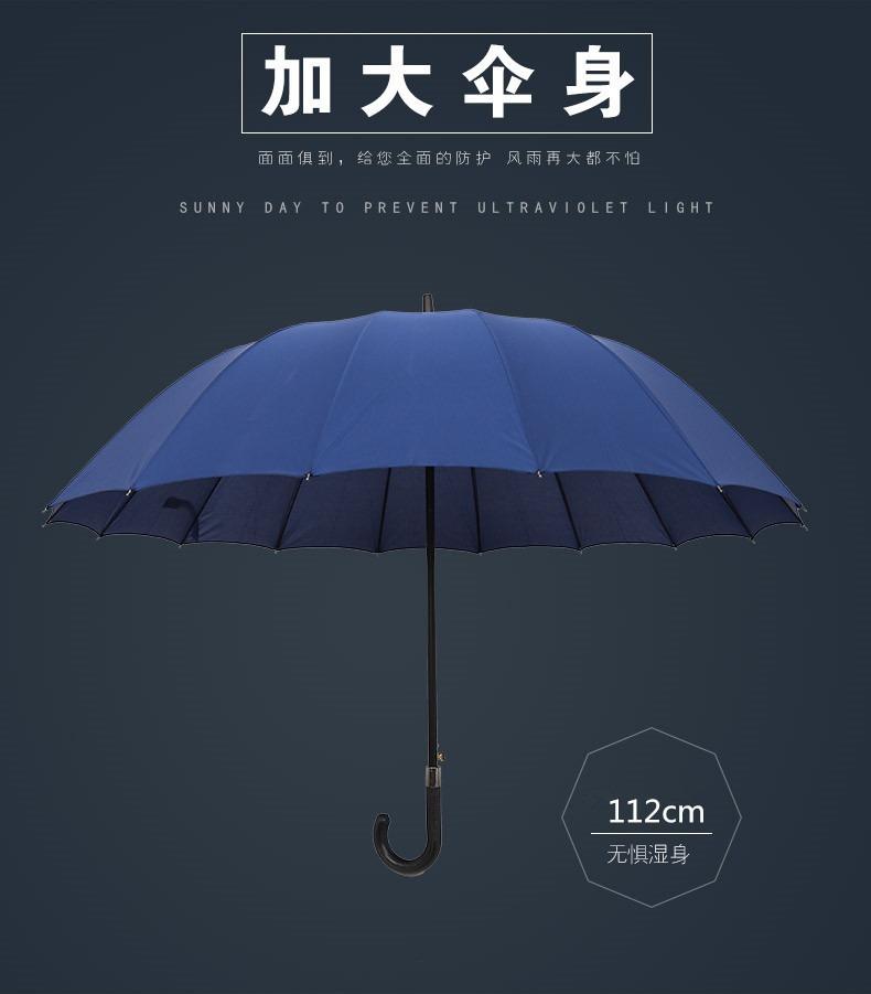 Paraguas automático extragrande de 16 varillas para hombre, de negocios, anti-tormentas, con mango curvo, paraguas publicitario, venta al por mayor, logotipo personalizado