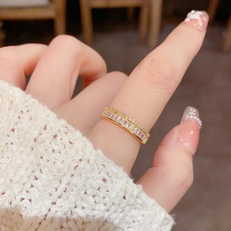 Gold-zircon opening ring (thick gold plating), silver-Zircon opening ring (thick gold plating)