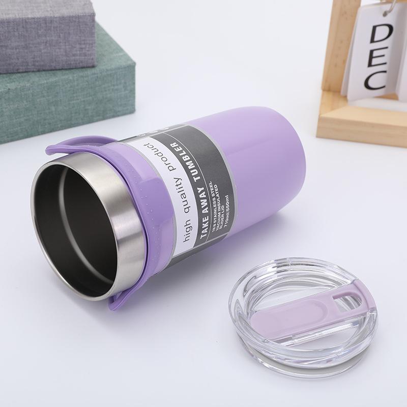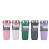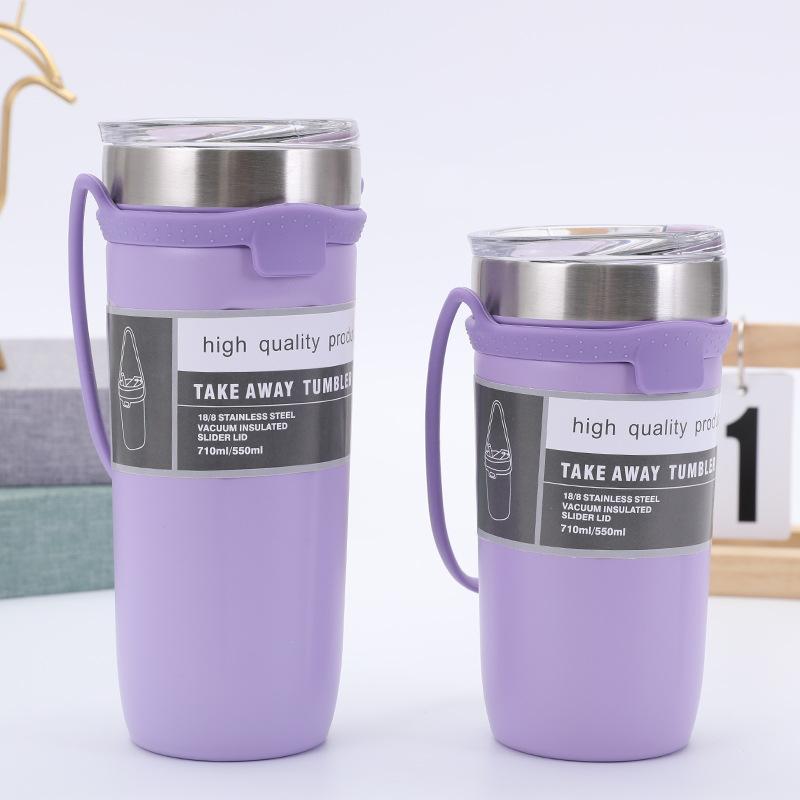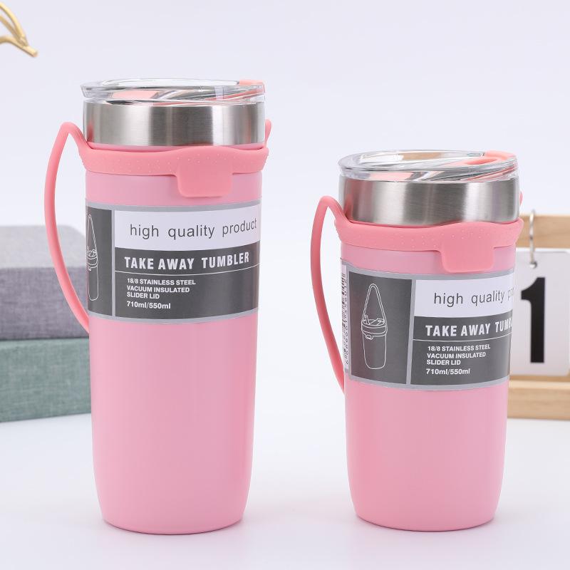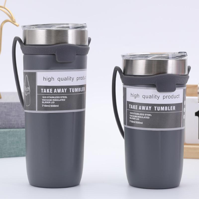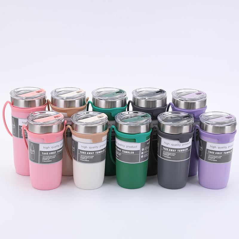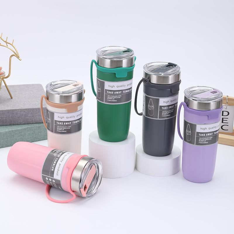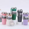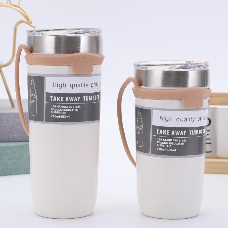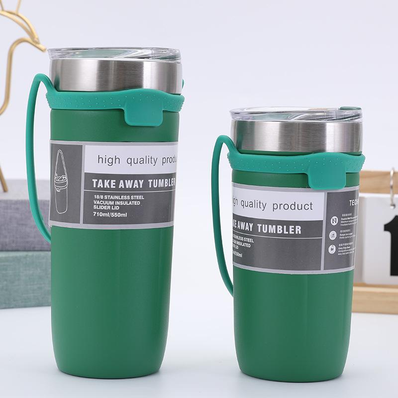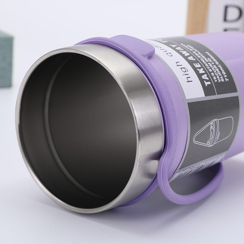 Taza de vacío de acero inoxidable 304 transfronteriza, simple, de gran capacidad, con mango de silicona, taza recta, taza de vacío de doble capa para automóvil