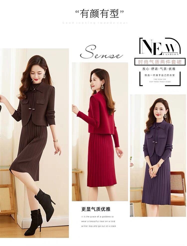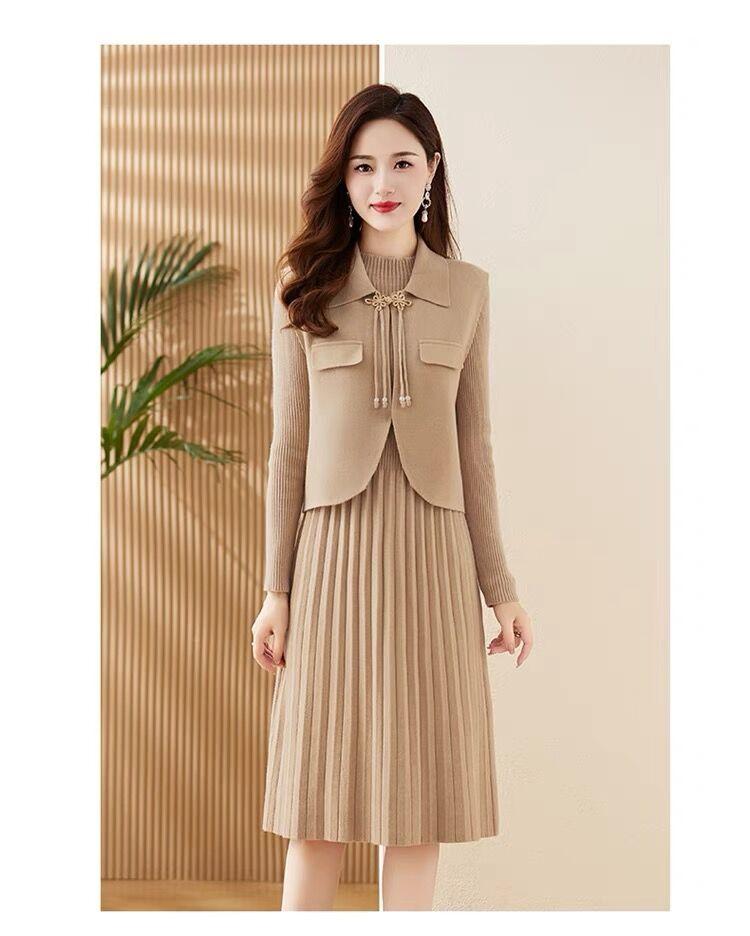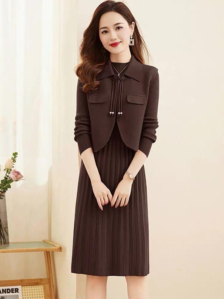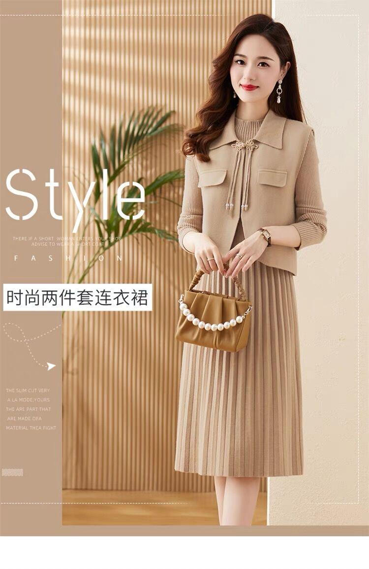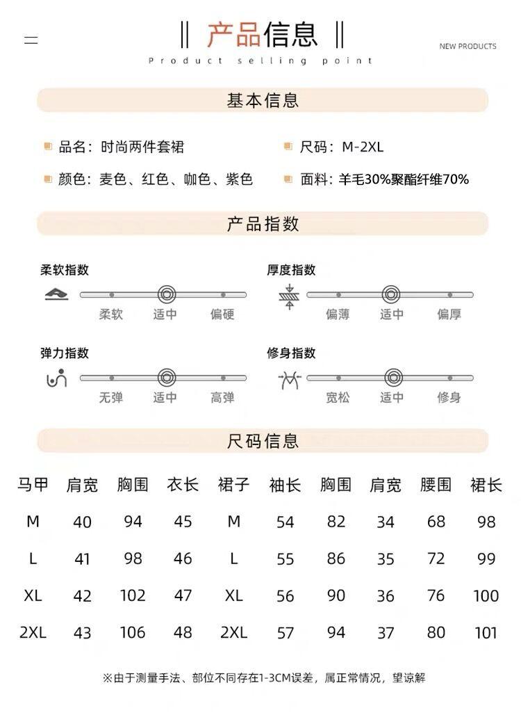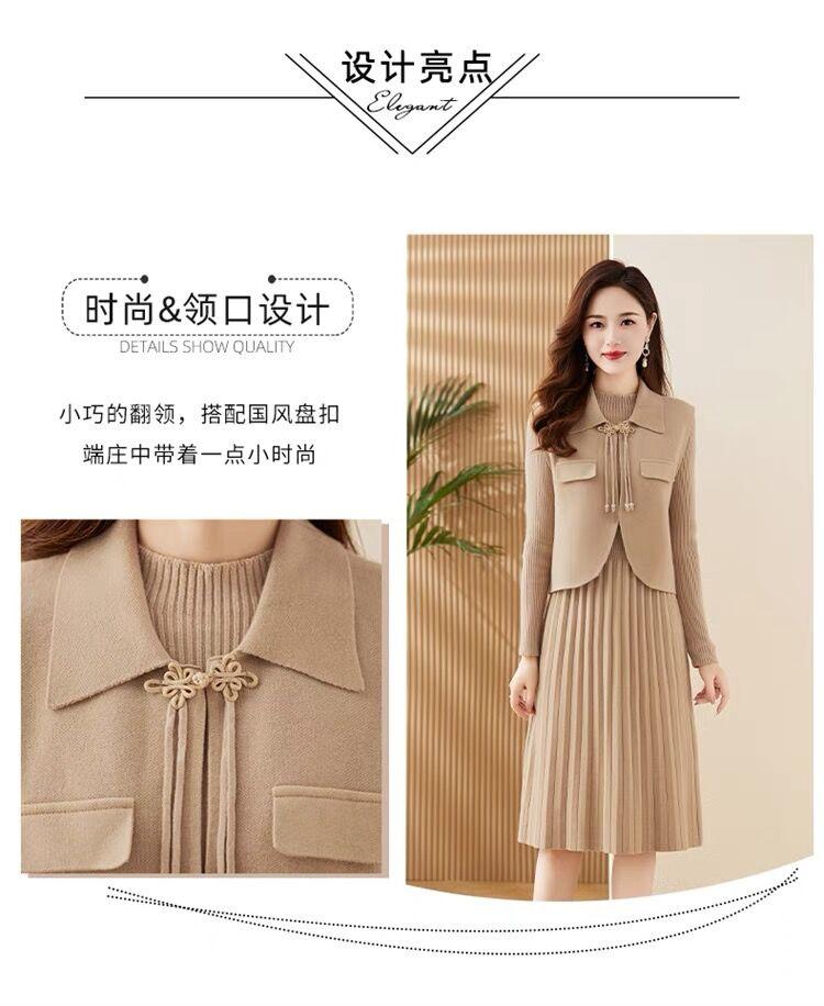 Vestido de Punto de Lana de Alta Gama para Mujer, Conjunto de Dos Piezas Chaleco Delgado, Otoño Nuevo Traje de Moda de Alta Gama Falda