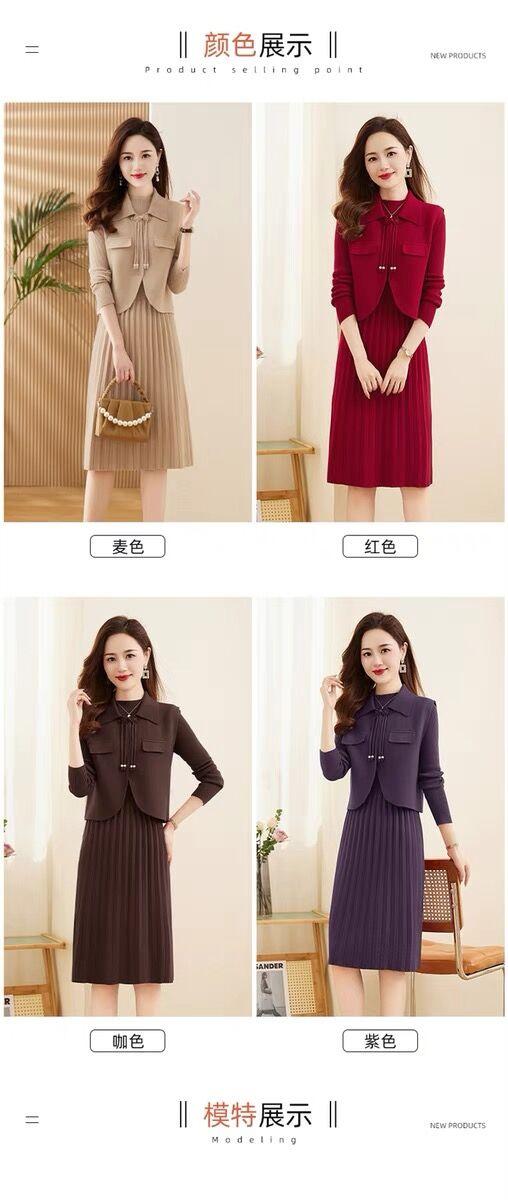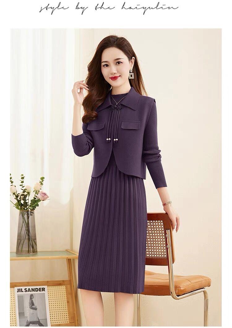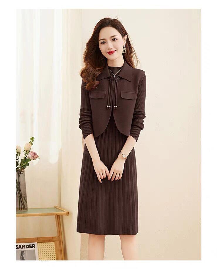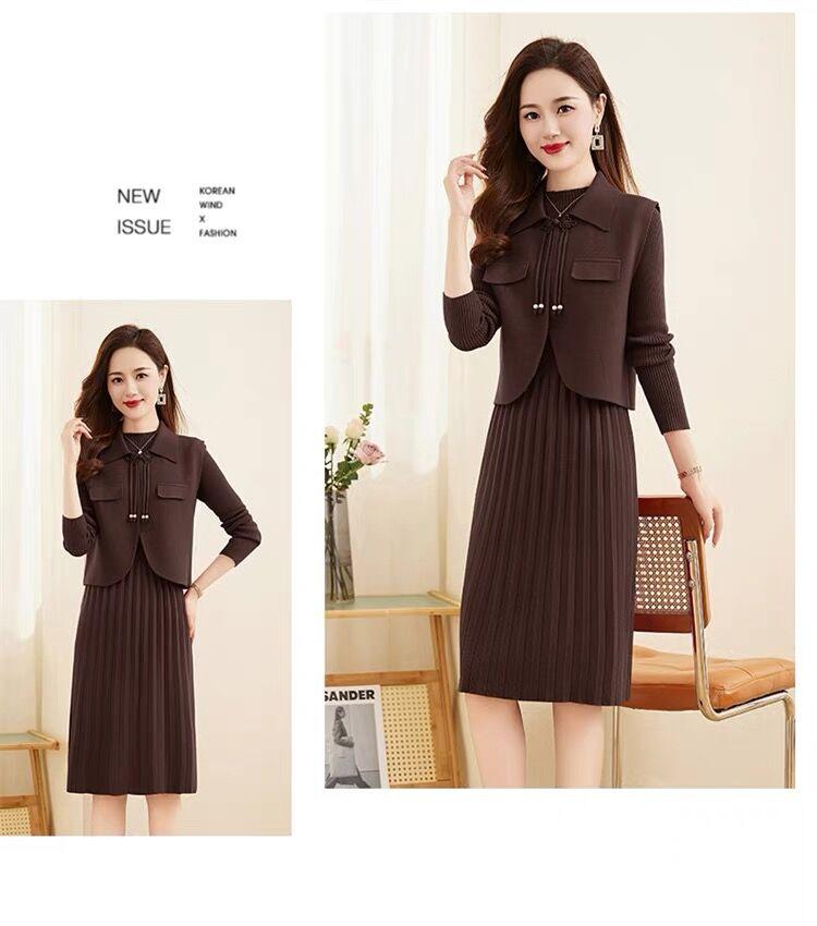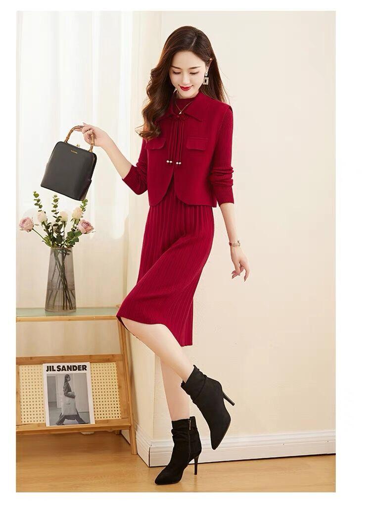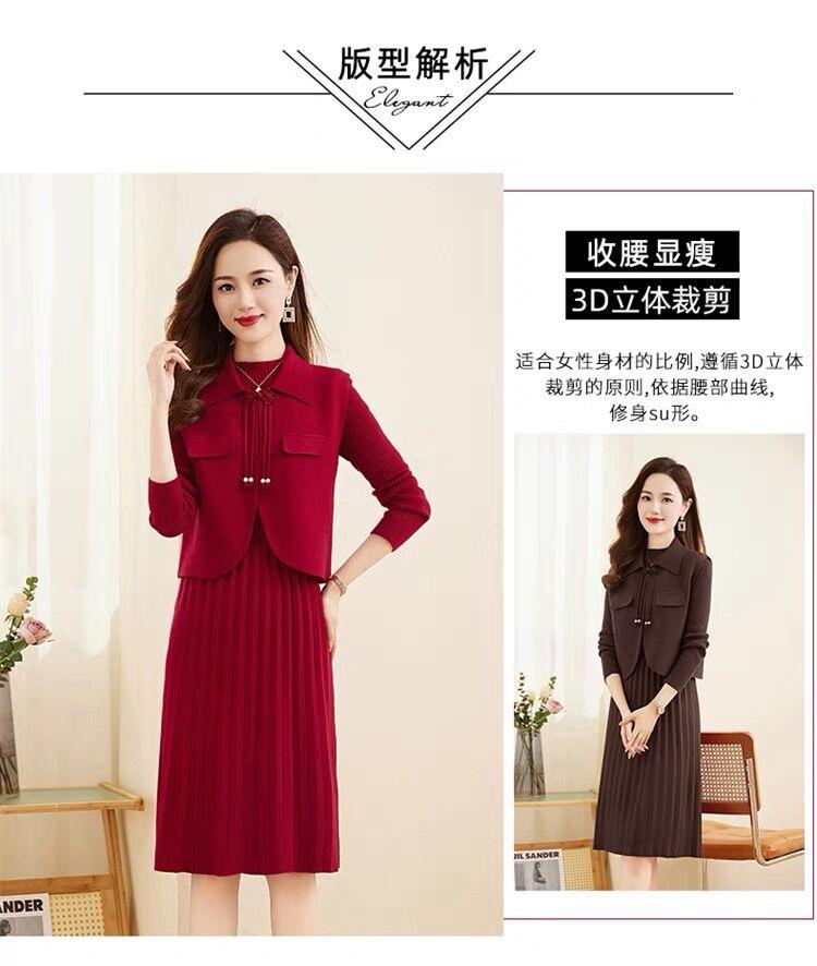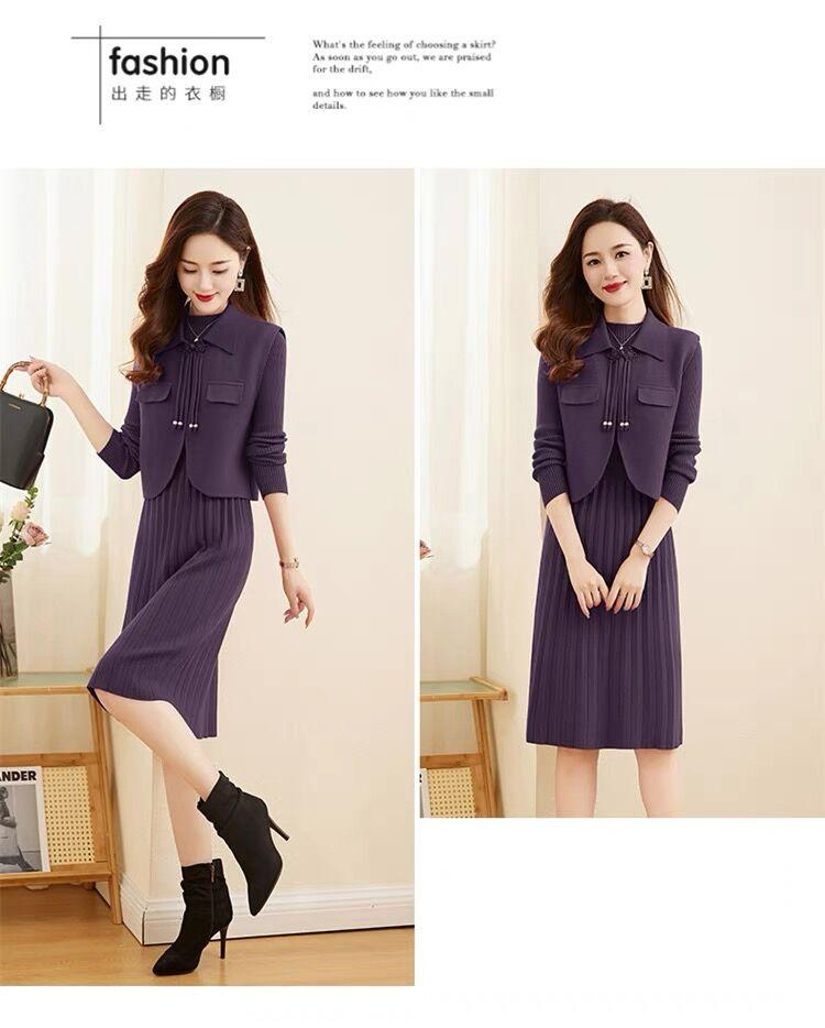 Vestido de Punto de Lana de Alta Gama para Mujer, Conjunto de Dos Piezas Chaleco Delgado, Otoño Nuevo Traje de Moda de Alta Gama Falda
