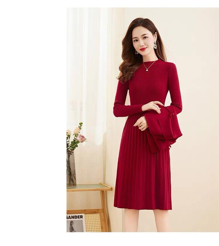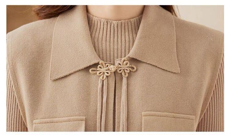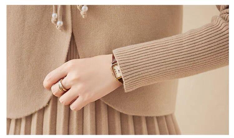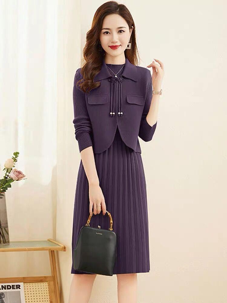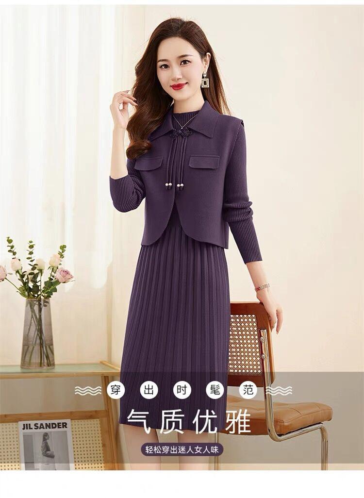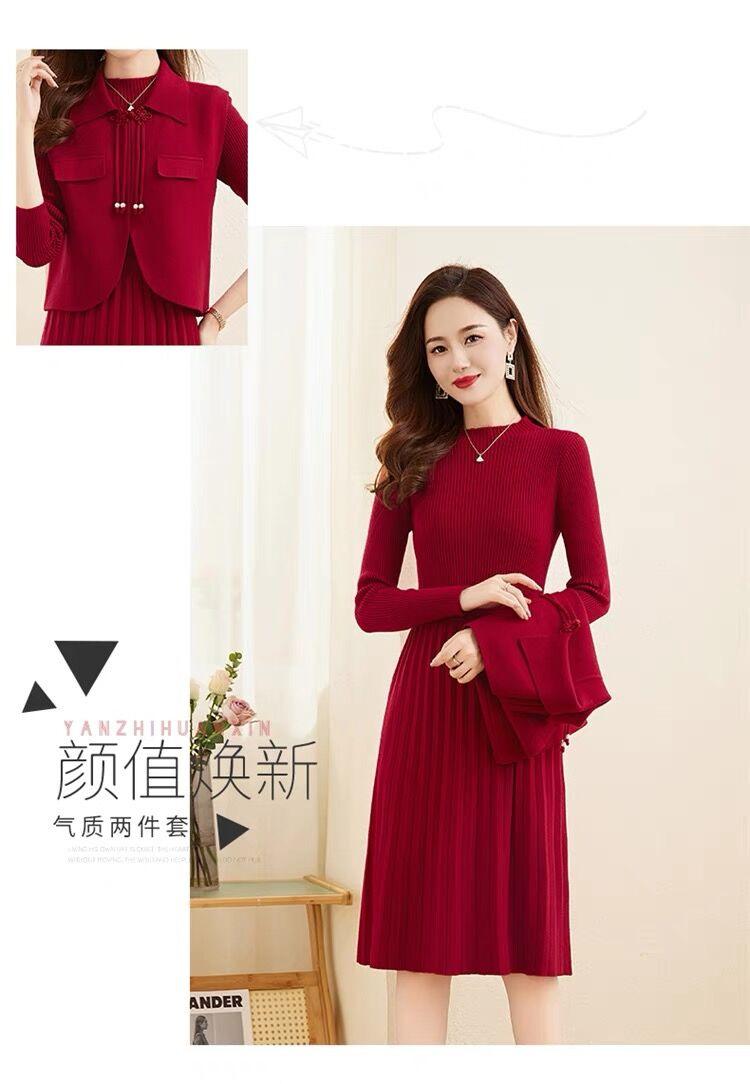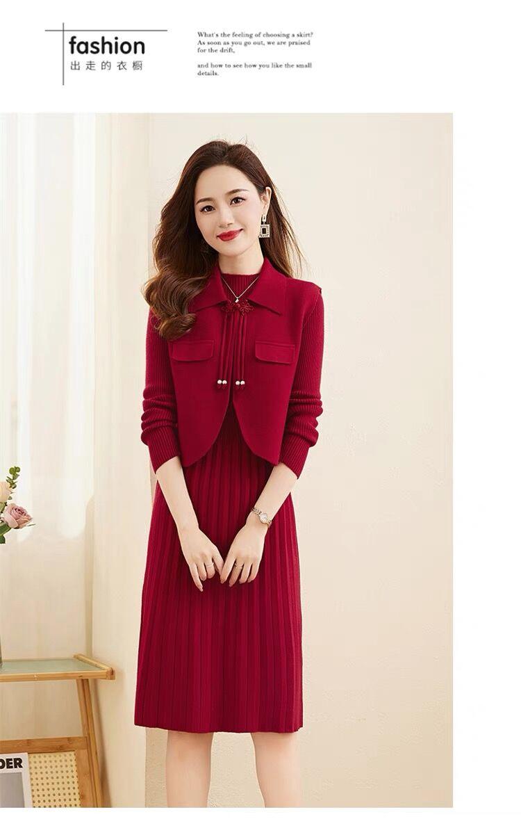 Vestido de Punto de Lana de Alta Gama para Mujer, Conjunto de Dos Piezas Chaleco Delgado, Otoño Nuevo Traje de Moda de Alta Gama Falda