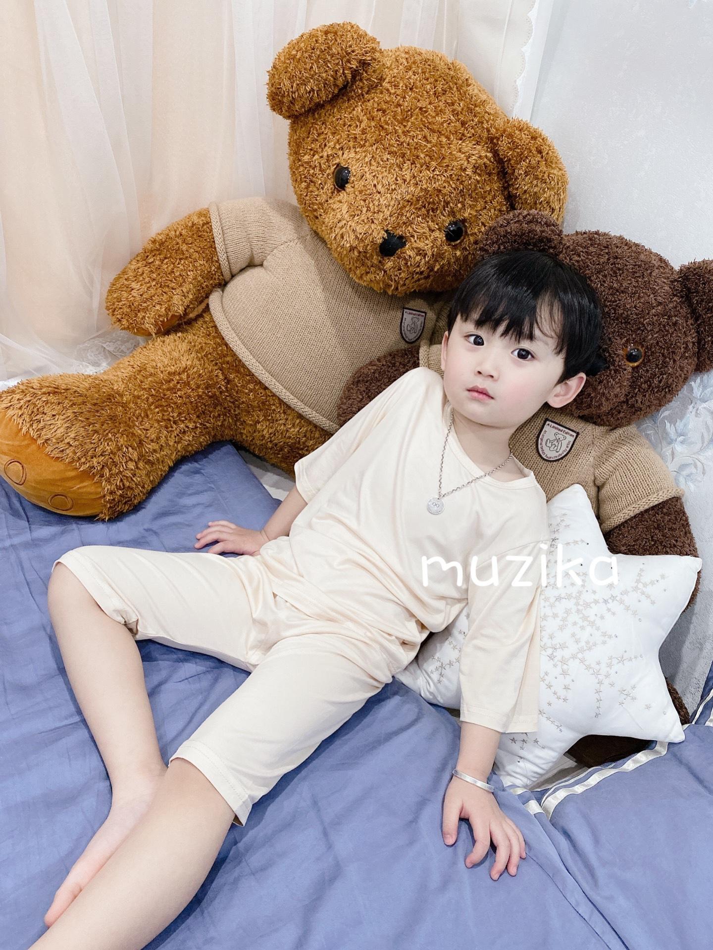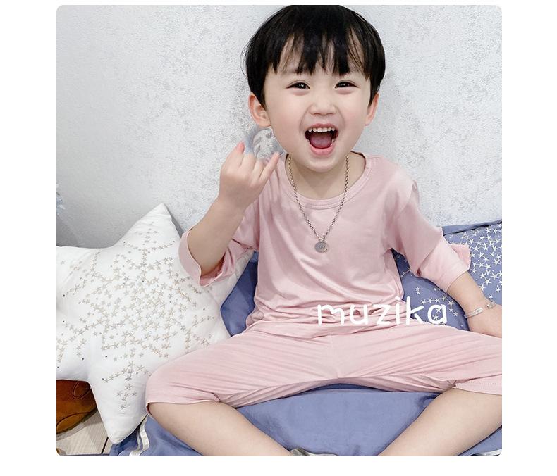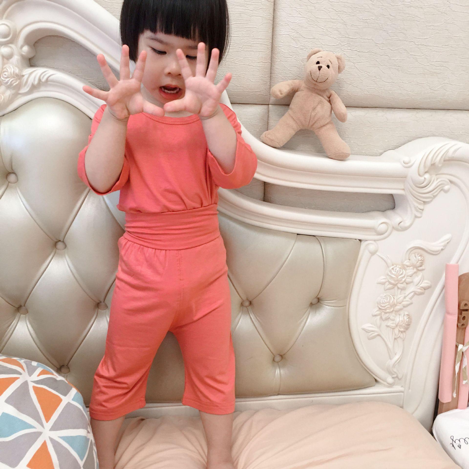 Ropa de aire acondicionado de verano 2024 para niños, manga 7/8, modal, protección para el vientre, ropa para el hogar, conjunto de pijama para bebé para hombre y mujer, personalizado