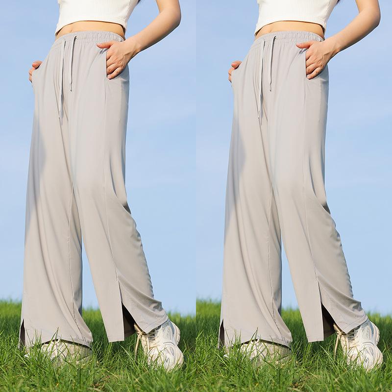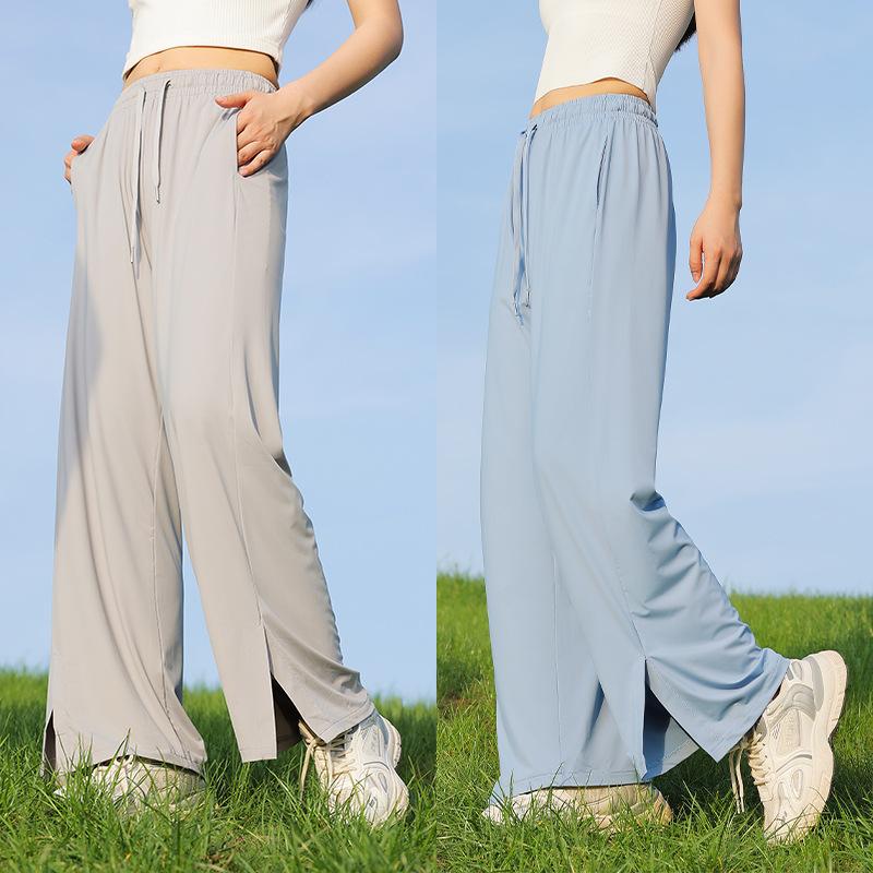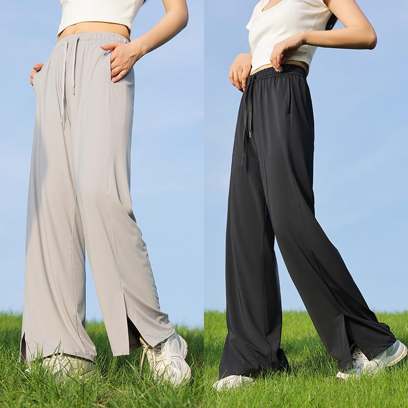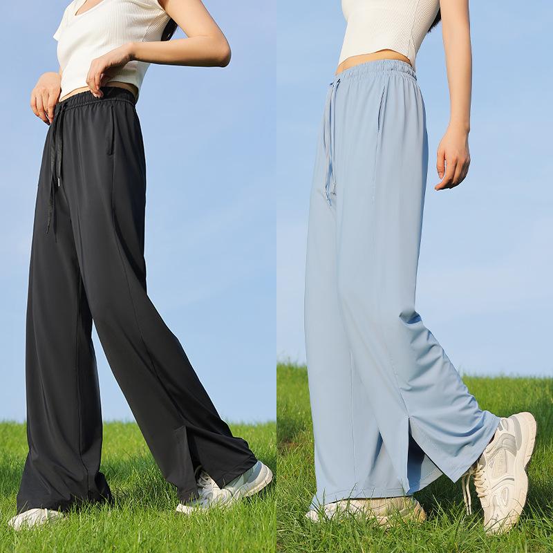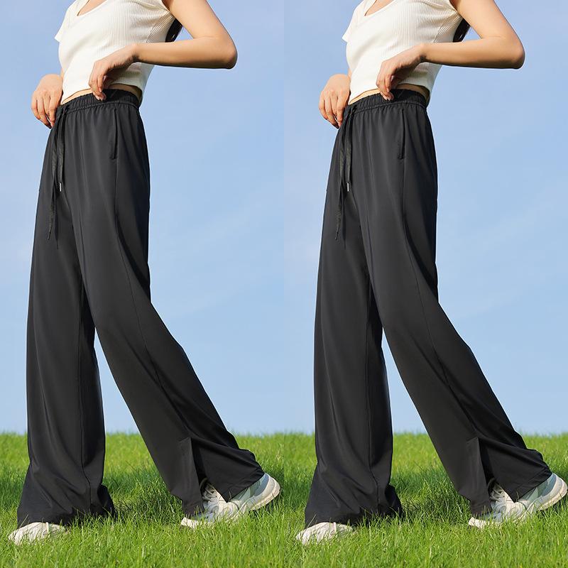 Pantalones de verano para mujer, finos, informales, de cintura alta, pierna ancha, deportivos, de secado rápido, rectos