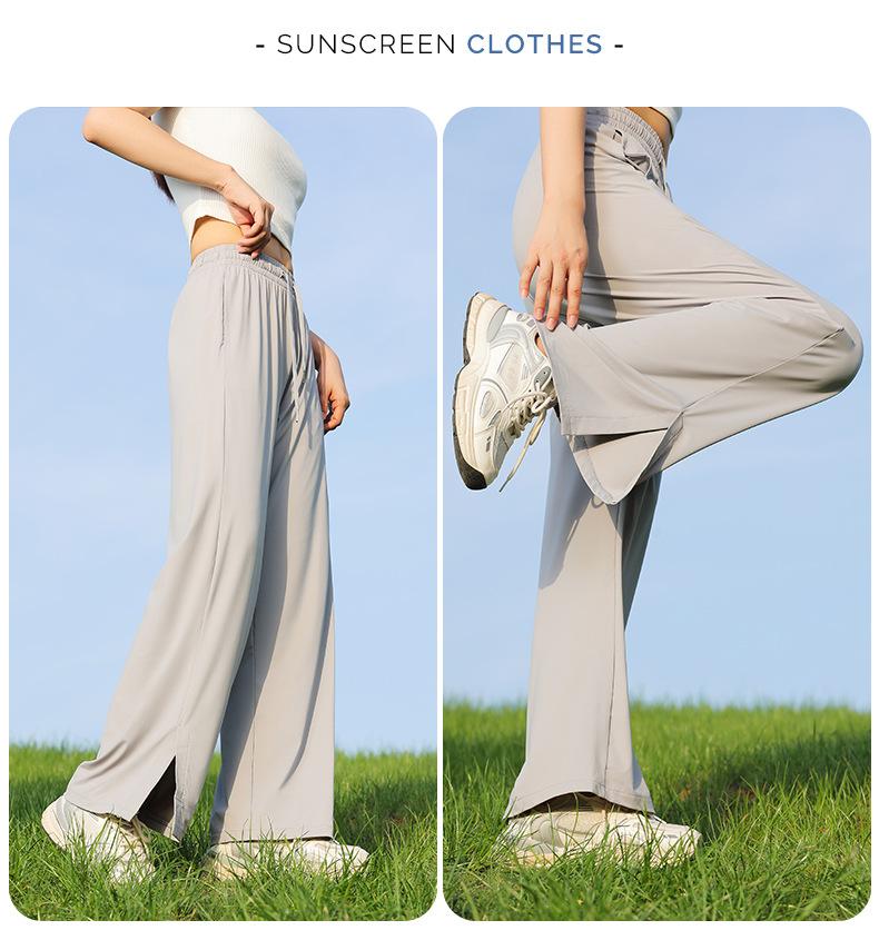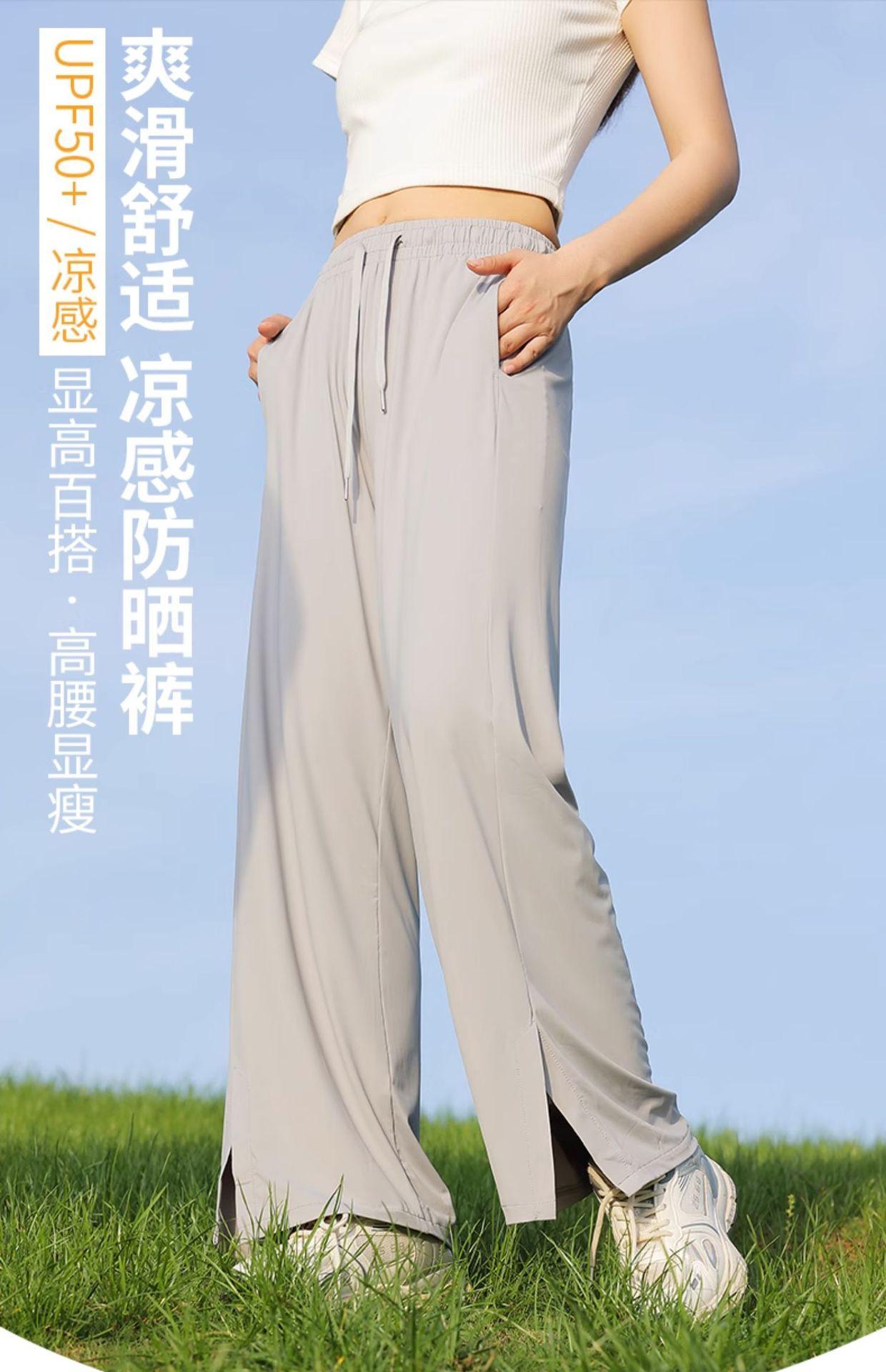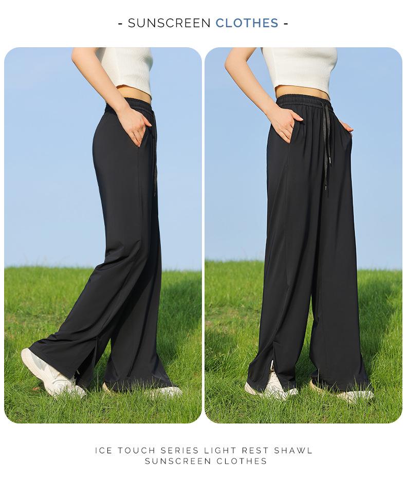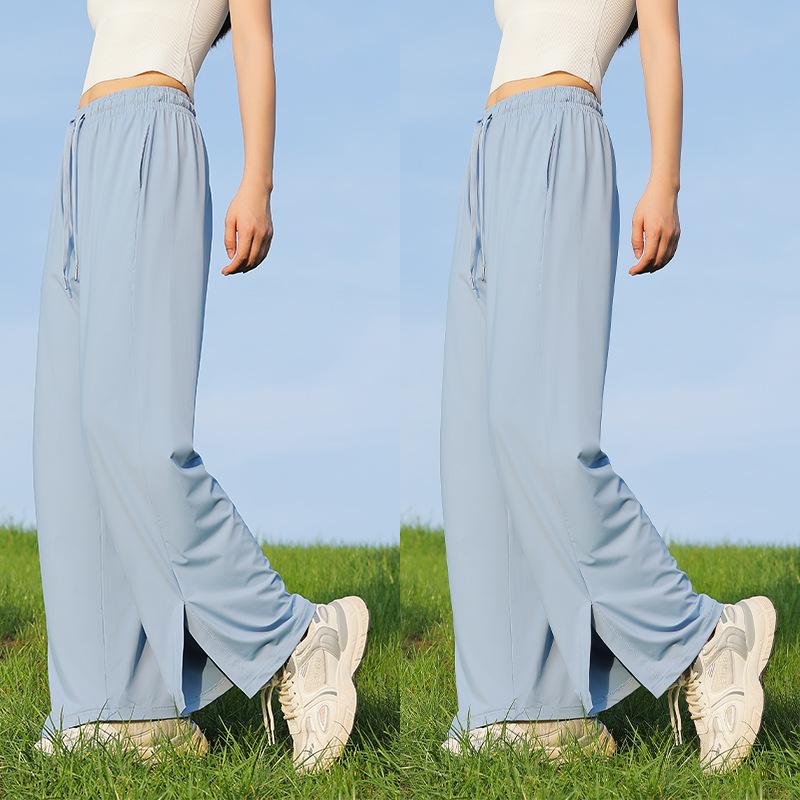 Pantalones de verano para mujer, finos, informales, de cintura alta, pierna ancha, deportivos, de secado rápido, rectos