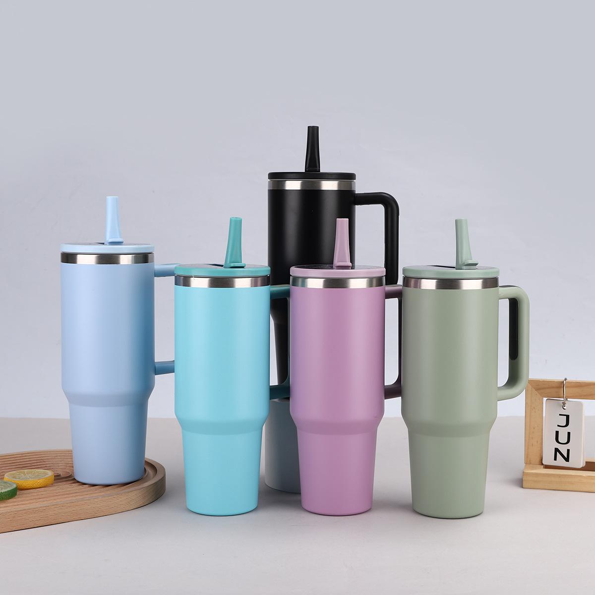 Taza para coche Amazon de cuarta generación de 40 oz, taza termo de doble vacío con asa, gran capacidad, portátil, con pajita, para hielo